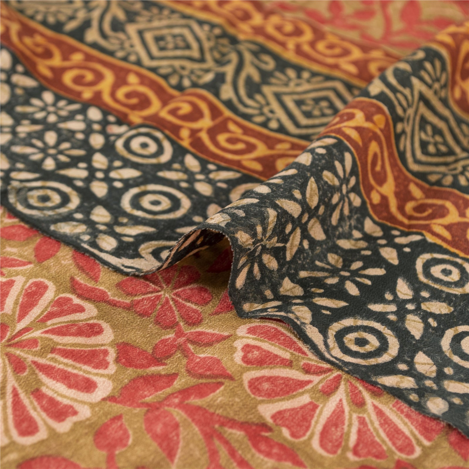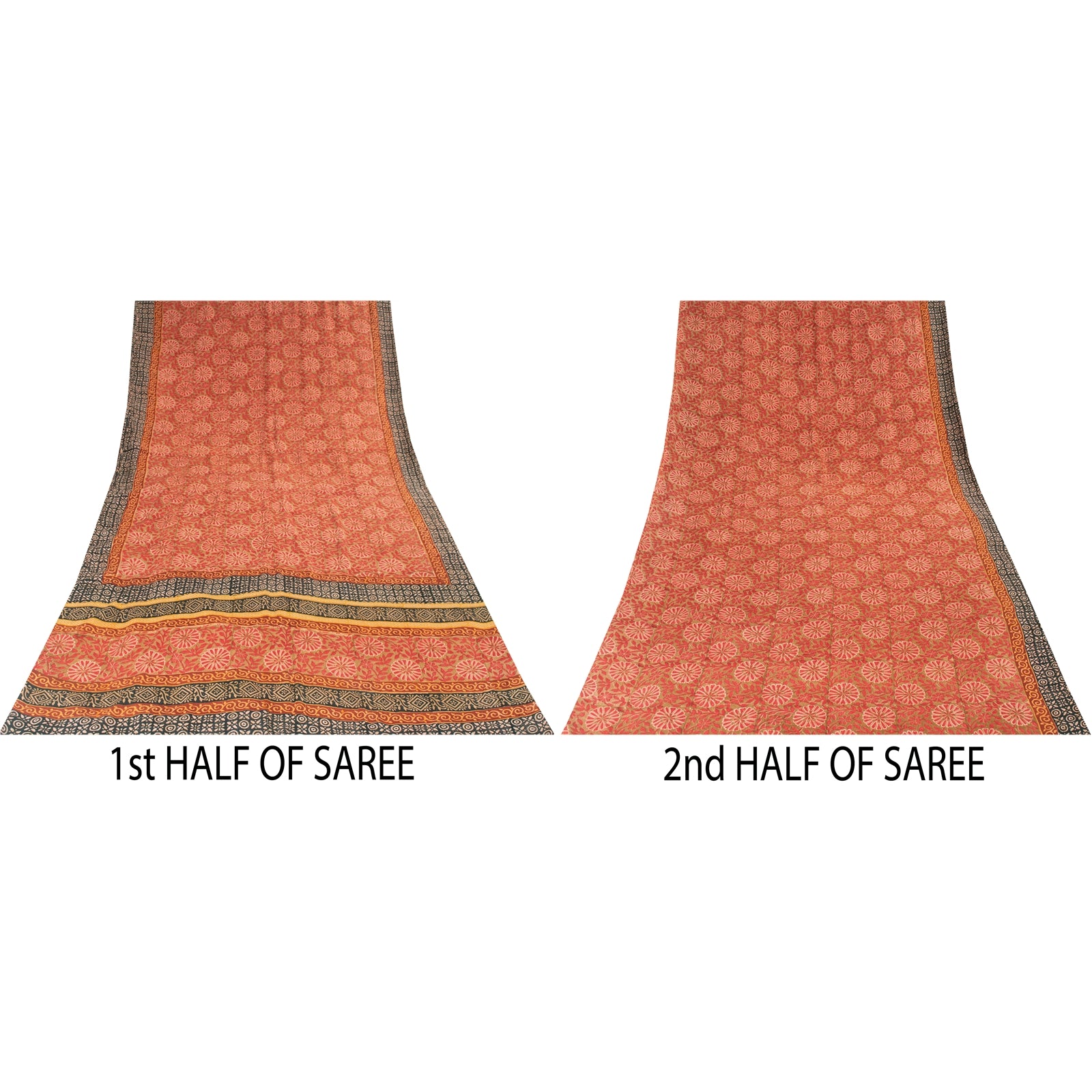Sanskriti Vintage Sarees Green & Red Pure Crepe Printed Sari 5+yd Craft Fabric