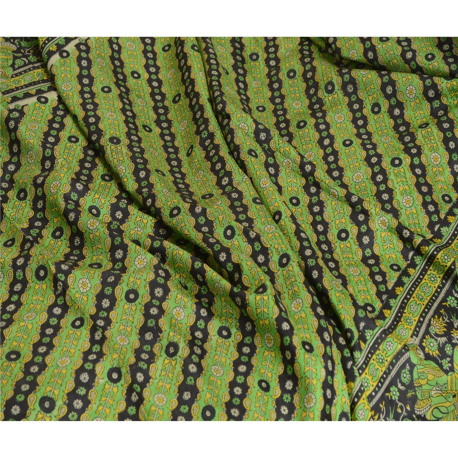 Sanskriti Vintage Sarees Green Women Animal Printed Pure Silk Sari Craft Sustainable Fabric