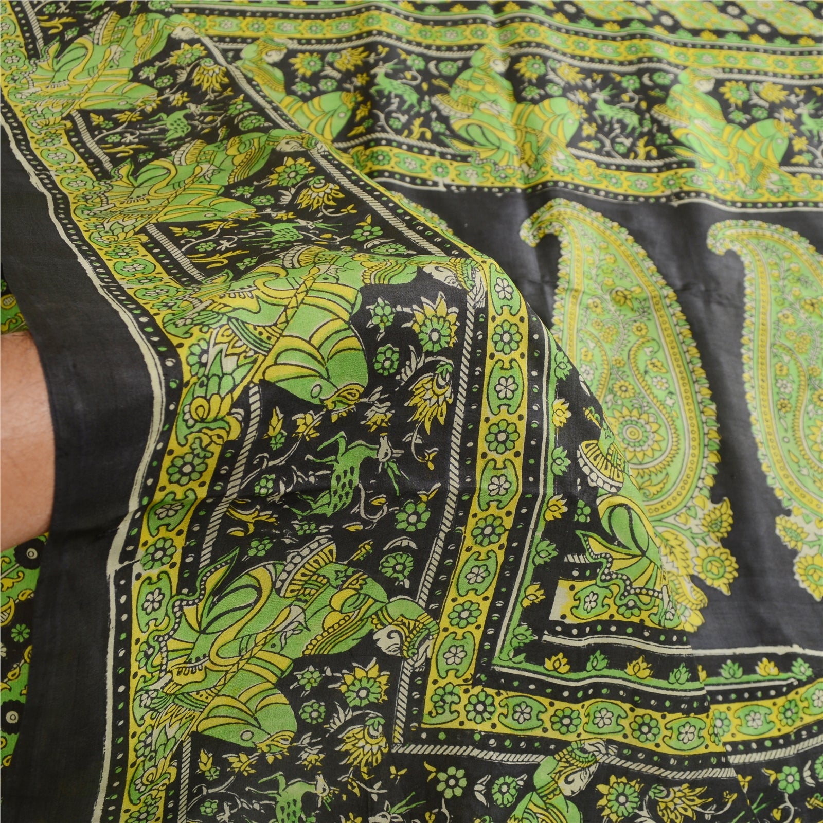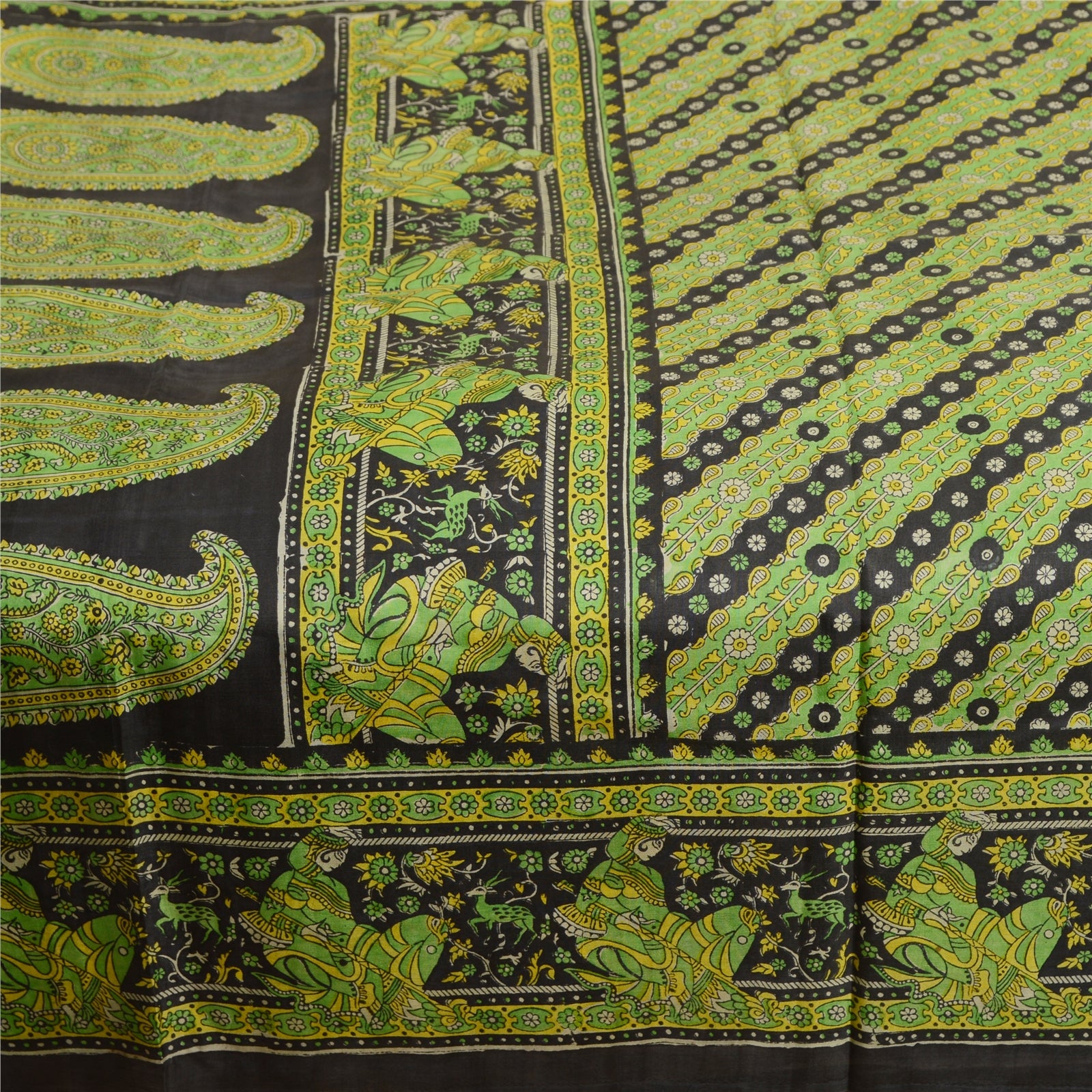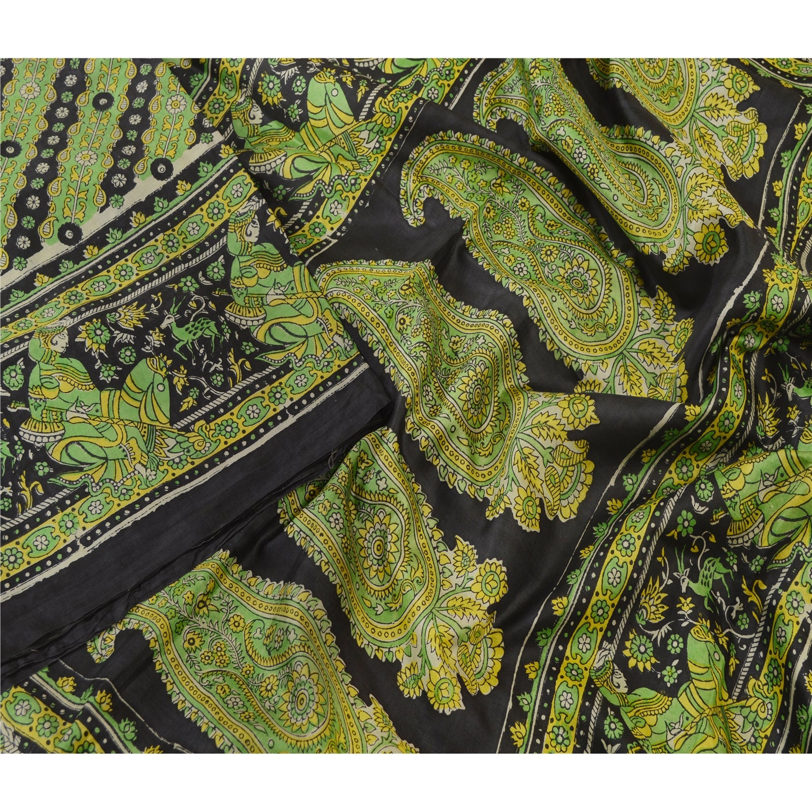 THE ITEM COLOR OR SHADE MAY BE DARKER OR LIGHTER THAN THE PICTURE.' Beautiful green & black colored pure silk printed saree. Pallu & Border has printed floral, paisley, deer, women with music instrument design. Floral design in center part of saree. What is special about this saree? Fabulous design is really enhancing the beauty of the saree.This unique vintage saree can be used for various crafting ideas even if you don't want to use it as a sari. Design a dress, use it as window,dressing, upholstery, sarongs, throw, dress making and table linen much more. Let your creative juices flow and use this decorated Sustainable Fabric in multiple fashion. International buyers please note: Import duties, taxes, and charges are not included in the item price or postage cost. These charges are the buyer's responsibility. Please check with your country's customs office to determine what these additional costs will be prior to bidding or buying. Buyer will pay custom duty/tax. It is calculated and charged differently by every country. As a seller I do not have any control over it. VAT or sales tax is calculated by the platform at the time of checkout. Customs charge is payable at the time of delivery.'