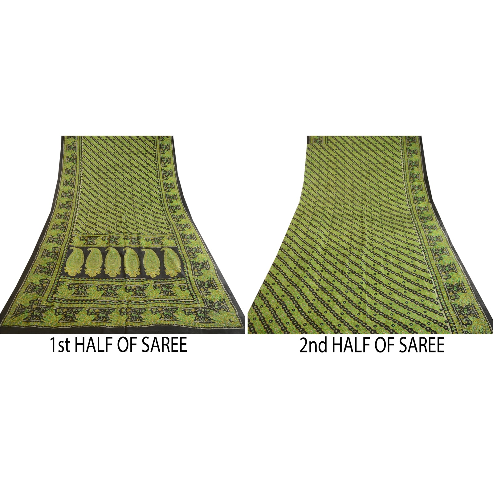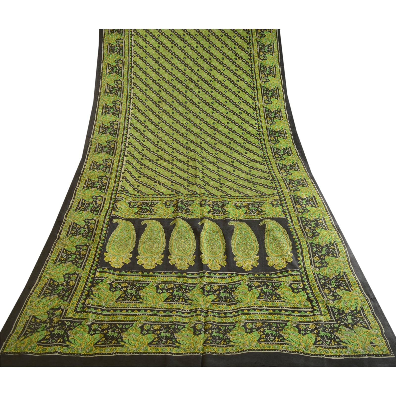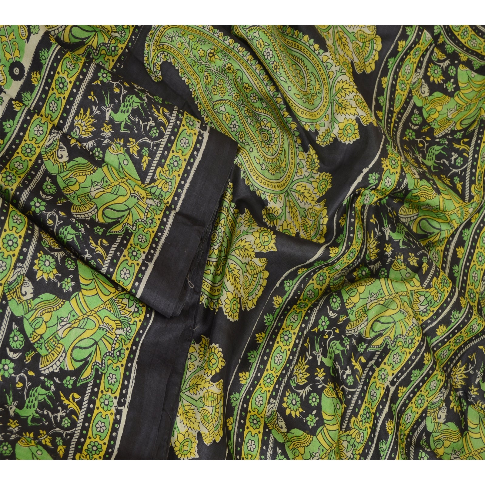 THE ITEM COLOR OR SHADE MAY BE DARKER OR LIGHTER THAN THE PICTURE.' Beautiful green & black colored pure silk printed saree. Pallu & Border has printed floral, paisley, deer, women with music instrument design. Floral design in center part of saree. What is special about this saree? Fabulous design is really enhancing the beauty of the saree.This unique vintage saree can be used for various crafting ideas even if you don't want to use it as a sari. Design a dress, use it as window,dressing, upholstery, sarongs, throw, dress making and table linen much more. Let your creative juices flow and use this decorated Sustainable Fabric in multiple fashion. International buyers please note: Import duties, taxes, and charges are not included in the item price or postage cost. These charges are the buyer's responsibility. Please check with your country's customs office to determine what these additional costs will be prior to bidding or buying. Buyer will pay custom duty/tax. It is calculated and charged differently by every country. As a seller I do not have any control over it. VAT or sales tax is calculated by the platform at the time of checkout. Customs charge is payable at the time of delivery.'