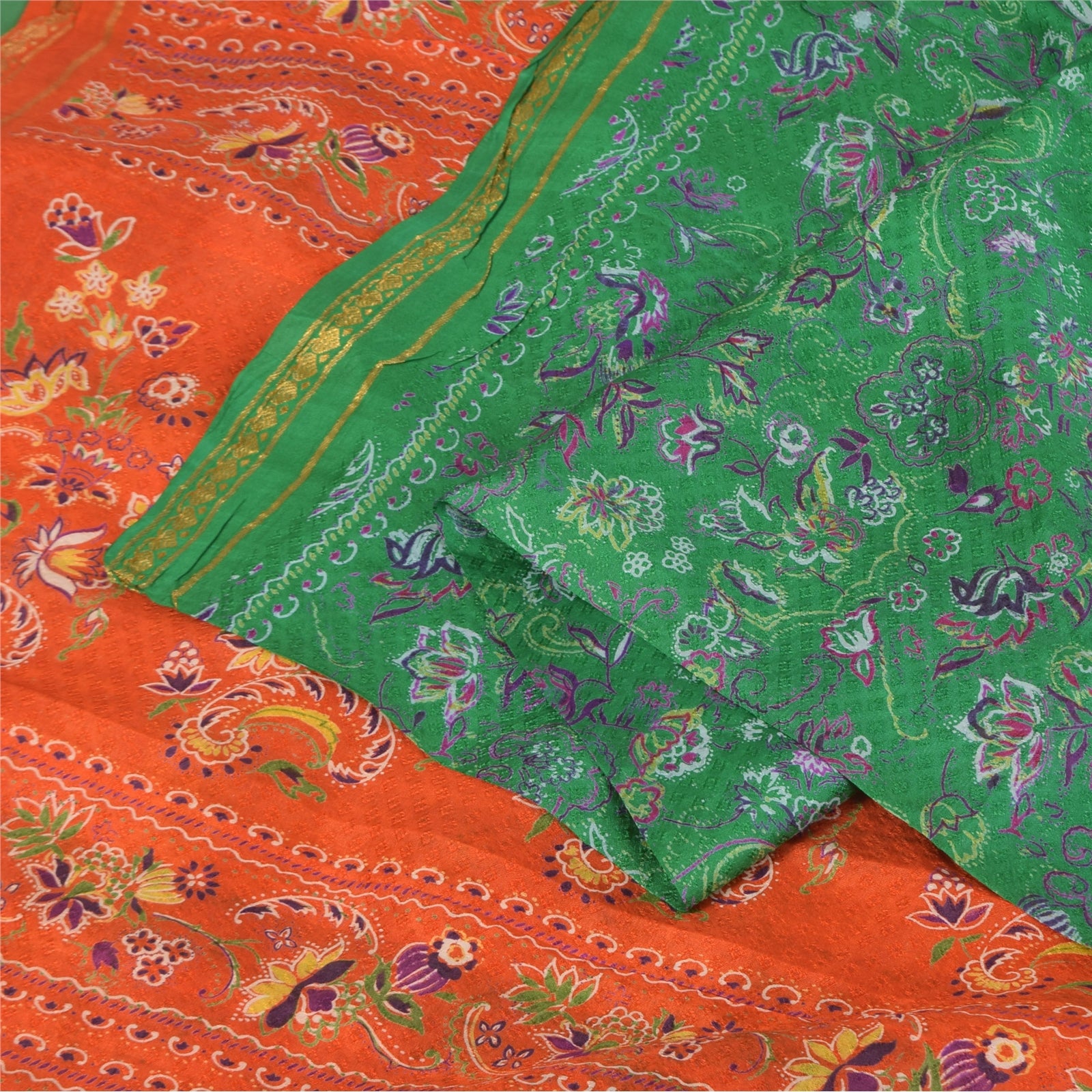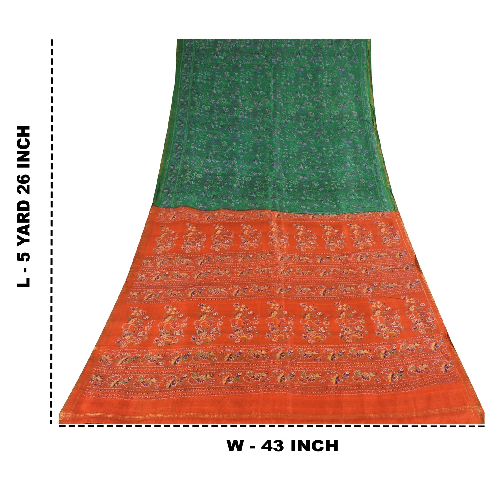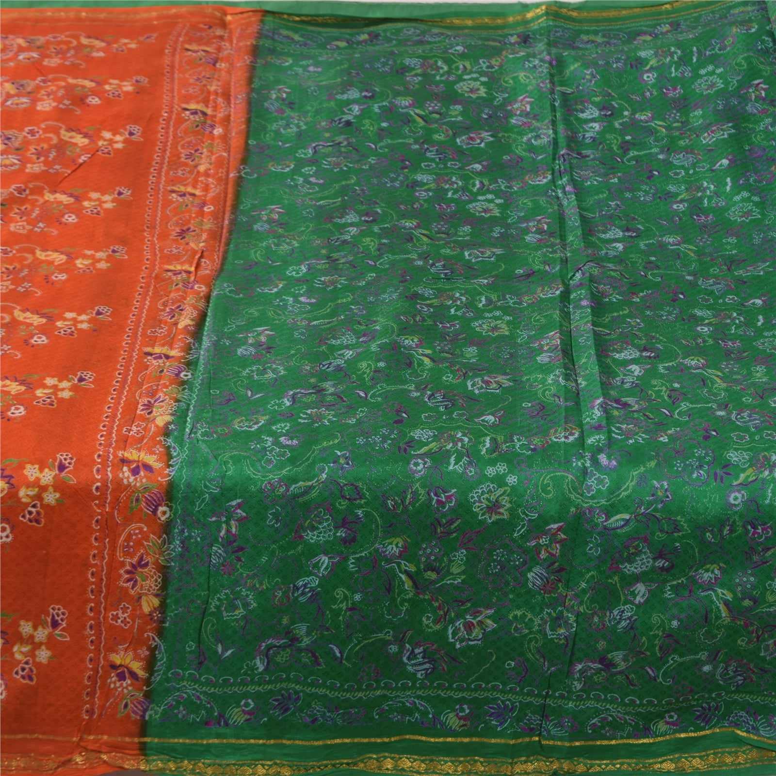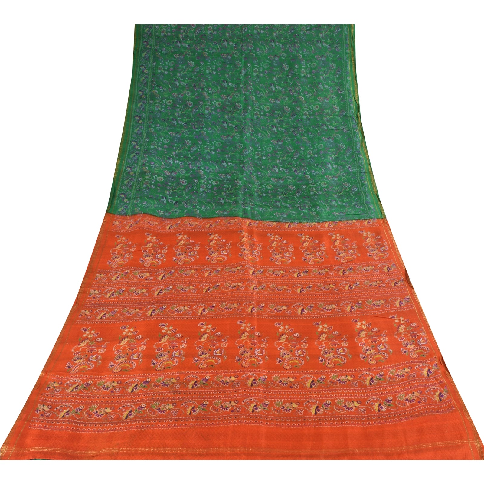 THE ITEM COLOR OR SHADE MAY BE DARKER OR LIGHTER THAN THE PICTURE.' • Beautiful green colored printed pure silk saree . • Pallu & Border has printed floral design & golden zari woven work. • Similar design in center part of sari . This unique vintage saree can be used for various crafting ideas even if you don't want to use it as a sari. Design a dress, use it as a as window dressing, upholstery, sarongs, throw, dress making and table linen much more. Let your creative juices flow and use this decorated Sustainable Fabric in multiple fashion. International buyers please note: Import duties, taxes, and charges are not included in the item price or postage cost. These charges are the buyer's responsibility. Please check with your country's customs office to determine what these additional costs will be prior to bidding or buying.Buyer will pay custom duty/tax. It is calculated and charged differently by every country. As a seller I do not have any control over it. VAT or sales tax is calculated by the platform at the time of checkout. Customs charge is payable at the time of delivery. pr-69590
