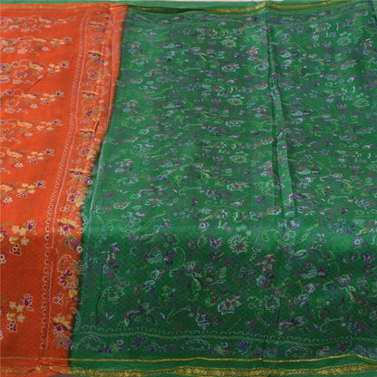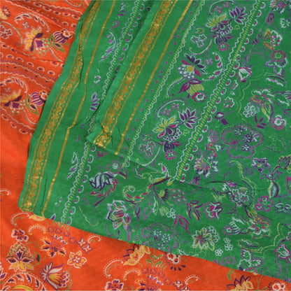 Sanskriti Vintage Sarees Green Zari Border Pure Silk Printed Sari 5+yd Sustainable Fabric