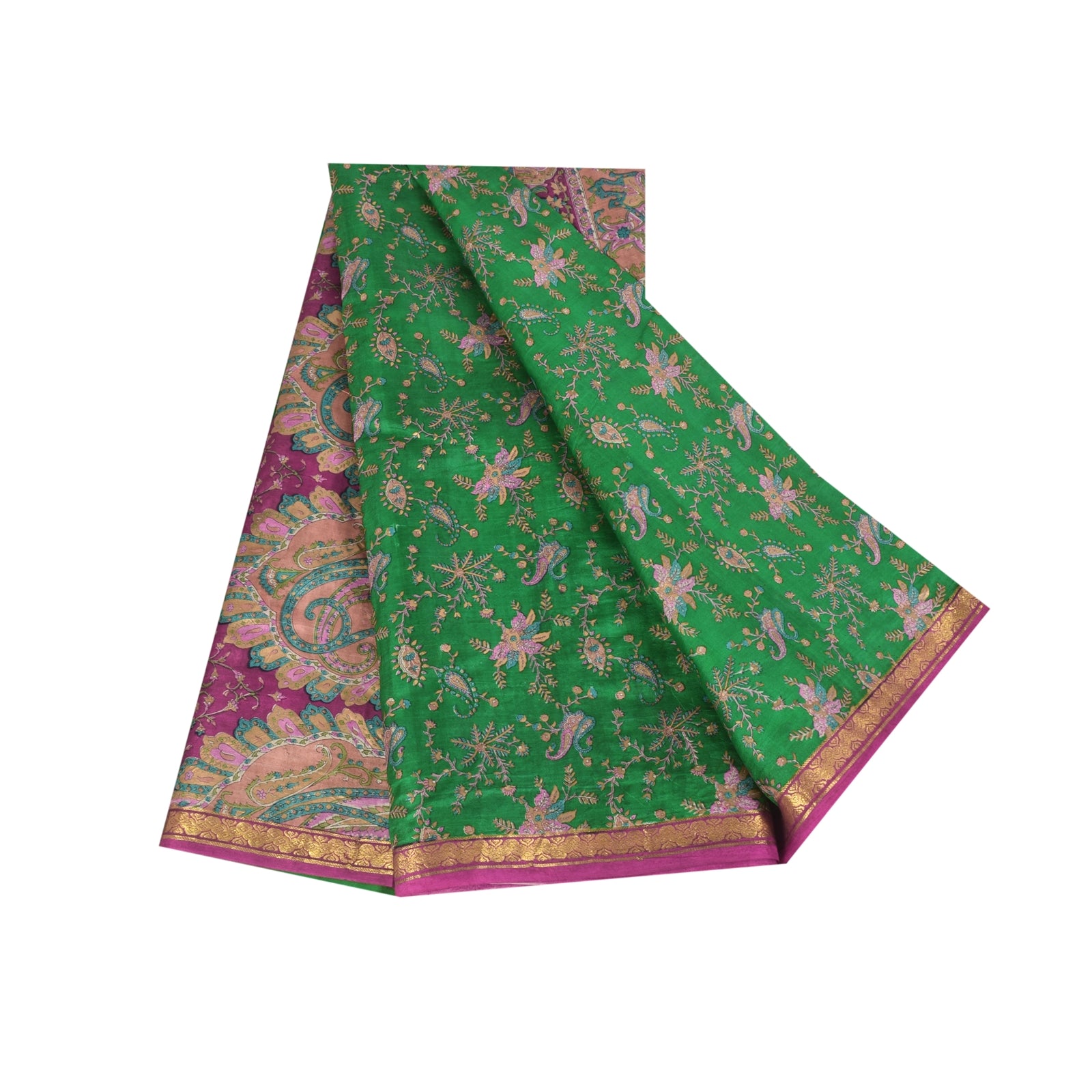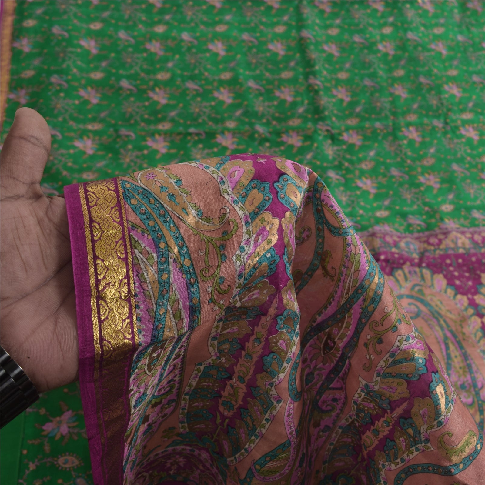 THE ITEM COLOR OR SHADE MAY BE DARKER OR LIGHTER THAN THE PICTURE.' • Beautiful green colored printed pure silk saree . • Pallu & Border has printed floral design & golden zari woven work. • Similar design in center part of sari . This unique vintage saree can be used for various crafting ideas even if you don't want to use it as a sari. Design a dress, use it as a as window dressing, upholstery, sarongs, throw, dress making and table linen much more. Let your creative juices flow and use this decorated fabric in multiple fashion. International buyers please note: Import duties, taxes, and charges are not included in the item price or postage cost. These charges are the buyer's responsibility. Please check with your country's customs office to determine what these additional costs will be prior to bidding or buying.Buyer will pay custom duty/tax. It is calculated and charged differently by every country. As a seller I do not have any control over it. VAT or sales tax is calculated by the platform at the time of checkout. Customs charge is payable at the time of delivery. PR-69983