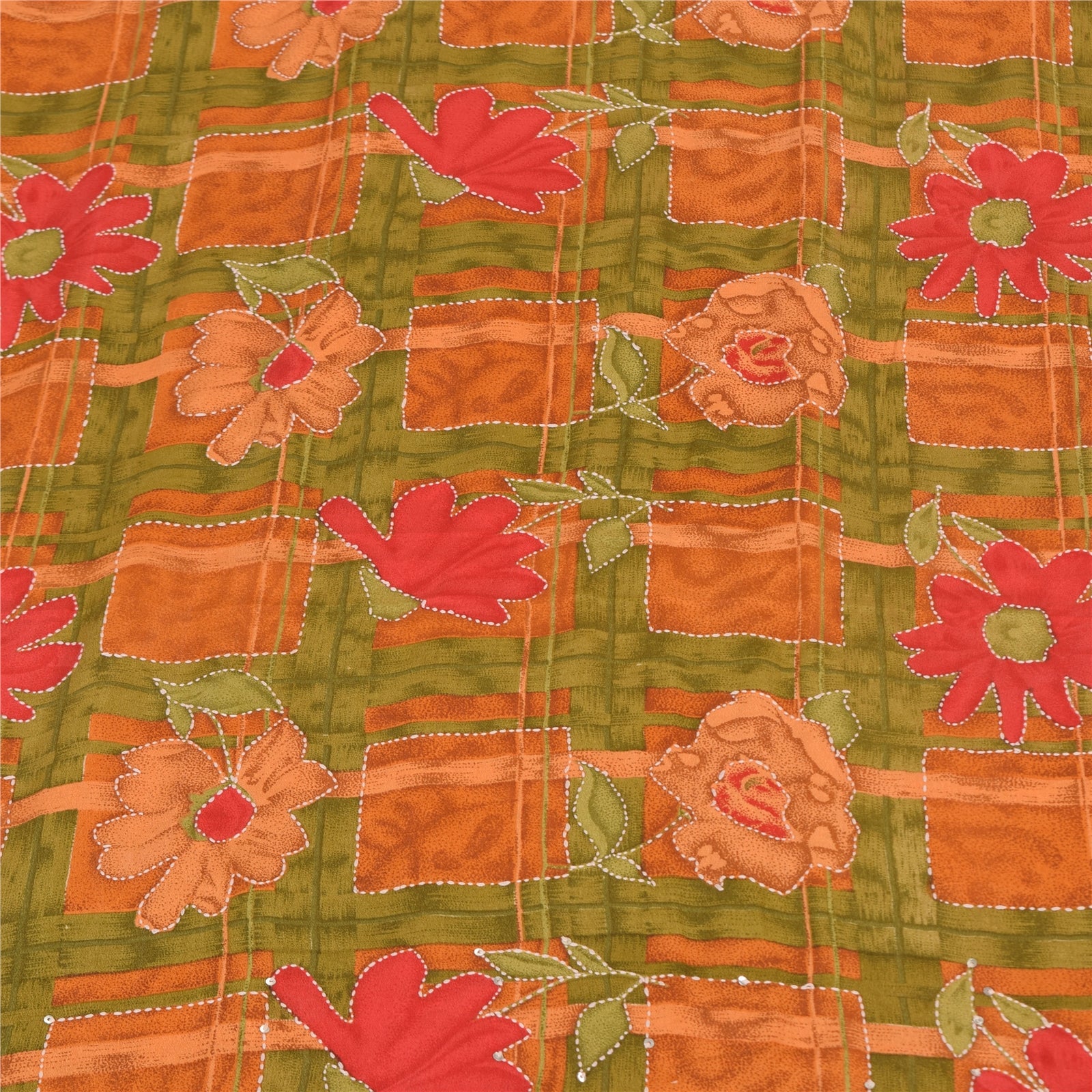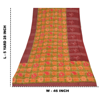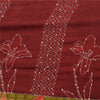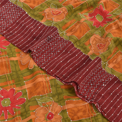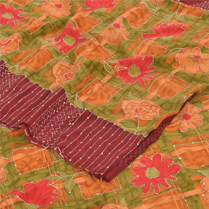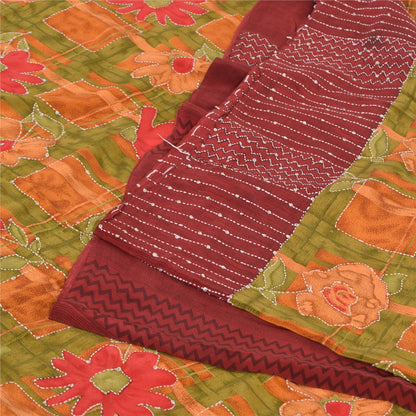 Sanskriti Vintage Sarees Hand Bead Kantha Pure Crepe Silk Print Sari 5yd Sustainable Fabric