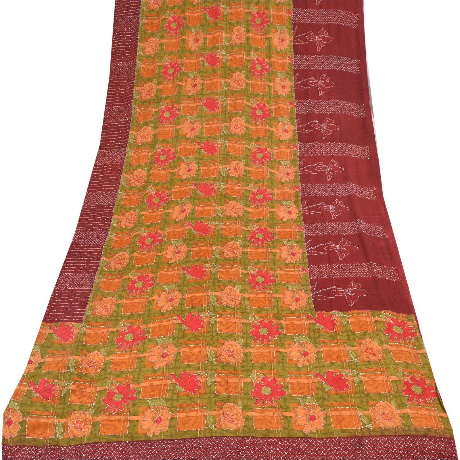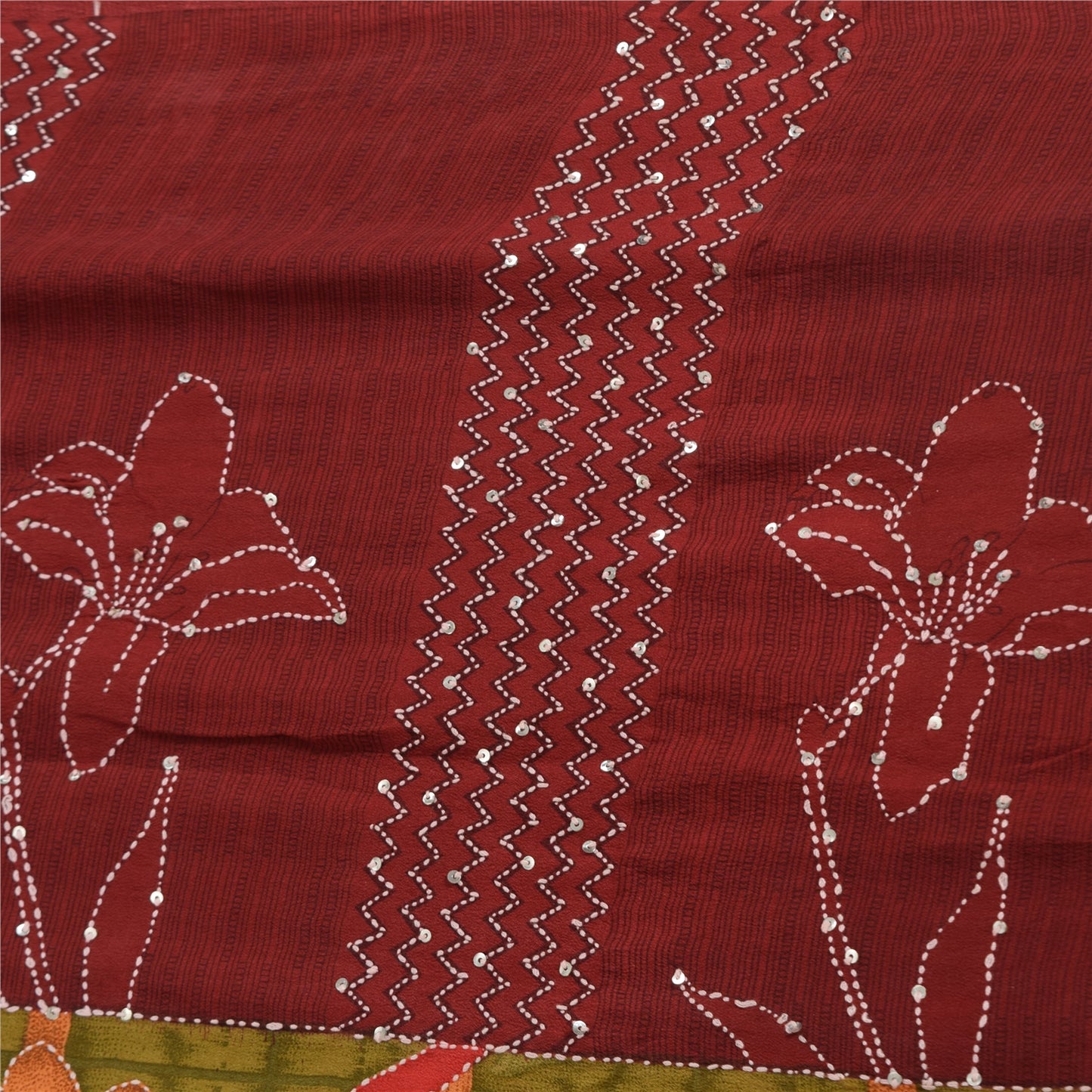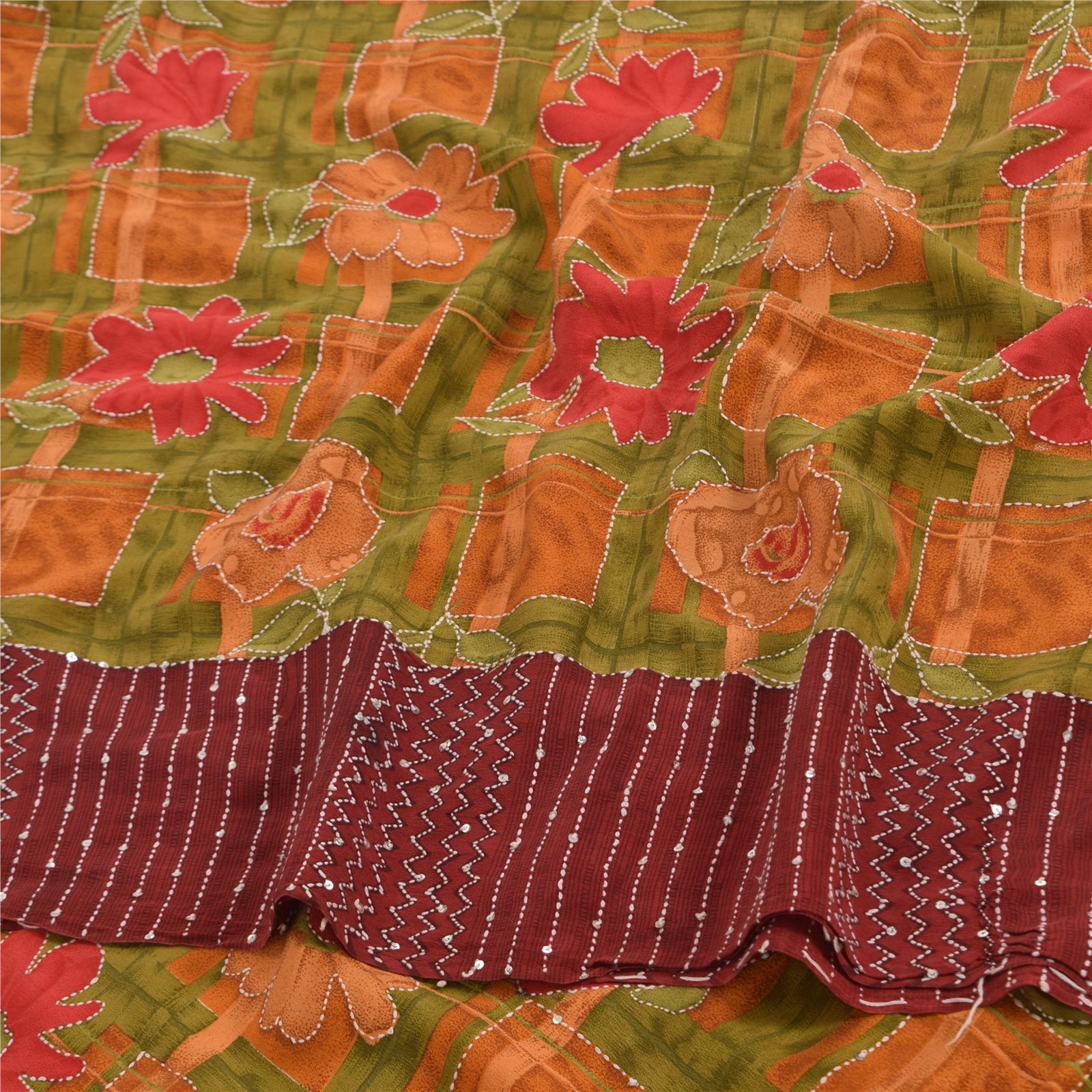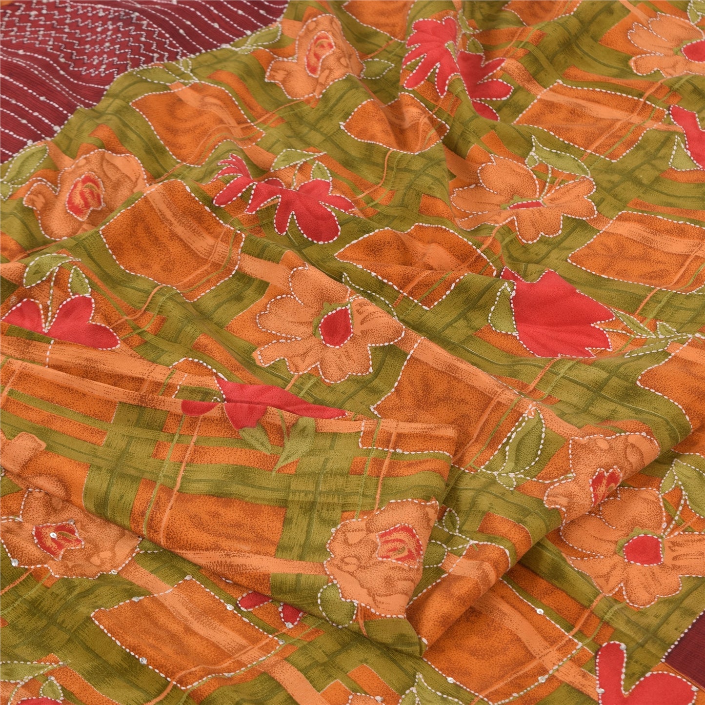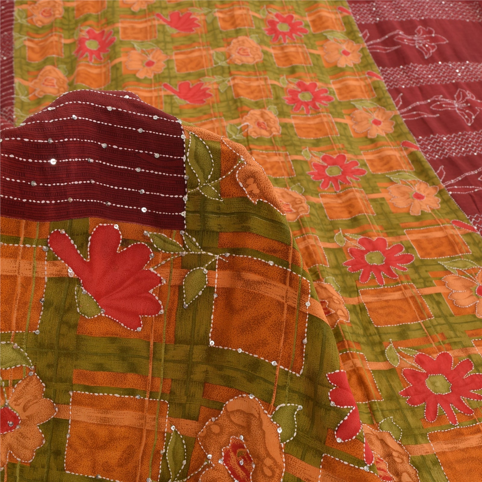 THE ITEM COLOR OR SHADE MAY BE DARKER OR LIGHTER THAN THE PICTURE.' • Beautiful multi colored printed & hand embroidered kantha pure crepe silk saree . • Pallu & Border has printed floral design with thread & sequins work. • Similar work in center part of sari . This unique vintage saree can be used for various crafting ideas even if you don't want to use it as a sari. Design a dress, use it as a as window dressing, upholstery, sarongs, throw, dress making and table linen much more. Let your creative juices flow and use this decorated Sustainable Fabric in multiple fashion. International buyers please note: Import duties, taxes, and charges are not included in the item price or postage cost. These charges are the buyer's responsibility. Please check with your country's customs office to determine what these additional costs will be prior to bidding or buying.Buyer will pay custom duty/tax. It is calculated and charged differently by every country. As a seller I do not have any control over it. VAT or sales tax is calculated by the platform at the time of checkout. Customs charge is payable at the time of delivery.