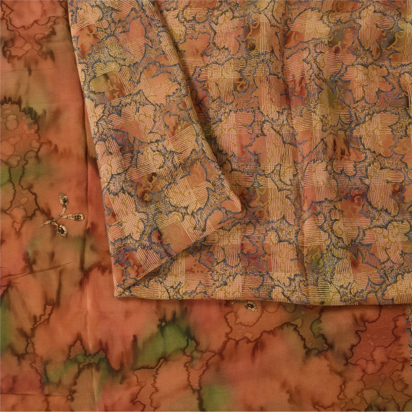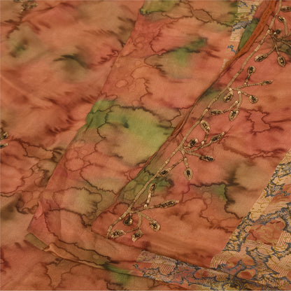 Sanskriti Vintage Sarees Hand Beaded Pure Crepe Printed Sari 5+yd Craft Sustainable Fabric