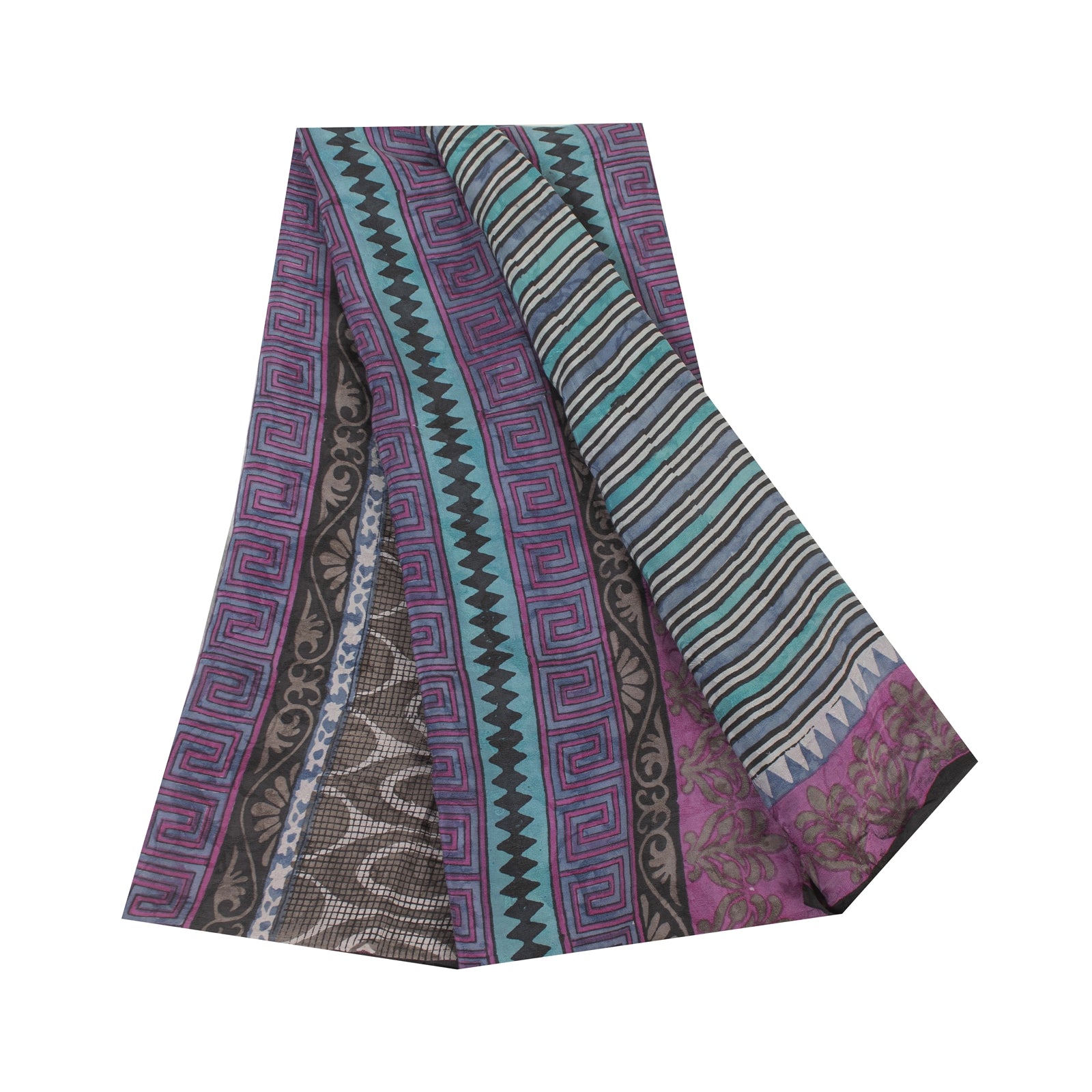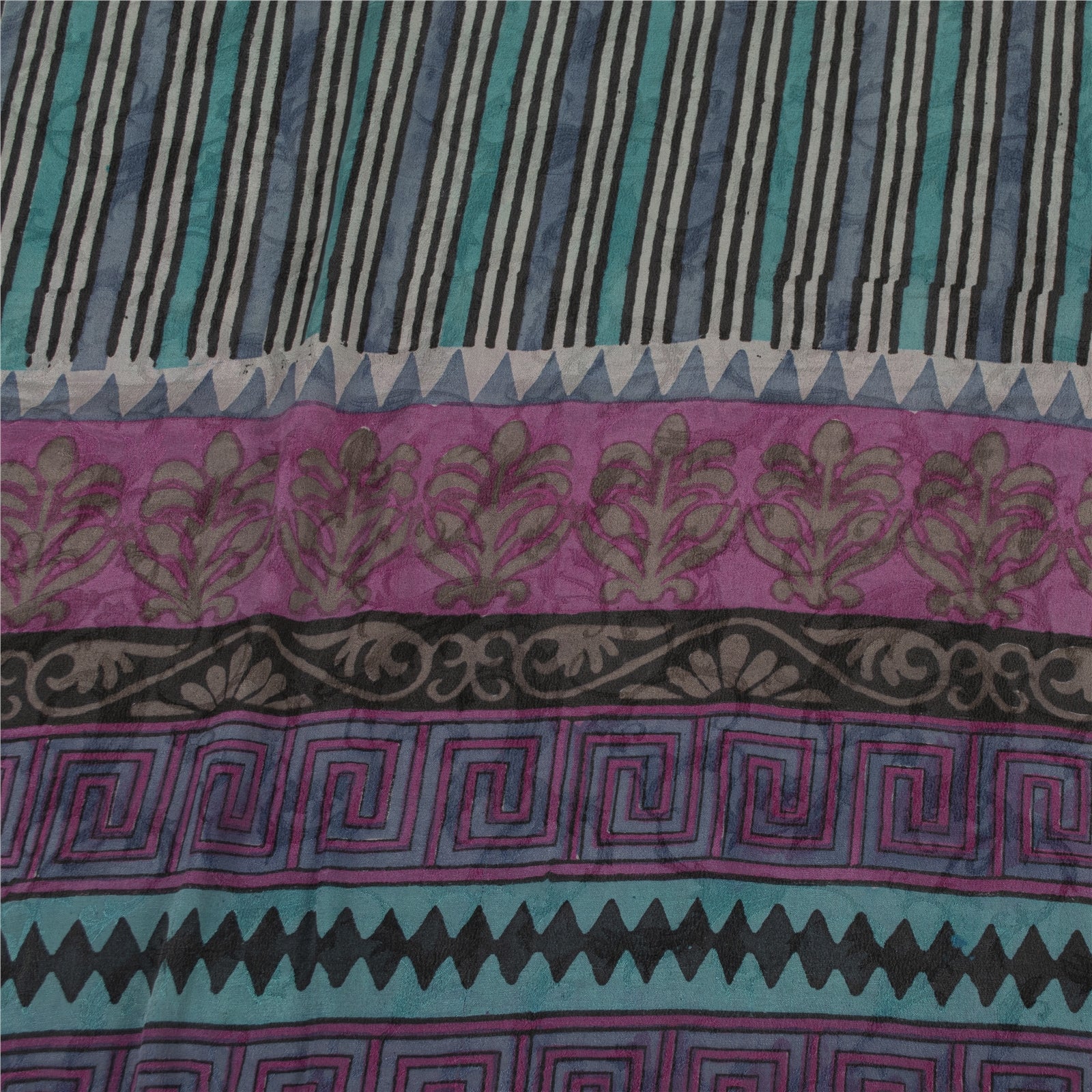 Sanskriti Vintage Sarees Hand Block Printed Pure Crepe Sari 5+yd Craft Fabric