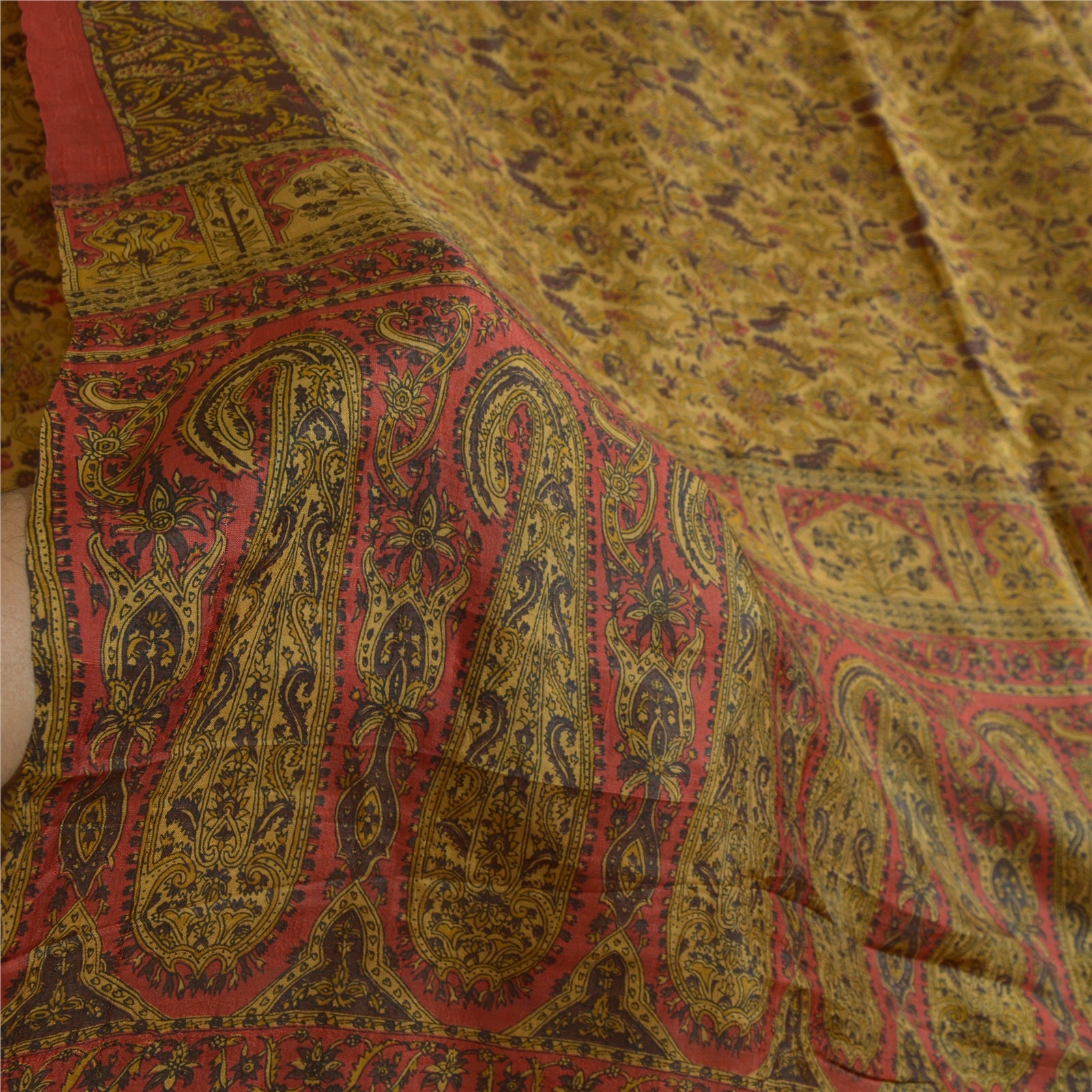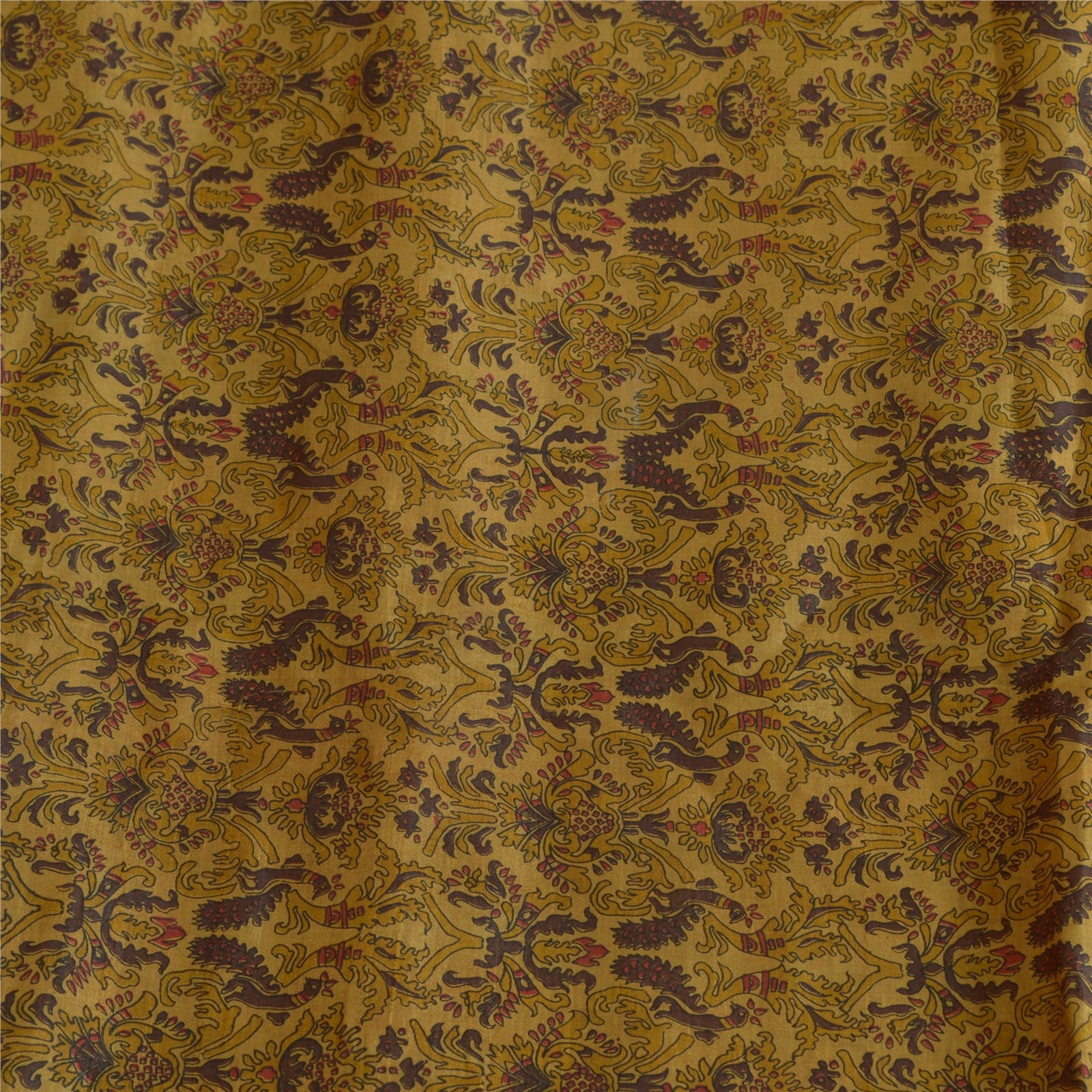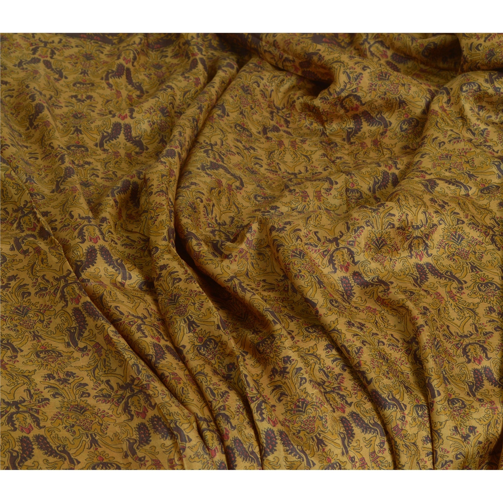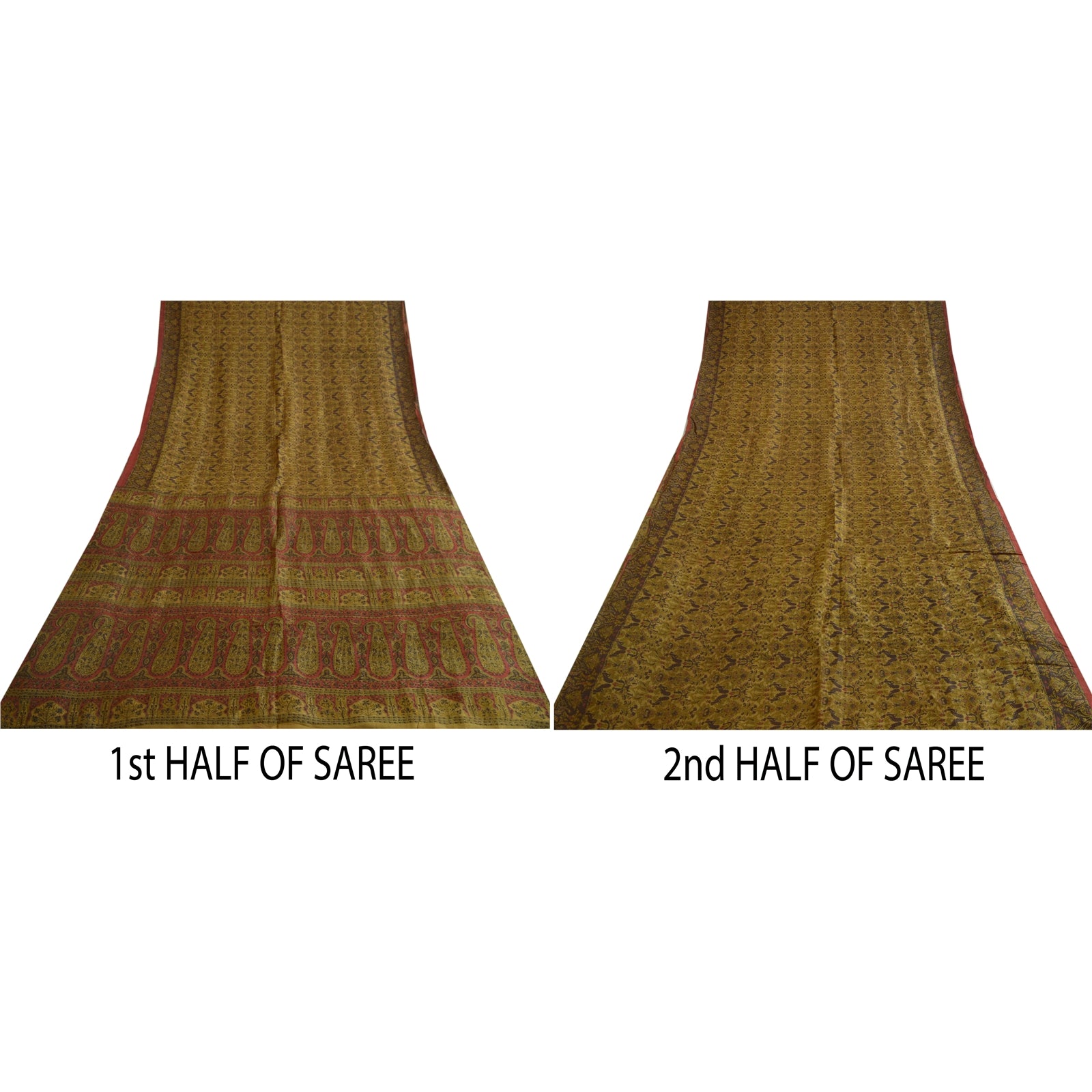 Sanskriti Vintage Sarees Heena-Green Pure Silk Printed Sari Floral Craft Sustainable Fabric