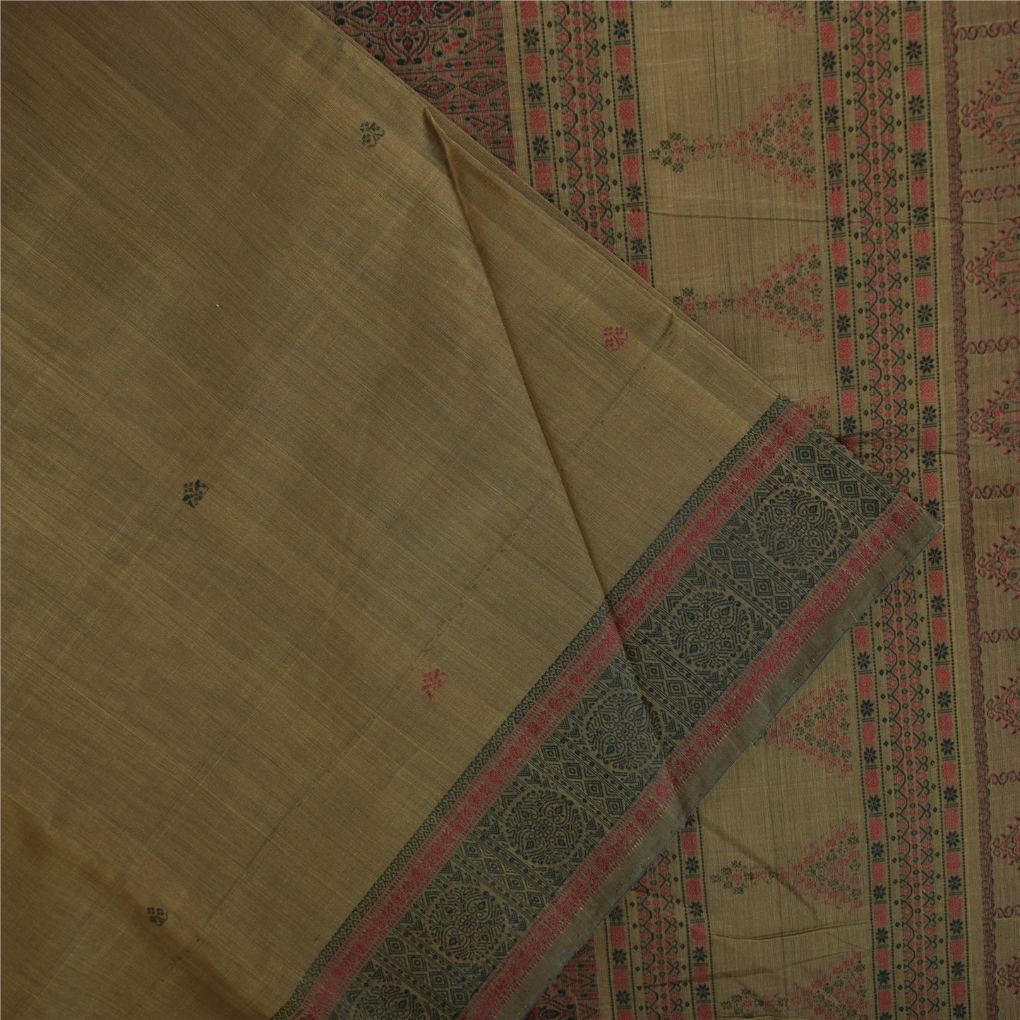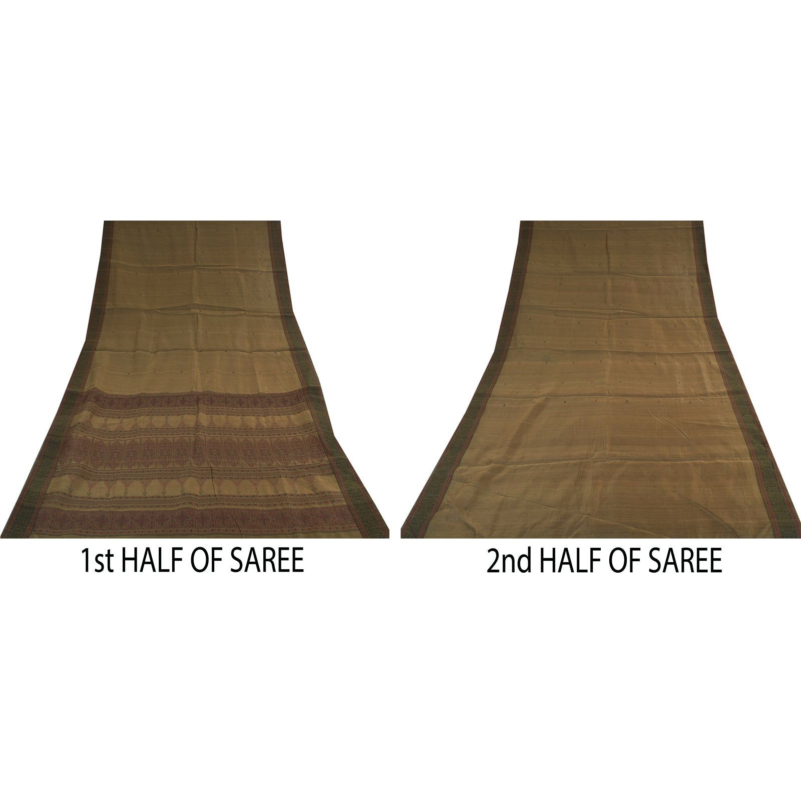 Sanskriti Vintage Sarees Heena-Green Woven Pure Cotton Sari 5+yd Craft Sustainable Fabric