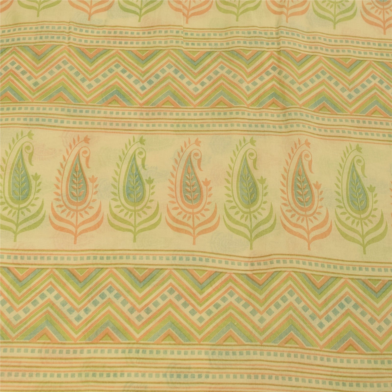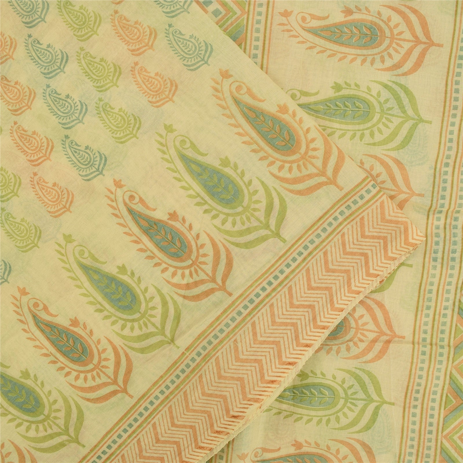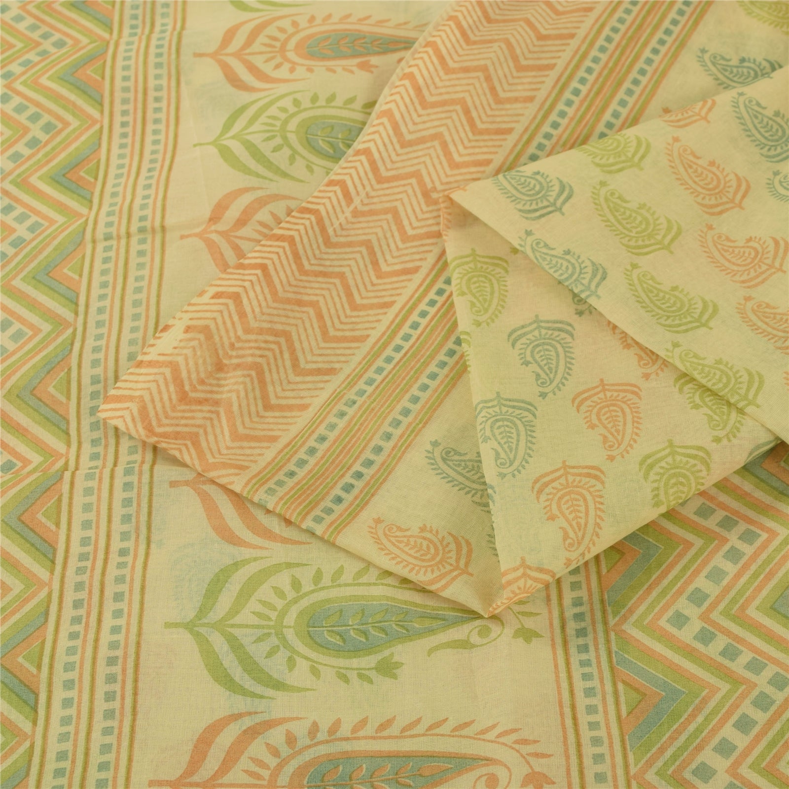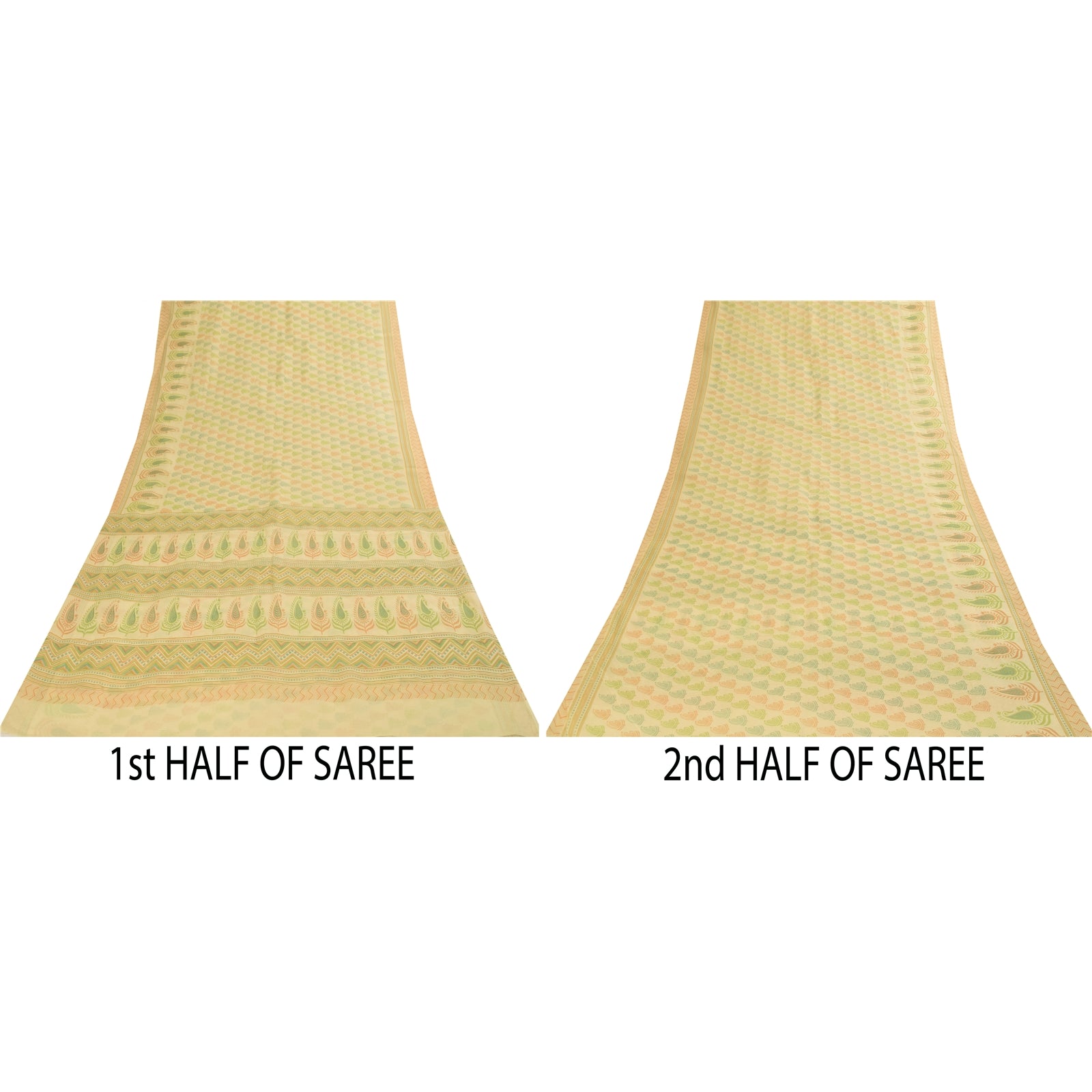 Sanskriti Vintage Sarees Indian Cream Pure Cotton Printed Sari 5+yd Craft Fabric