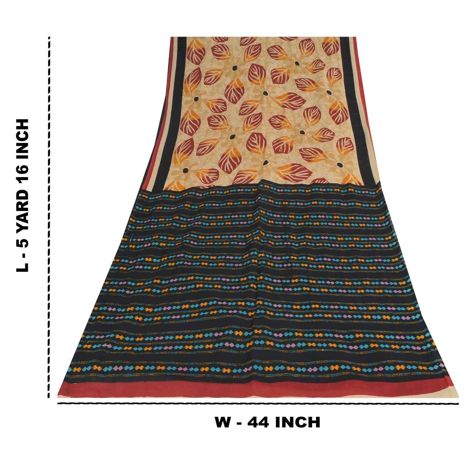 THE ITEM COLOR OR SHADE MAY BE DARKER OR LIGHTER THAN THE PICTURE. Attractive cream colored pure cotton printed sari. Pallu & Border has printed geometric design. Leaf design in center part of saree.. This unique vintage saree can be used for various crafting ideas even if you don't want to use it as a sari. Design a dress, use it as a as window dressing, upholstery, sarongs, throw, dress making and table linen much more. Let your creative juices flow and use this decorated fabric in multiple fashion. Shipping Note: 'International buyers please note: Import duties, taxes, and charges are not included in the item price or postage cost. These charges are the buyer's responsibility. Please check with your country's customs office to determine what these additional costs will be prior to bidding or buying. Buyer will pay custom duty/tax. It is calculated and charged differently by every country. As a seller I do not have any control over it. VAT or sales tax is calculated by the platform at the time of checkout. Customs charge is payable at the time of delivery.' PCS-6755