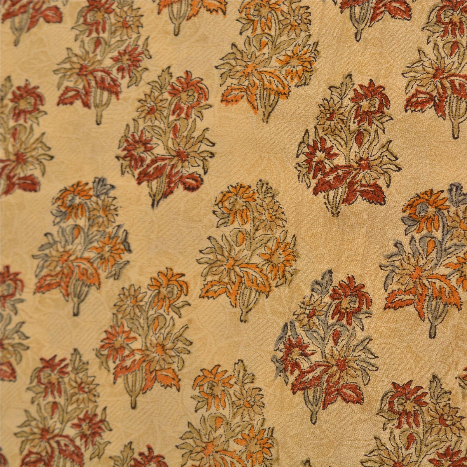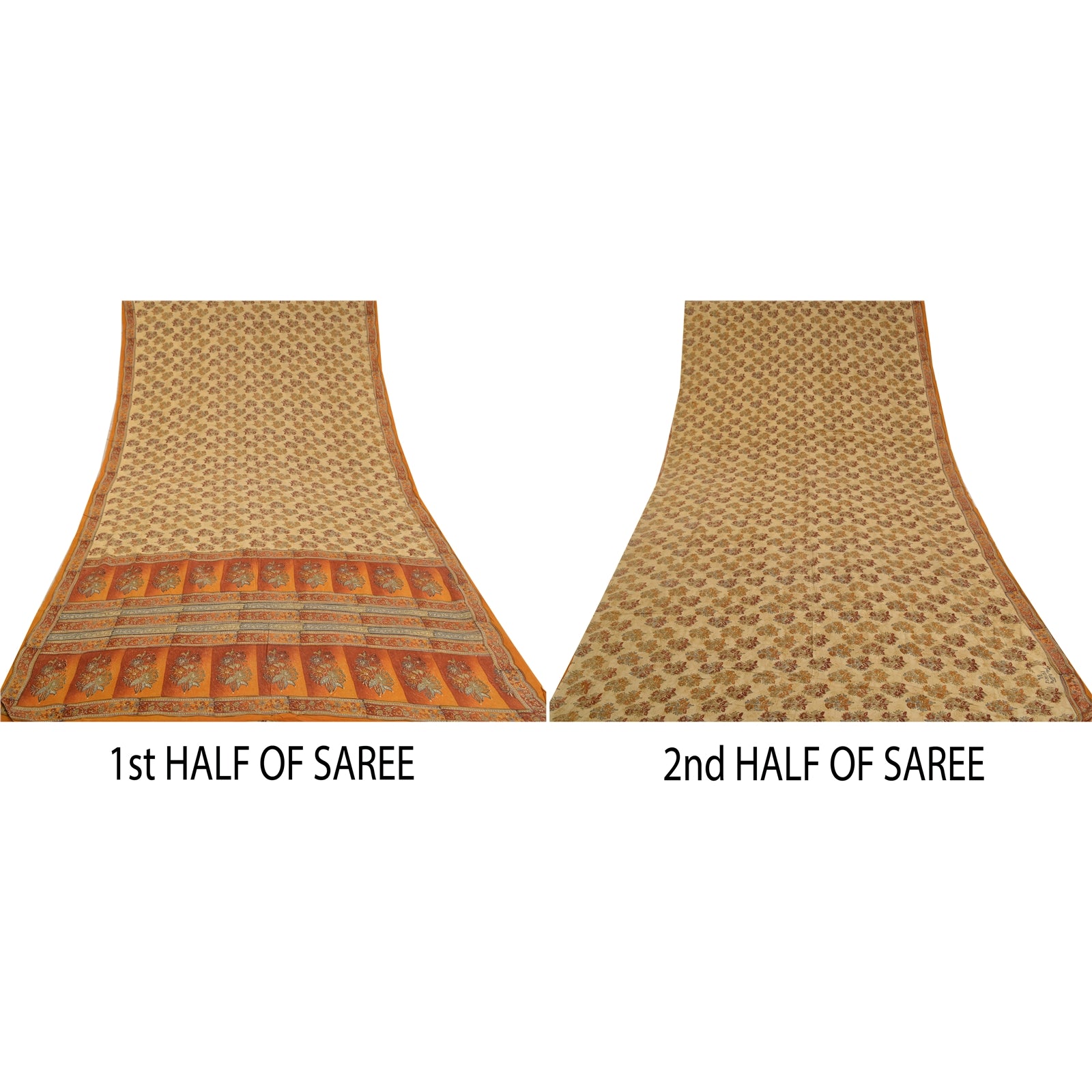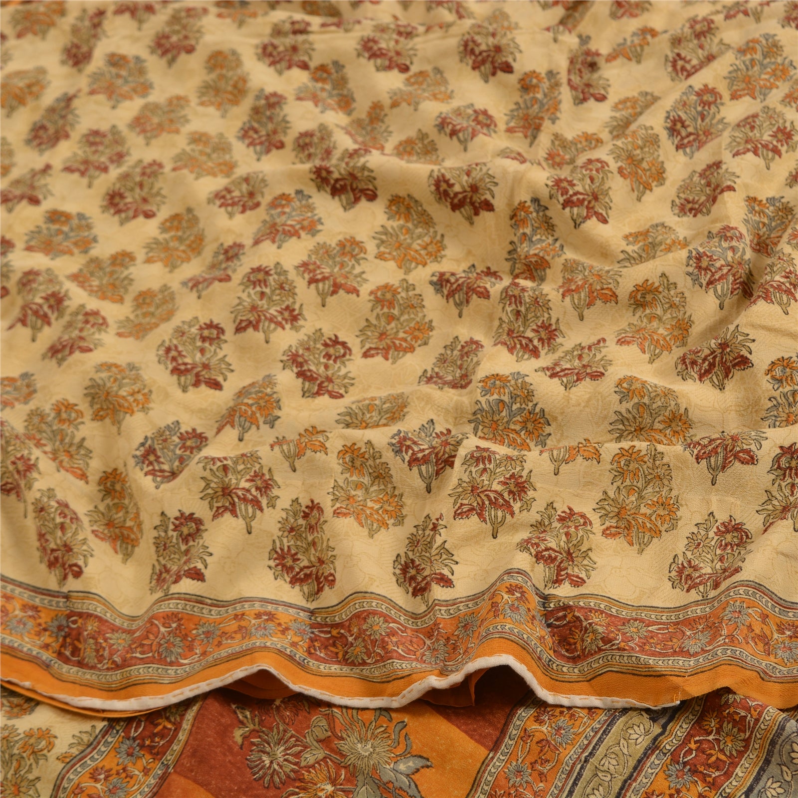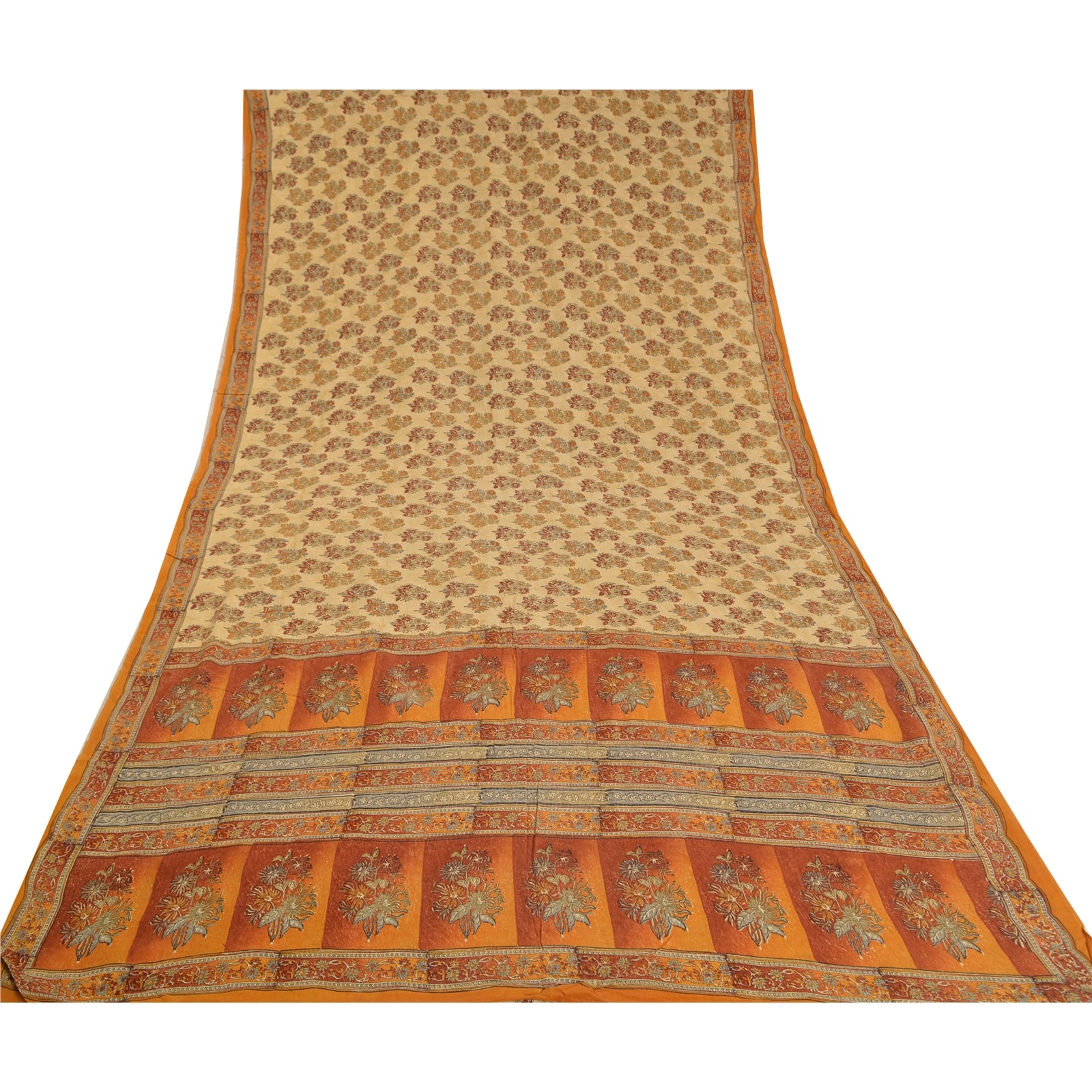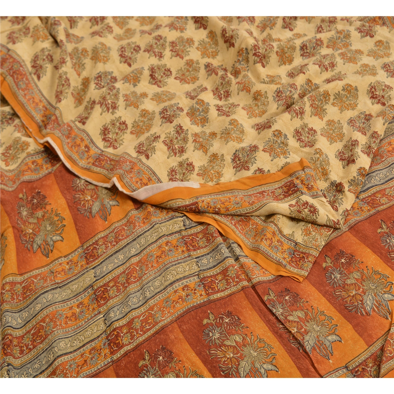 Sanskriti Vintage Sarees Indian Cream Pure Crepe Silk Printed Sari Craft Sustainable Fabric