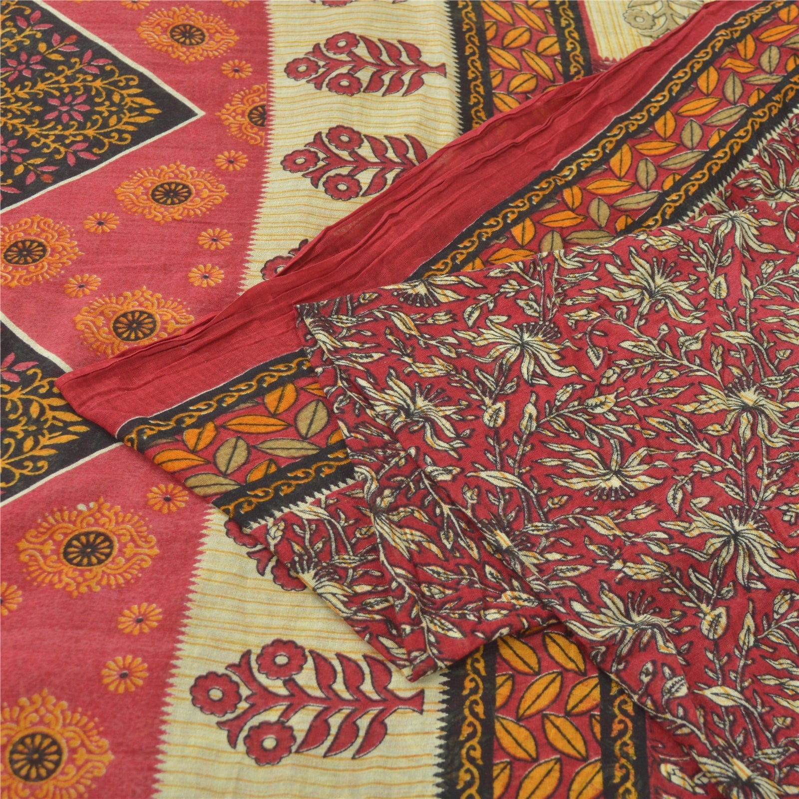 Sanskriti Vintage Sarees Indian Dark Red Pure Cotton Print Sari 5yd Craft Sustainable Fabric