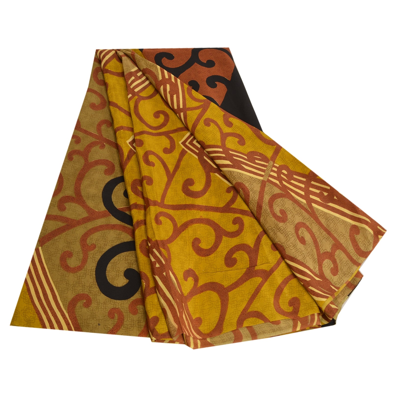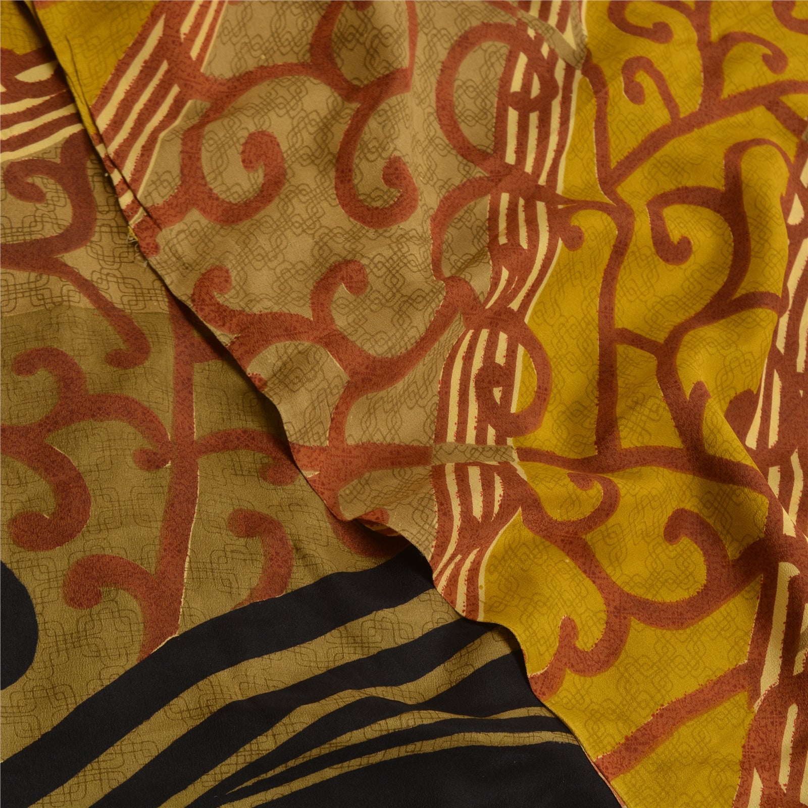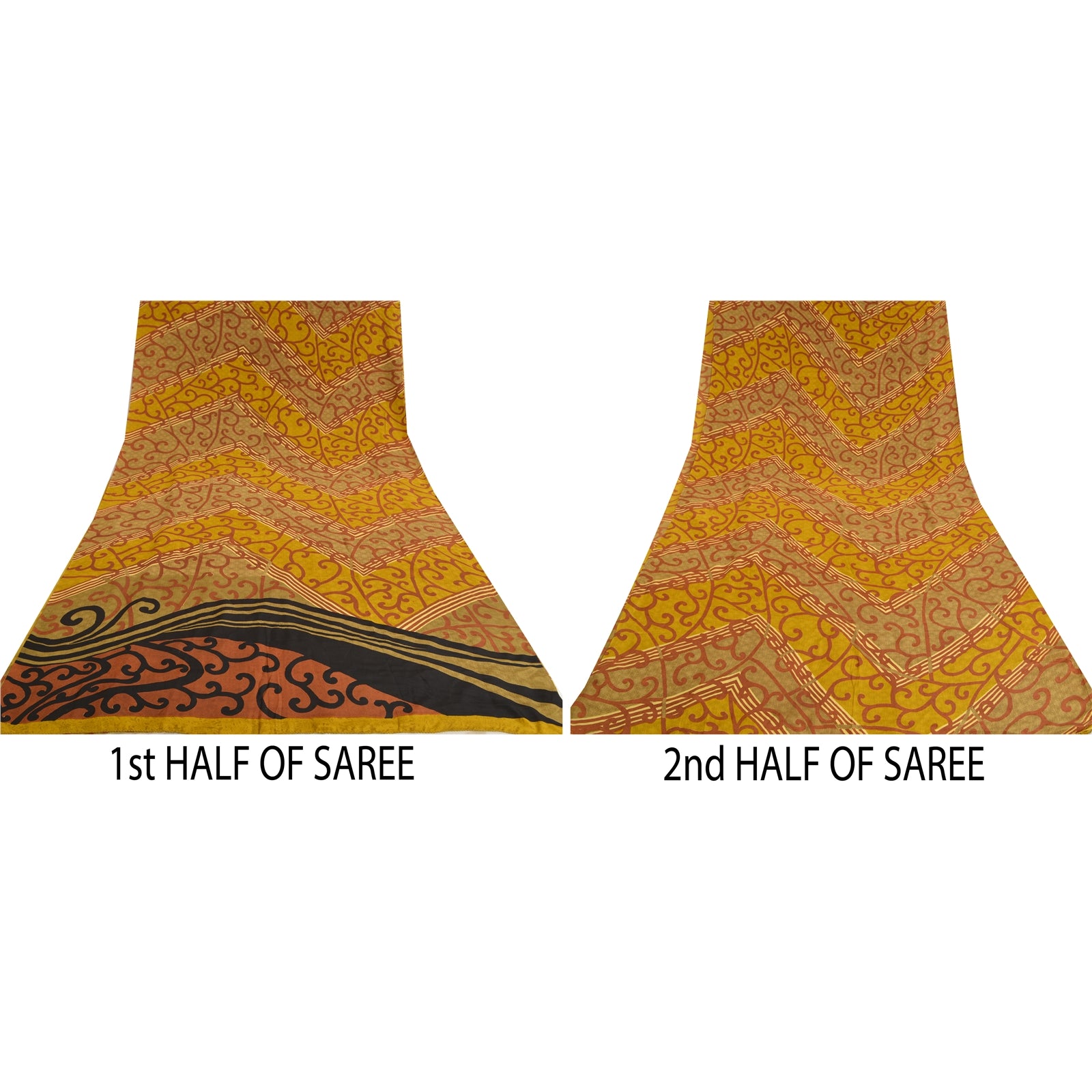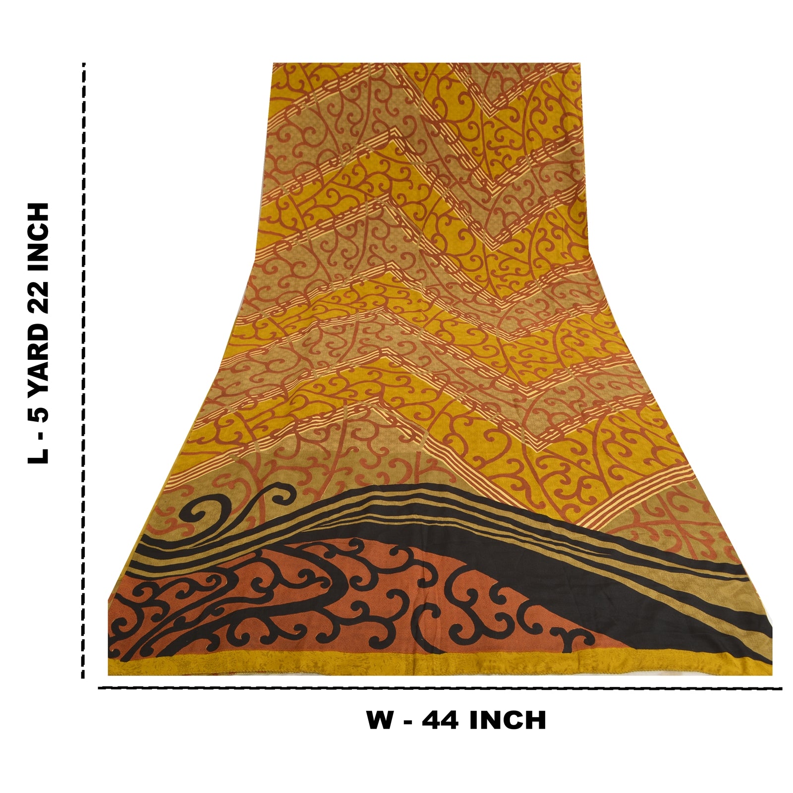 Sanskriti Vintage Sarees Indian Green Pure Crepe Silk Printed Sari Craft Sustainable Fabric