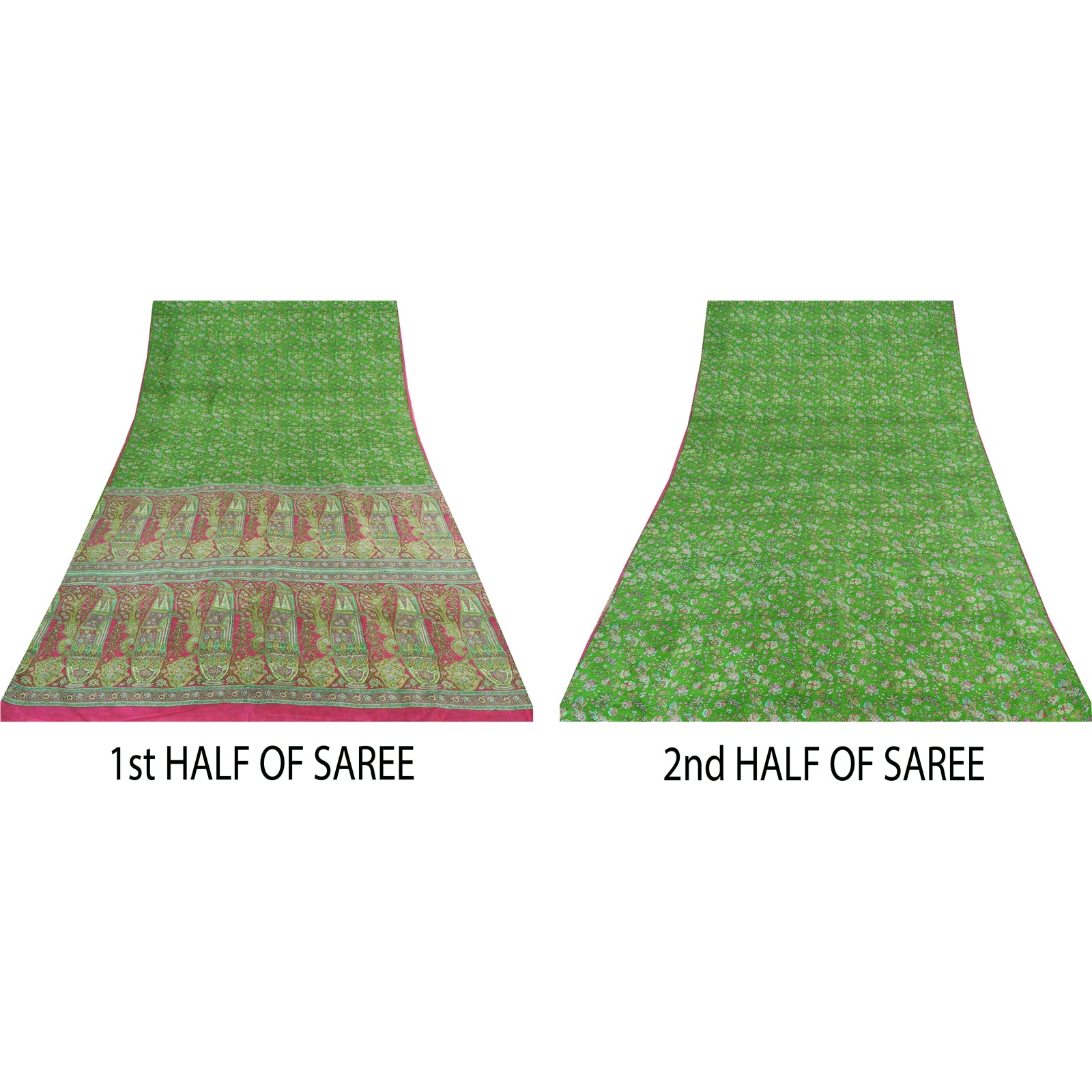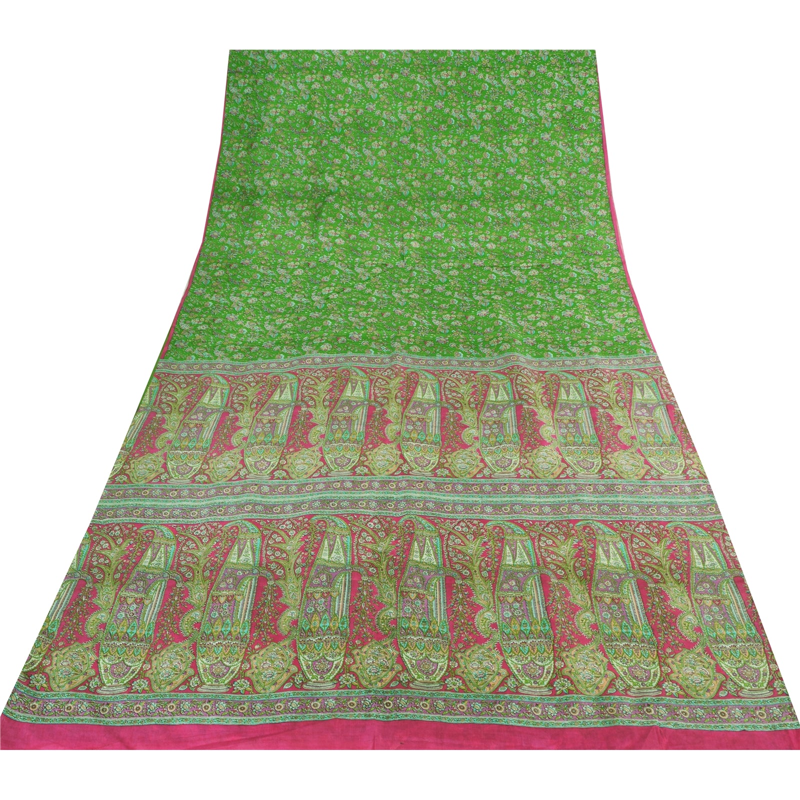 THE ITEM COLOR OR SHADE MAY BE DARKER OR LIGHTER THAN THE PICTURE.' • Beautiful green colored printed pure silk saree . • Pallu & Border has printed floral design. • Similar design in center part of sari . This unique vintage saree can be used for various crafting ideas even if you don't want to use it as a sari. Design a dress, use it as a as window dressing, upholstery, sarongs, throw, dress making and table linen much more. Let your creative juices flow and use this decorated Sustainable Fabric in multiple fashion. International buyers please note: Import duties, taxes, and charges are not included in the item price or postage cost. These charges are the buyer's responsibility. Please check with your country's customs office to determine what these additional costs will be prior to bidding or buying.Buyer will pay custom duty/tax. It is calculated and charged differently by every country. As a seller I do not have any control over it. VAT or sales tax is calculated by the platform at the time of checkout. Customs charge is payable at the time of delivery.