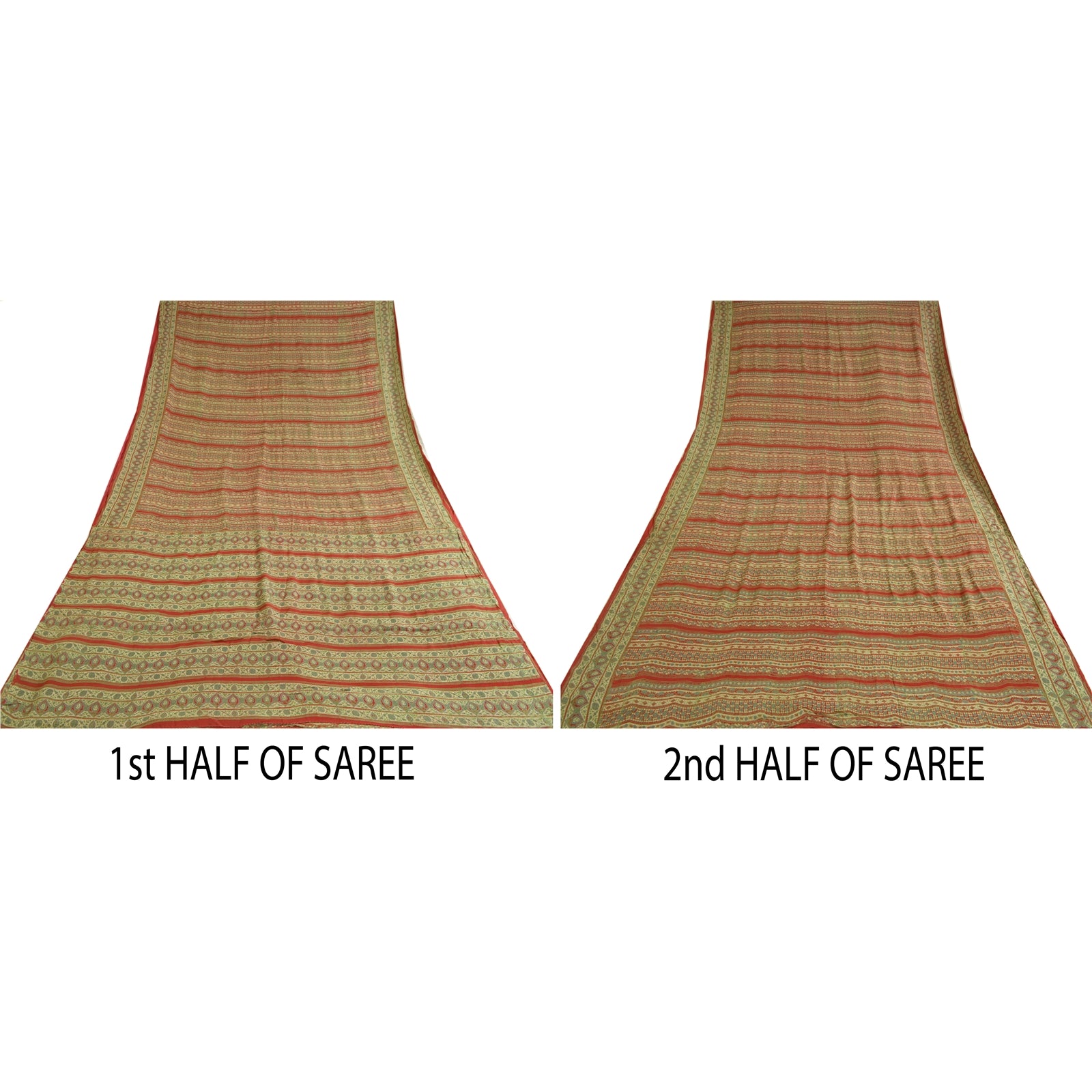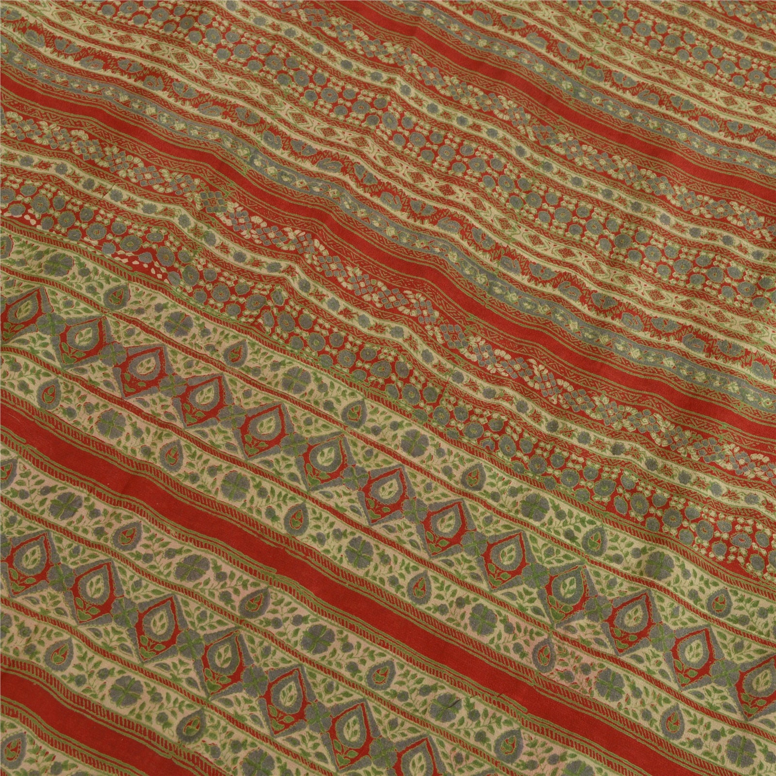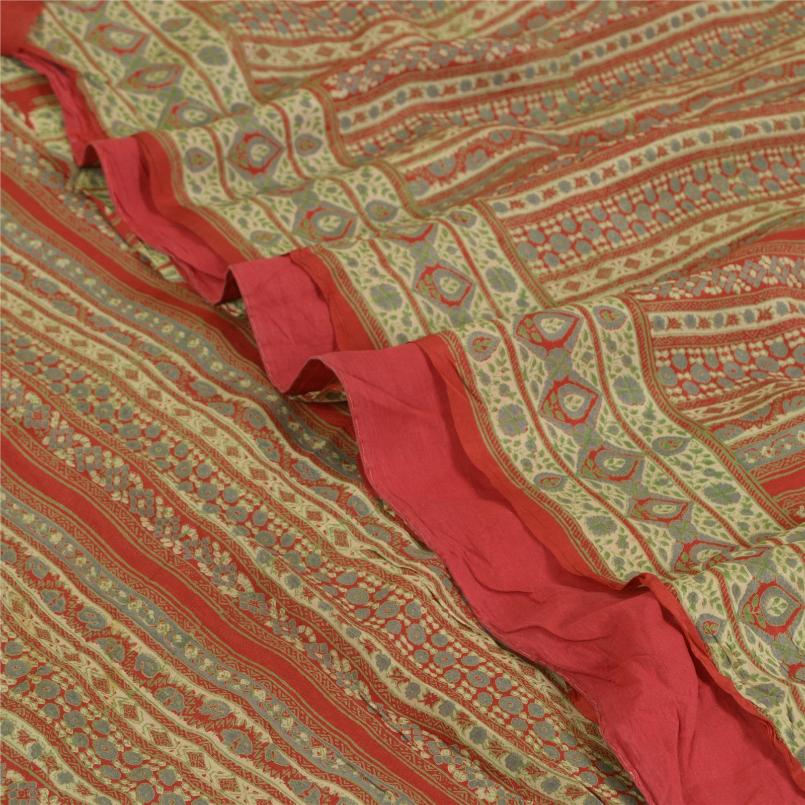 Sanskriti Vintage Sarees Indian Green/Red Pure Silk Printed Sari Craft Sustainable Fabric