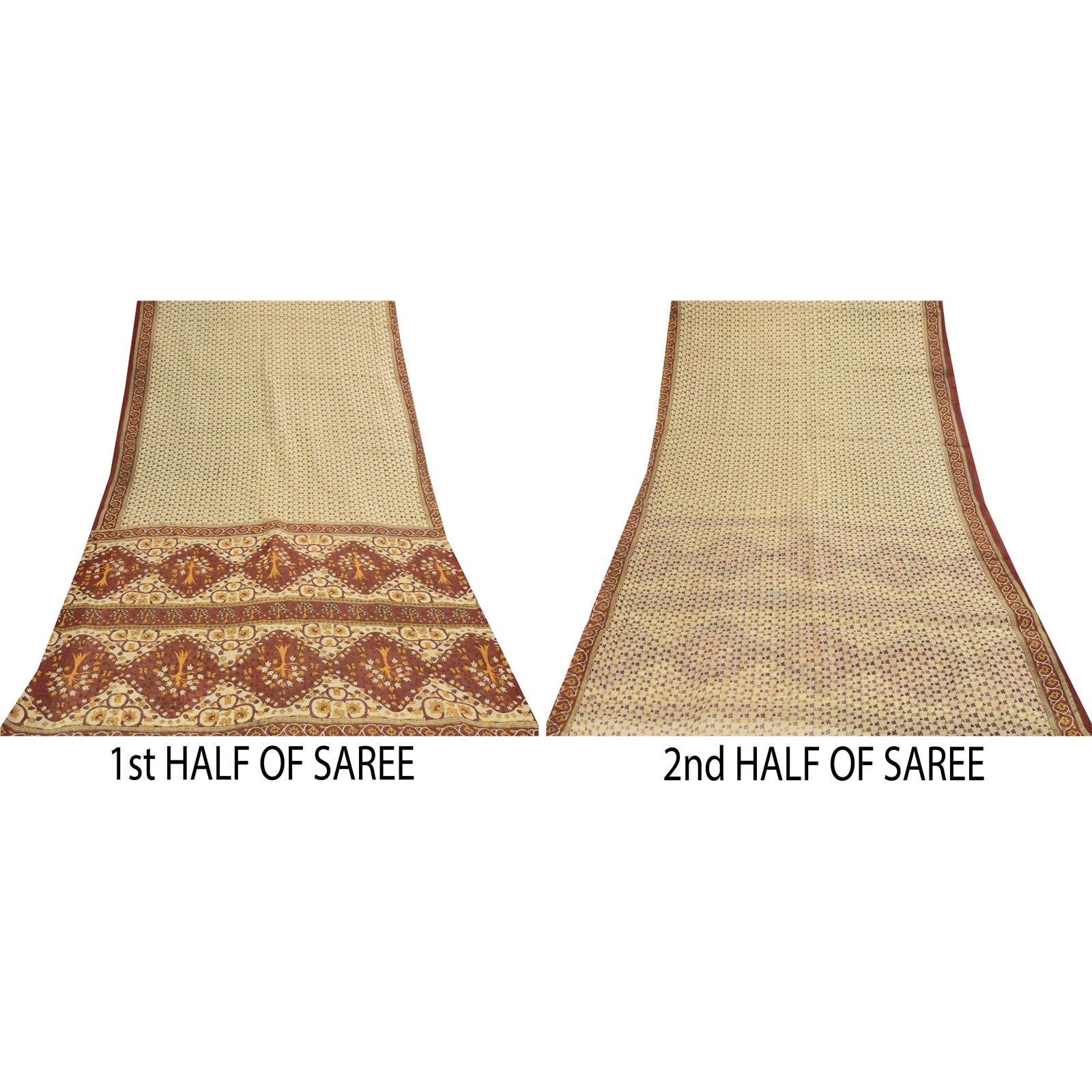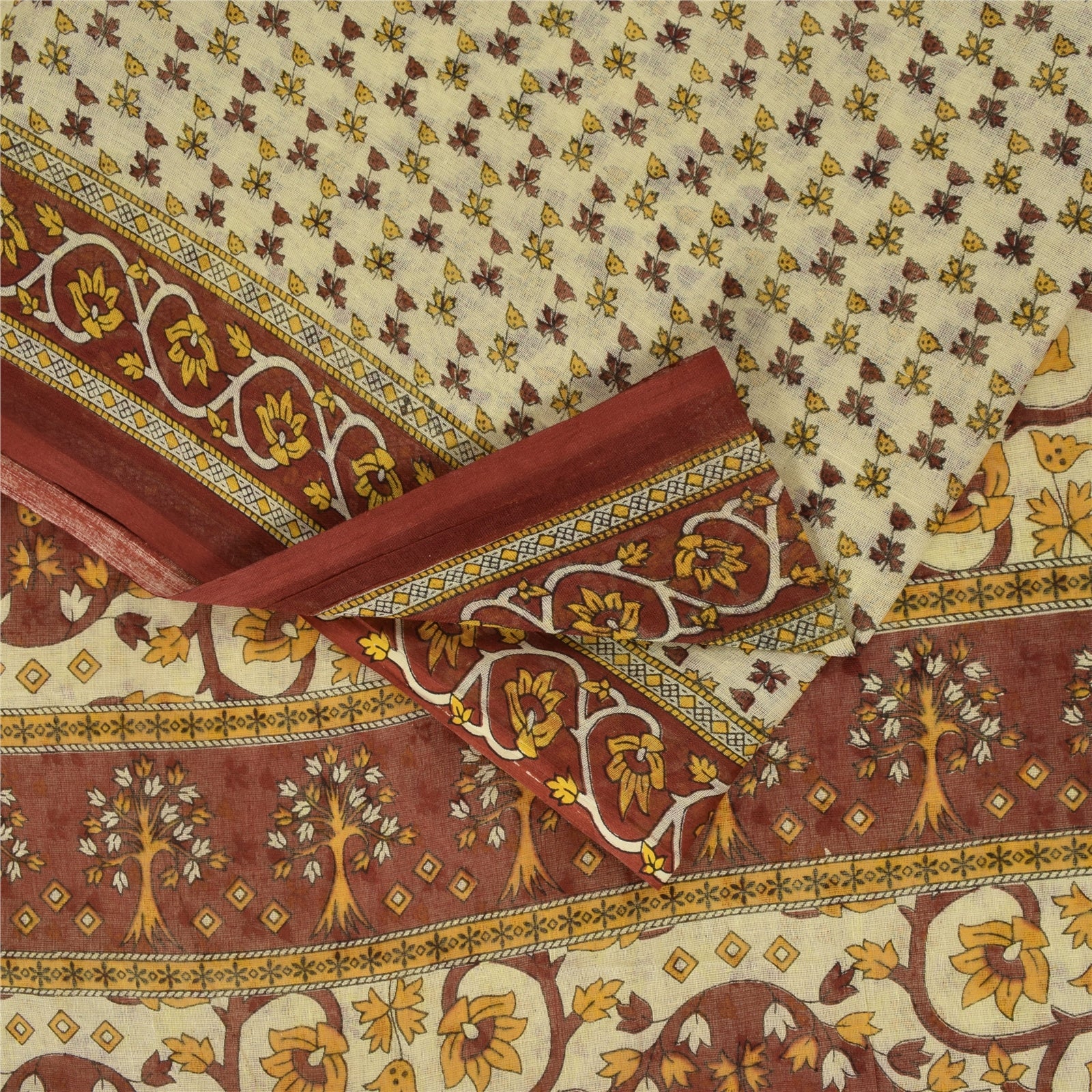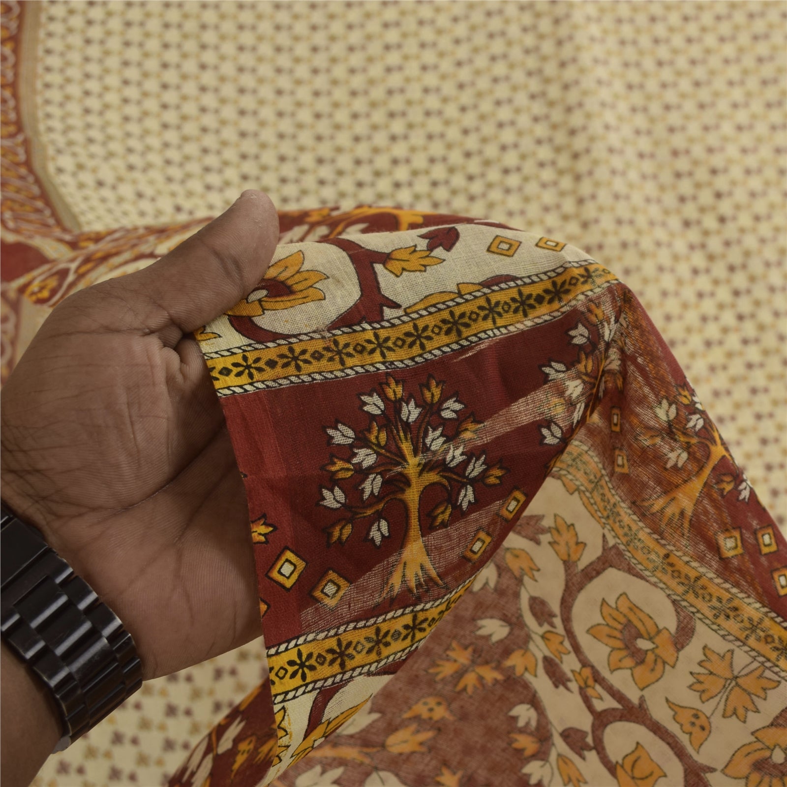 Sanskriti Vintage Sarees Indian Ivory Pure Cotton Printed Sari 5+yd Craft Fabric