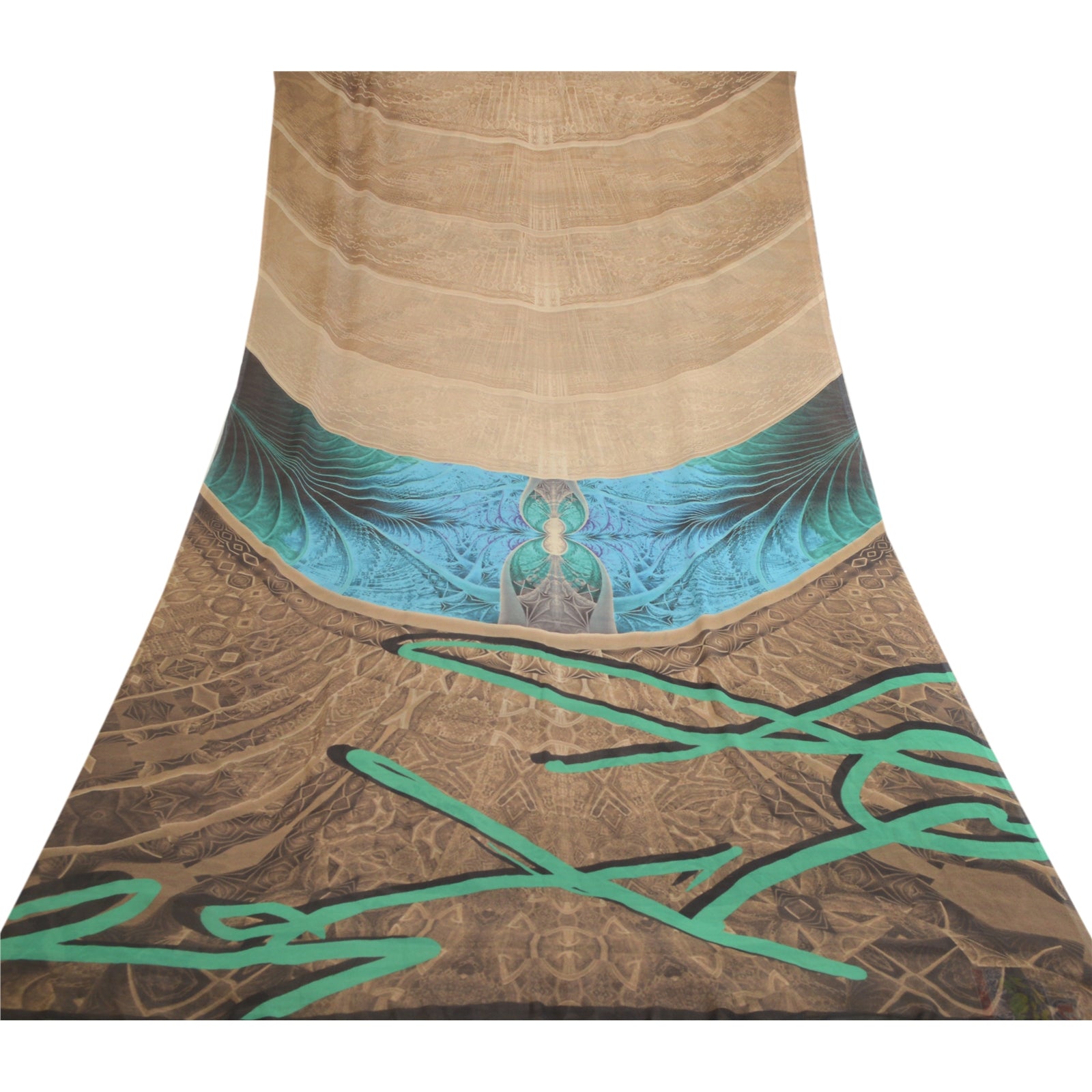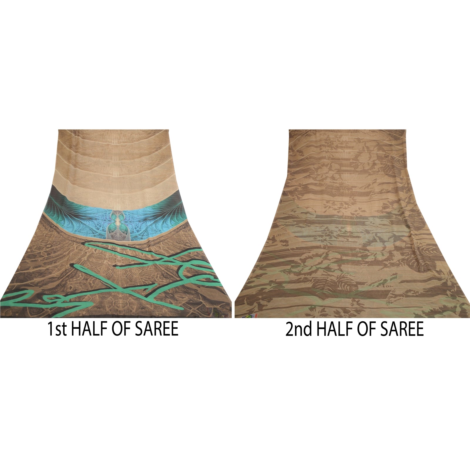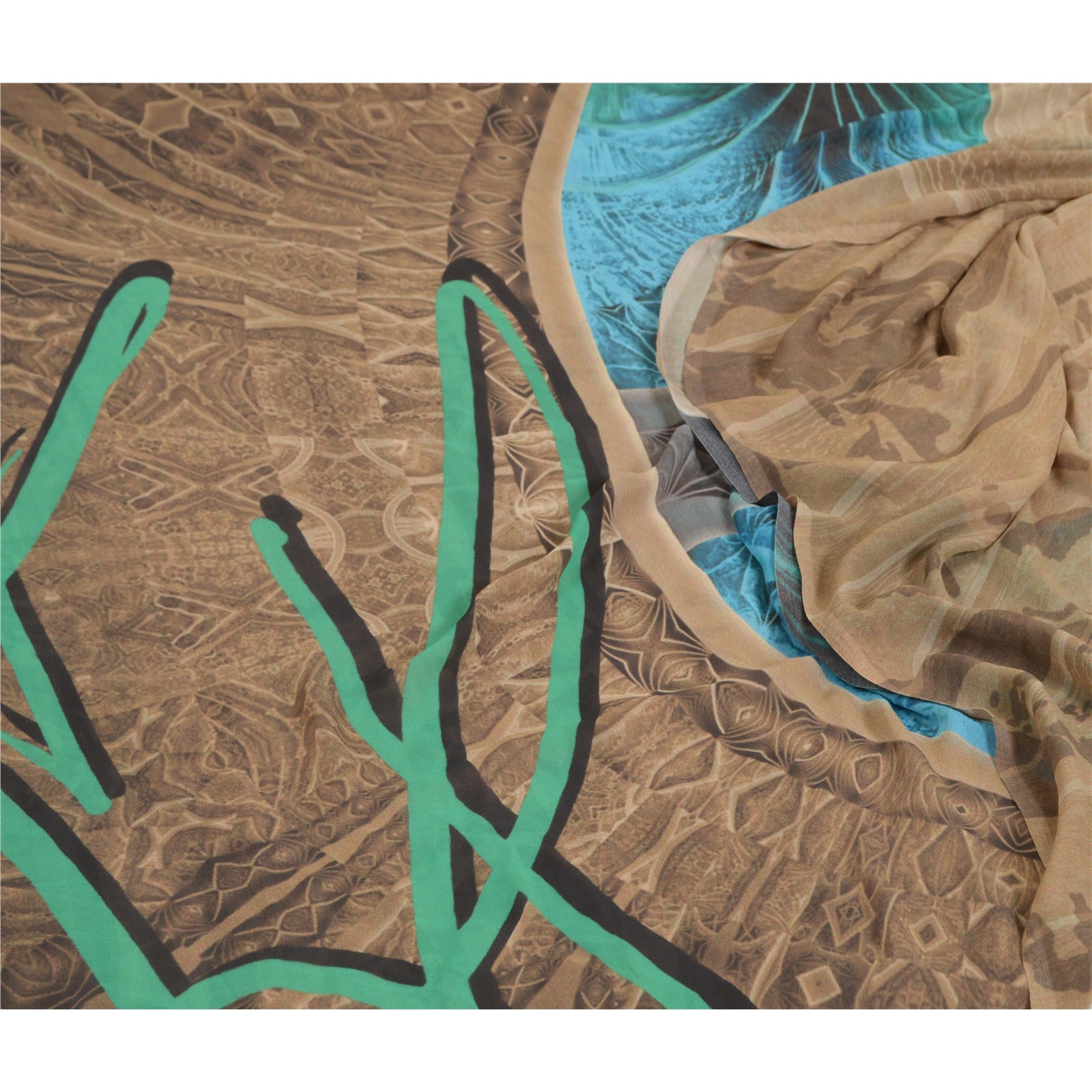 Sanskriti Vintage Sarees Indian Light-Brown Georgette Printed Sari Craft Sustainable Fabric