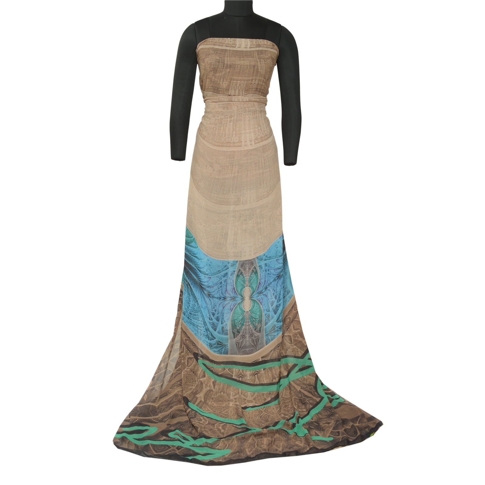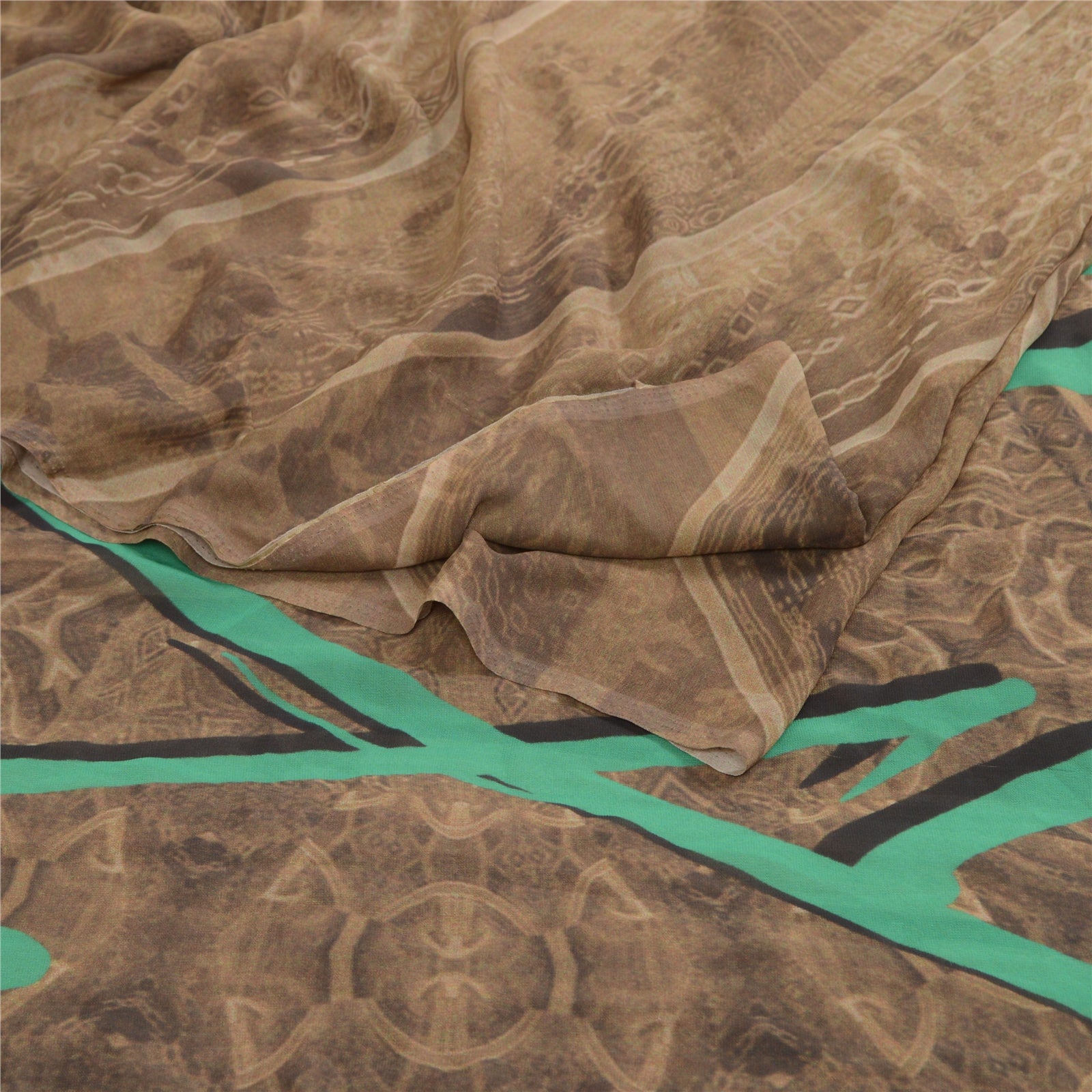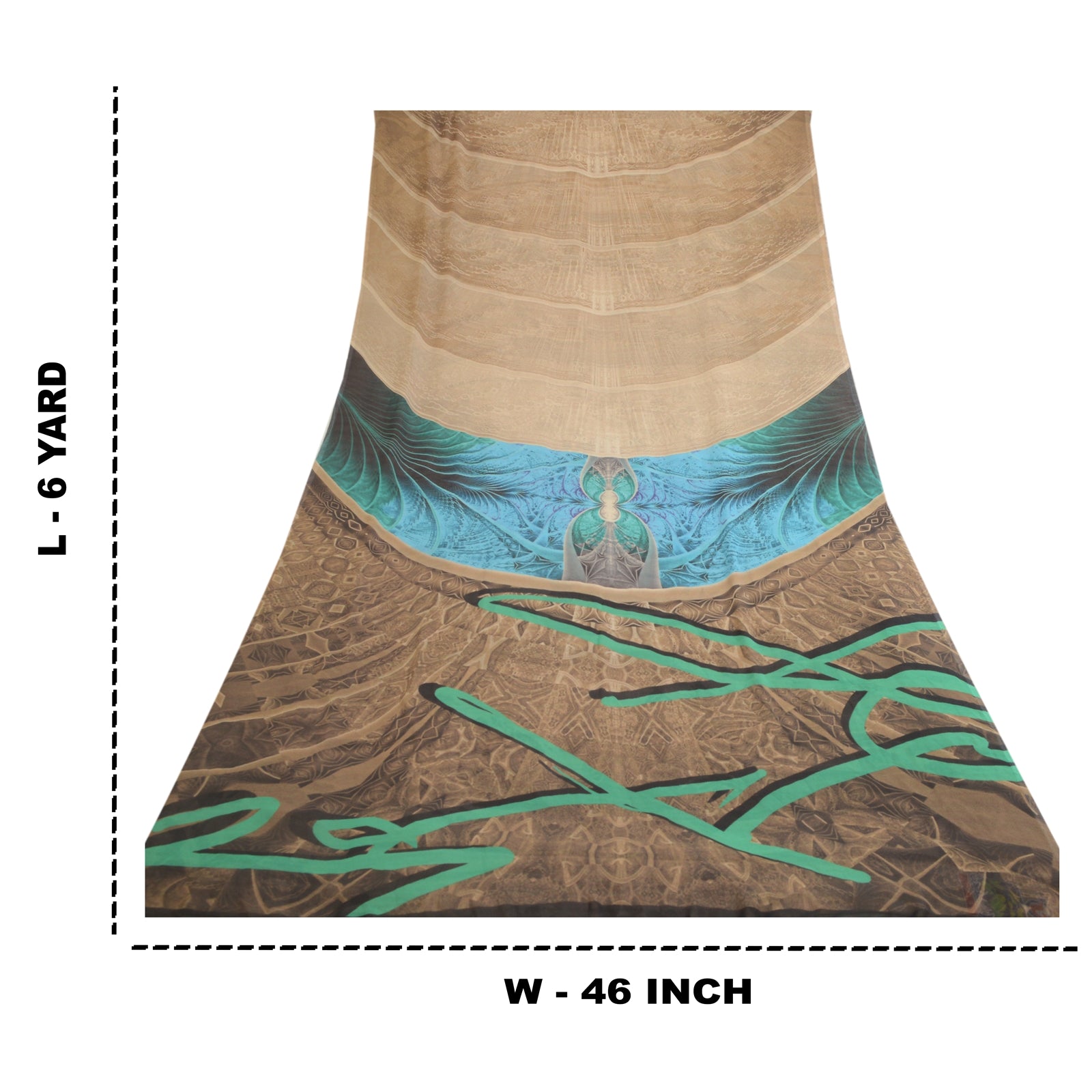 Sanskriti Vintage Sarees Indian Light-Brown Georgette Printed Sari Craft Sustainable Fabric