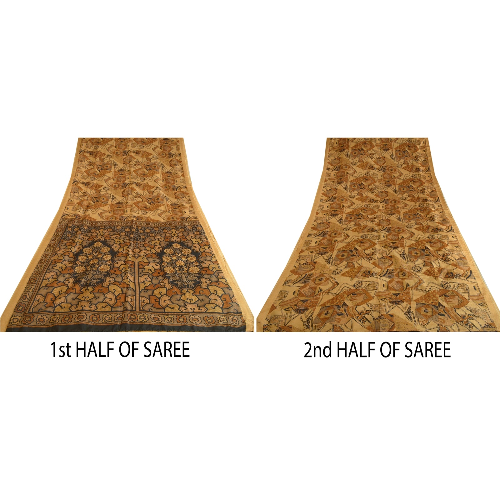 Sanskriti Vintage Sarees Indian Light-Brown Pure Silk Printed Sari Craft Sustainable Fabric