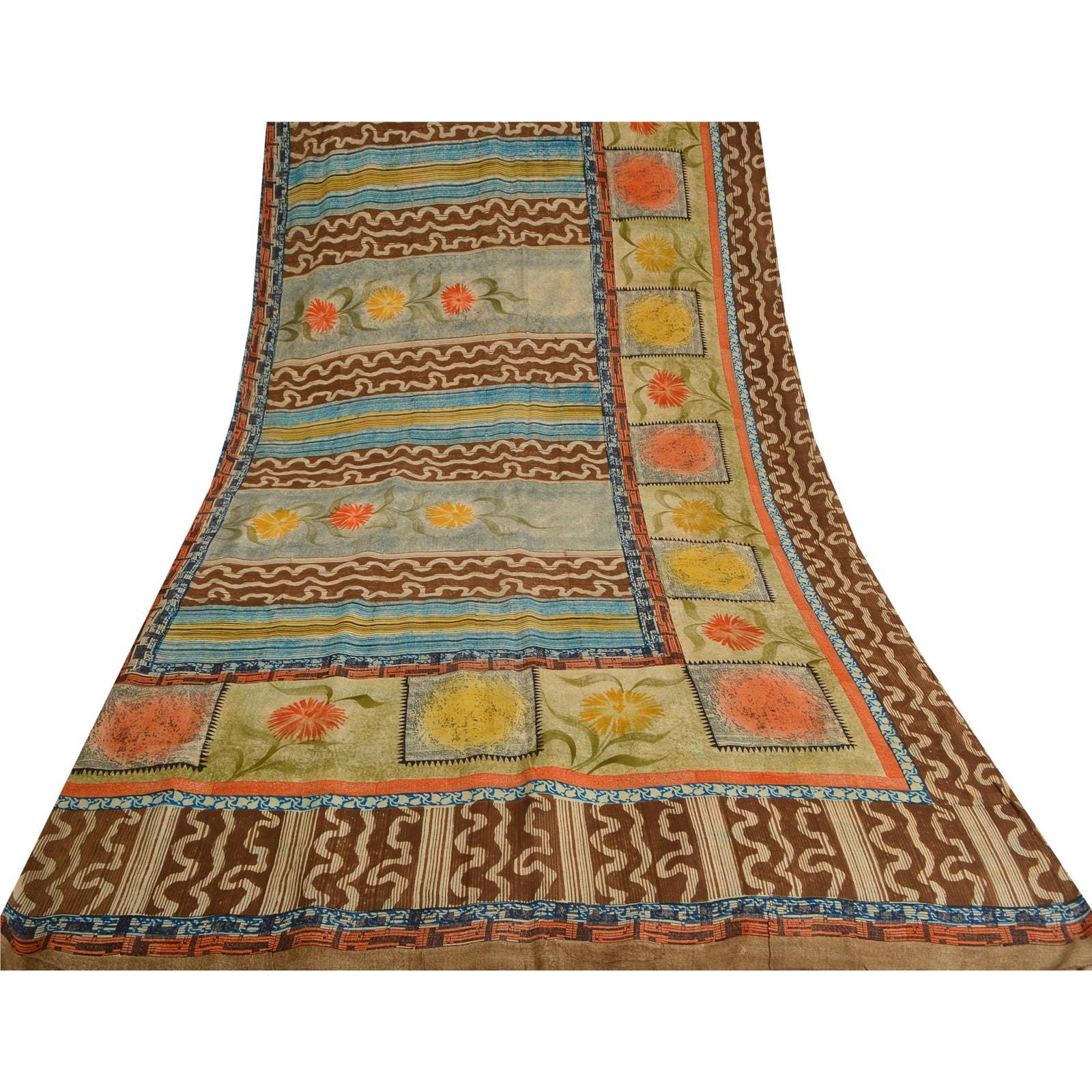 Sanskriti Vintage Sarees Indian Multi Pure Crepe Silk Printed Sari Craft Sustainable Fabric