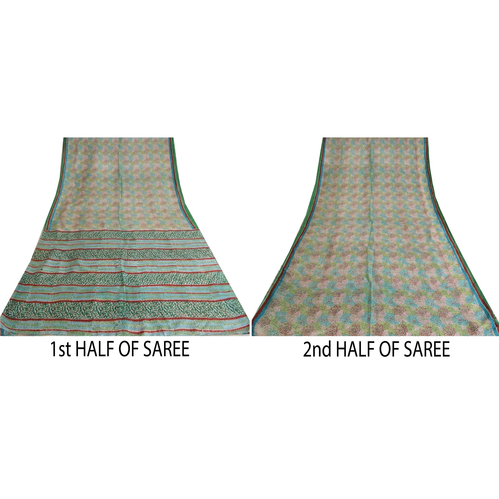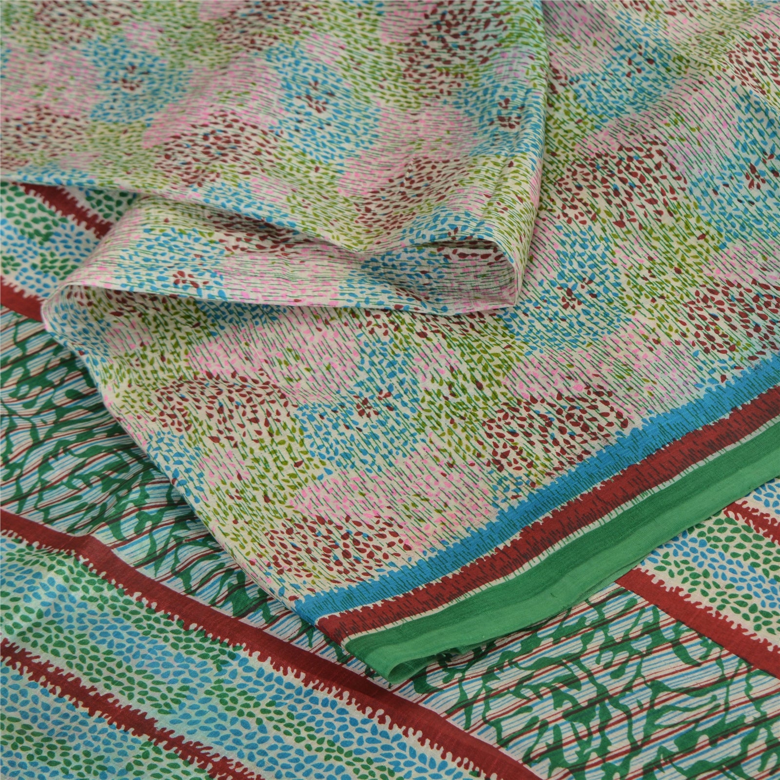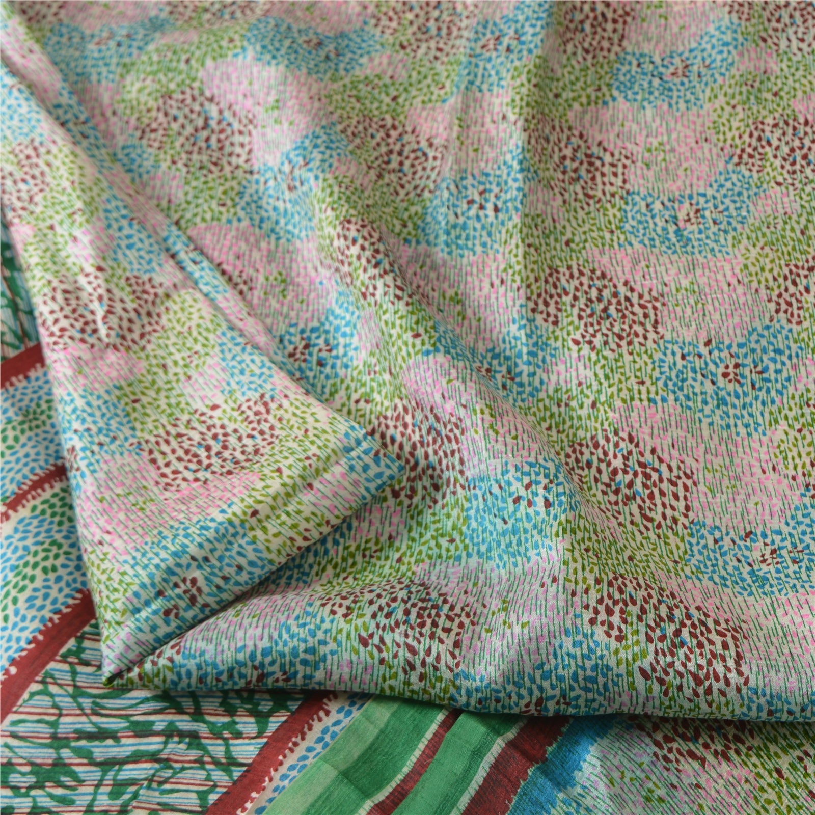 Sanskriti Vintage Sarees Indian Multi Pure Silk Printed Sari 5yd Craft Sustainable Fabric