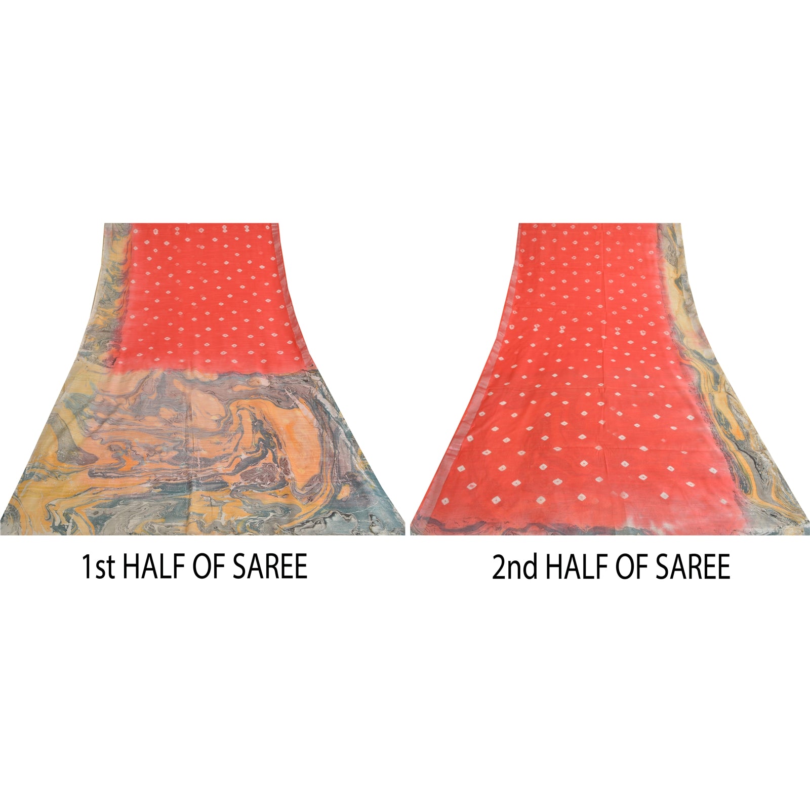 Sanskriti Vintage Sarees Indian Orange Bandhani Work Cotton Sari Craft Sustainable Fabric