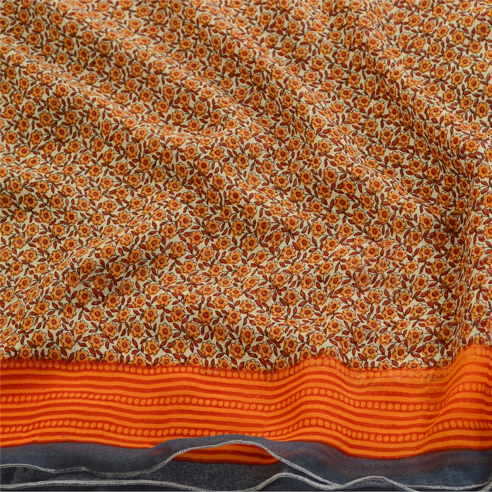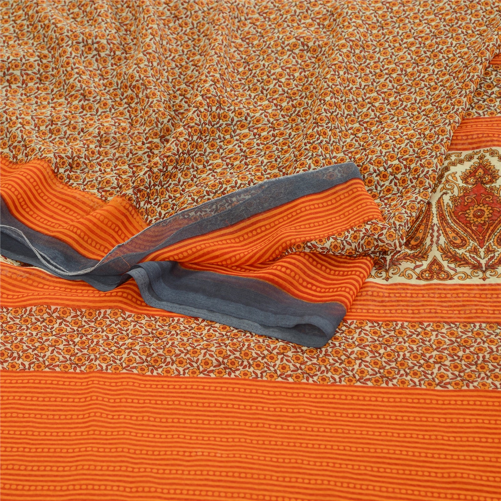 THE ITEM COLOR OR SHADE MAY BE DARKER OR LIGHTER THAN THE PICTURE.' Beautiful orange colored georgette printed saree. Pallu & Border has printed floral design. Similar design in center part of saree. What is special about this saree? Brilliant design on soft Sustainable Fabric is really enhancing the beauty of the saree.This unique vintage saree can be used for various crafting ideas even if you don't want to use it as a sari. Design a dress, use it as a as window dressing, upholstery, sarongs, throw, dress making and table linen much more. Let your creative juices flow and use this decorated Sustainable Fabric in multiple fashion. International buyers please note: Import duties, taxes, and charges are not included in the item price or postage cost. These charges are the buyer's responsibility. Please check with your country's customs office to determine what these additional costs will be prior to bidding or buying.Buyer will pay custom duty/tax. It is calculated and charged differently by every country. As a seller I do not have any control over it.VAT or sales tax is calculated by the platform at the time of checkout. Customs charge is payable at the time of delivery.