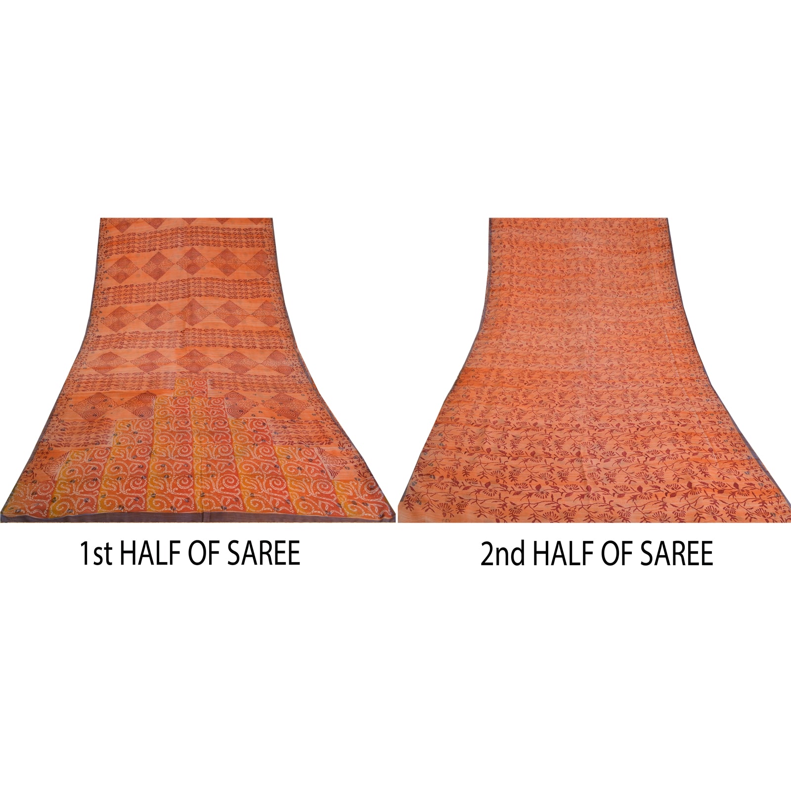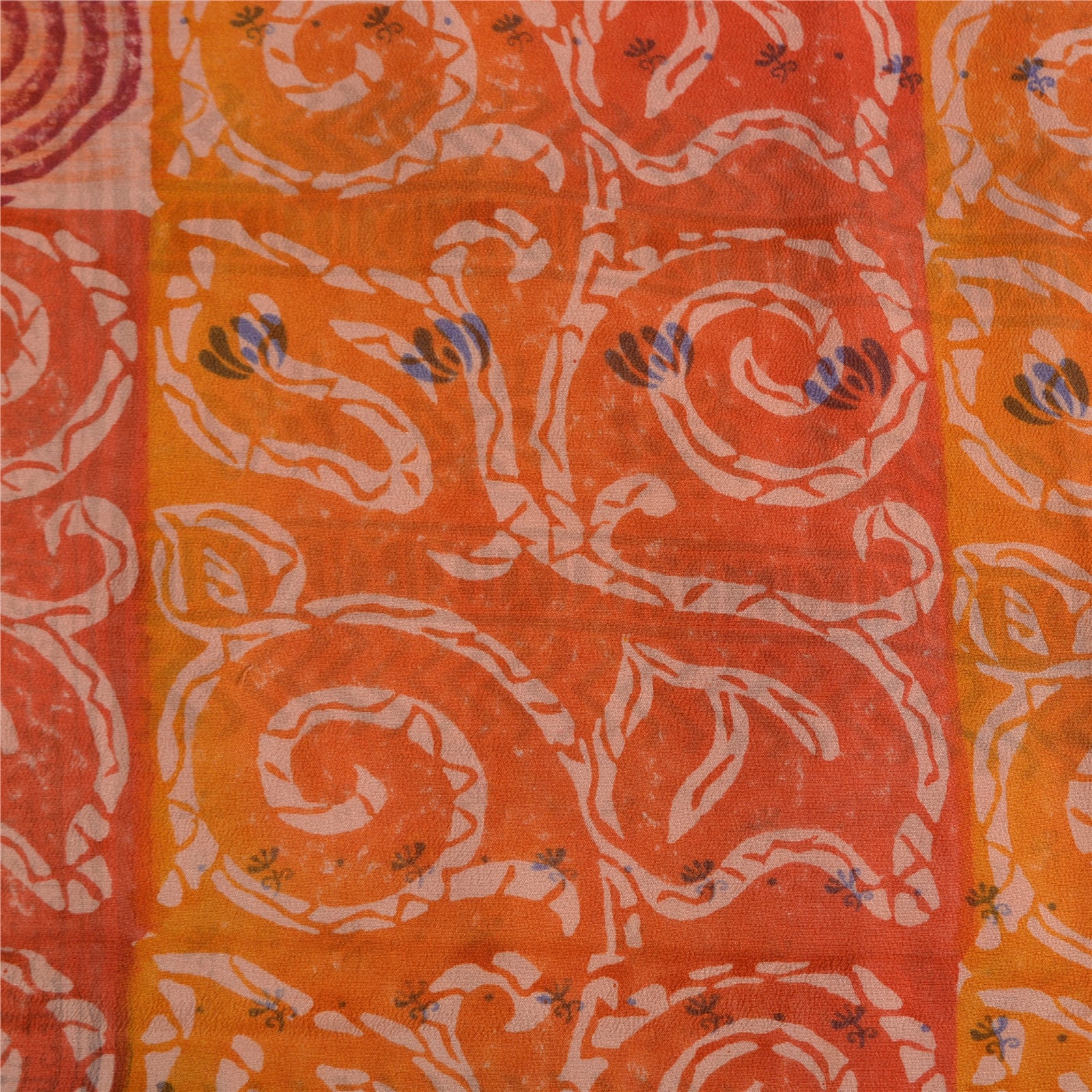 Sanskriti Vintage Sarees Indian Orange Pure Crepe Silk Printed Sari Craft Sustainable Fabric