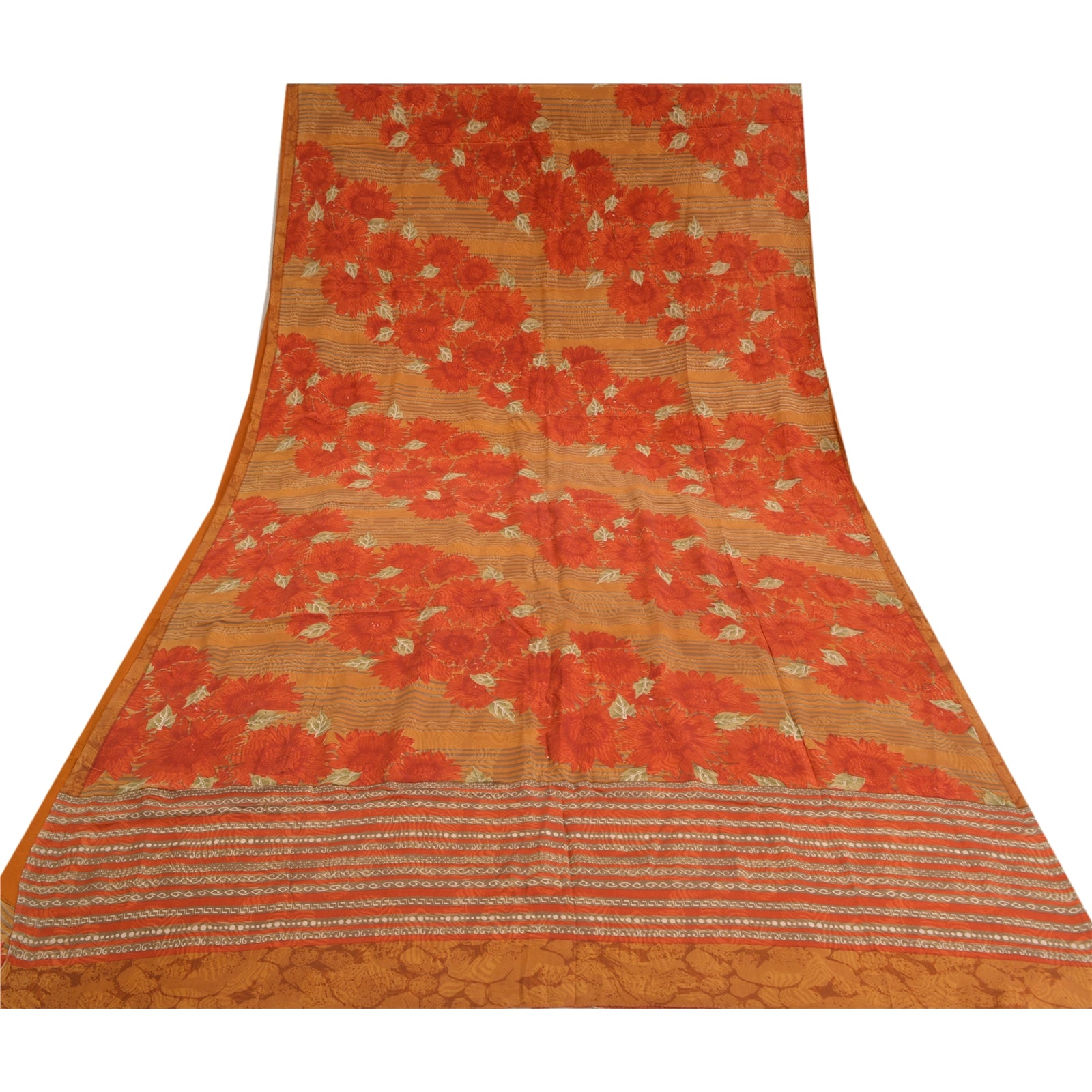 THE ITEM COLOR OR SHADE MAY BE DARKER OR LIGHTER THAN THE PICTURE.' Beautiful orange & brown colored pure crepe silk printed saree. Pallu & Border has printed floral design. Floral design in center part of saree. What is special about this saree? Fabulous design is really enhancing the beauty of the saree. This unique vintage saree can be used for various crafting ideas even if you don't want to use it as a sari. Design a dress, use it as window,dressing, upholstery, sarongs, throw, dress making and table linen much more. Let your creative juices flow and use this decorated Sustainable Fabric in multiple fashion. International buyers please note: Import duties, taxes, and charges are not included in the item price or postage cost. These charges are the buyer's responsibility. Please check with your country's customs office to determine what these additional costs will be prior to bidding or buying.Buyer will pay custom duty/tax. It is calculated and charged differently by every country. As a seller I do not have any control over it.VAT or sales tax is calculated by the platform at the time of checkout. Customs charge is payable at the time of delivery.