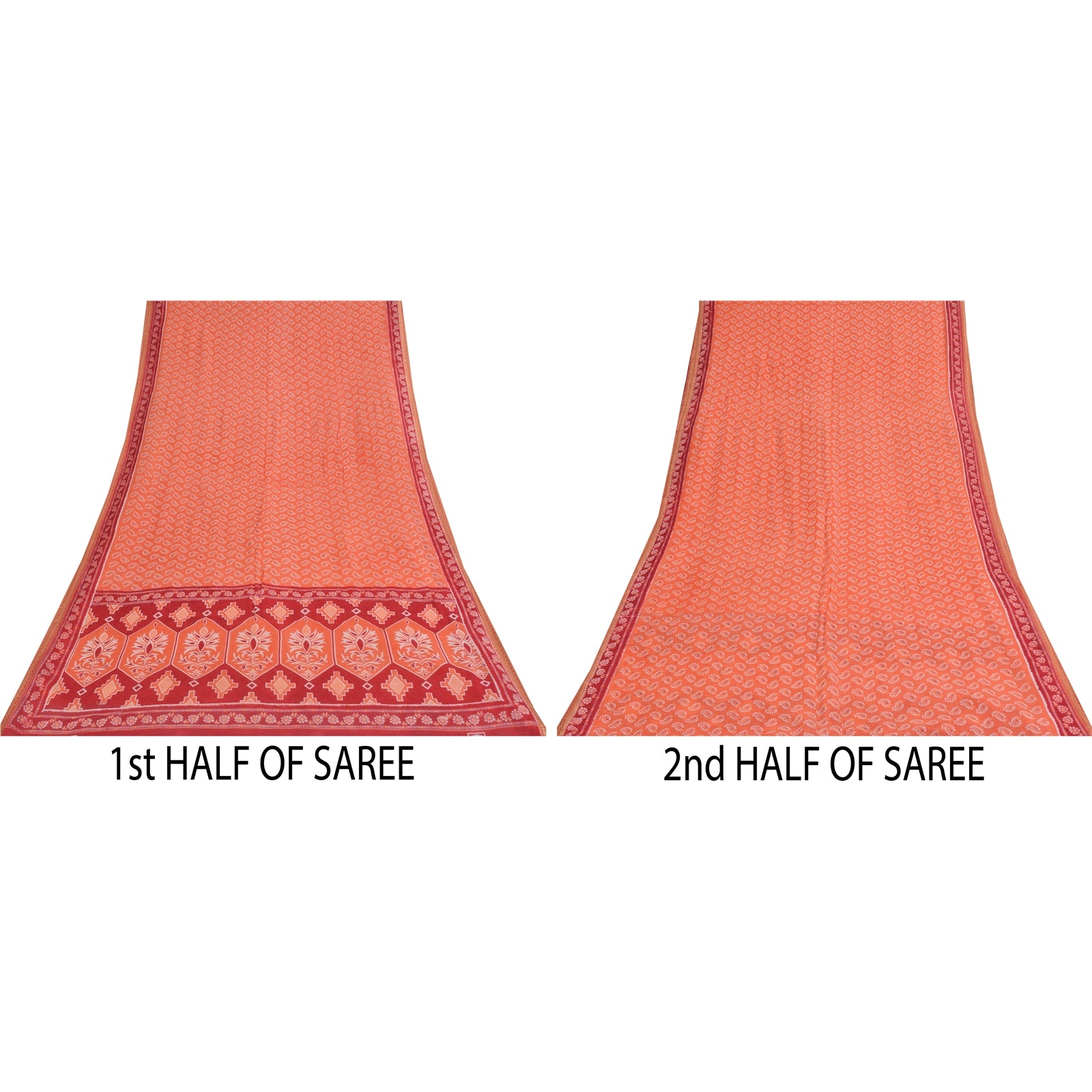 THE ITEM COLOR OR SHADE MAY BE DARKER OR LIGHTER THAN THE PICTURE. Attractive peach colored pure cotton printed sari. Pallu & Border has printed floral, geometric design & golden woven work. Paisley design in center part of saree.. This unique vintage saree can be used for various crafting ideas even if you don't want to use it as a sari. Design a dress, use it as a as window dressing, upholstery, sarongs, throw, dress making and table linen much more. Let your creative juices flow and use this decorated fabric in multiple fashion. Shipping Note: 'International buyers please note: Import duties, taxes, and charges are not included in the item price or postage cost. These charges are the buyer's responsibility. Please check with your country's customs office to determine what these additional costs will be prior to bidding or buying. Buyer will pay custom duty/tax. It is calculated and charged differently by every country. As a seller I do not have any control over it. VAT or sales tax is calculated by the platform at the time of checkout. Customs charge is payable at the time of delivery.' PCS-6845
