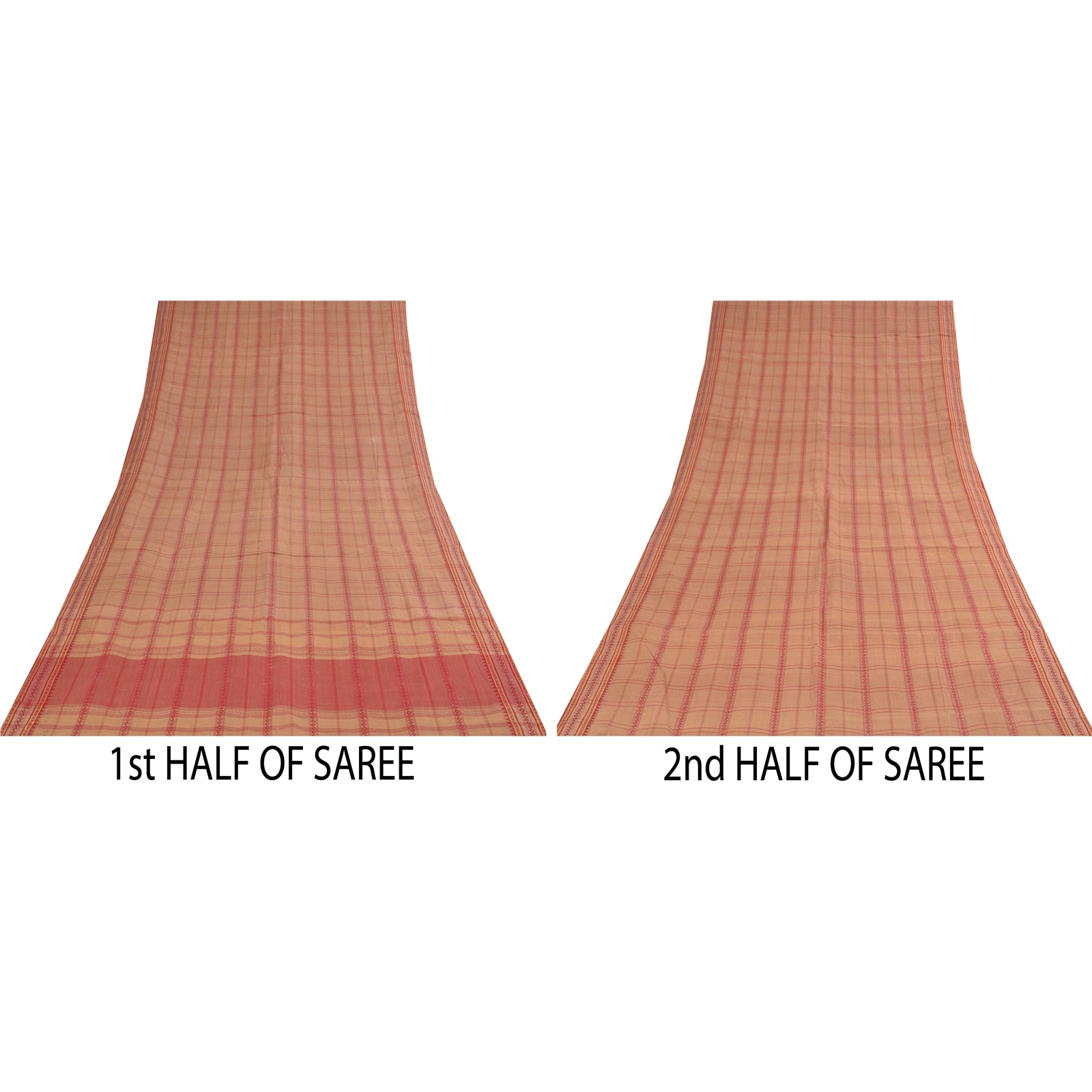 THE ITEM COLOR OR SHADE MAY BE DARKER OR LIGHTER THAN THE PICTURE. Attractive peach colored pure cotton woven sari. Pallu & Border has geometric design with red thread woven work. Similar work in center part of saree.. This unique vintage saree can be used for various crafting ideas even if you don't want to use it as a sari. Design a dress, use it as a as window dressing, upholstery, sarongs, throw, dress making and table linen much more. Let your creative juices flow and use this decorated fabric in multiple fashion. Shipping Note: 'International buyers please note: Import duties, taxes, and charges are not included in the item price or postage cost. These charges are the buyer's responsibility. Please check with your country's customs office to determine what these additional costs will be prior to bidding or buying. Buyer will pay custom duty/tax. It is calculated and charged differently by every country. As a seller I do not have any control over it. VAT or sales tax is calculated by the platform at the time of checkout. Customs charge is payable at the time of delivery.' PCS-6850