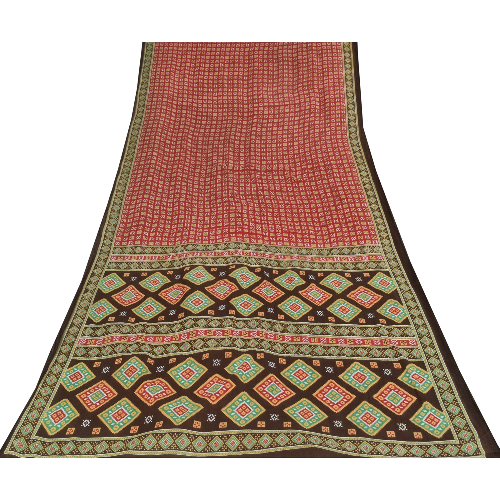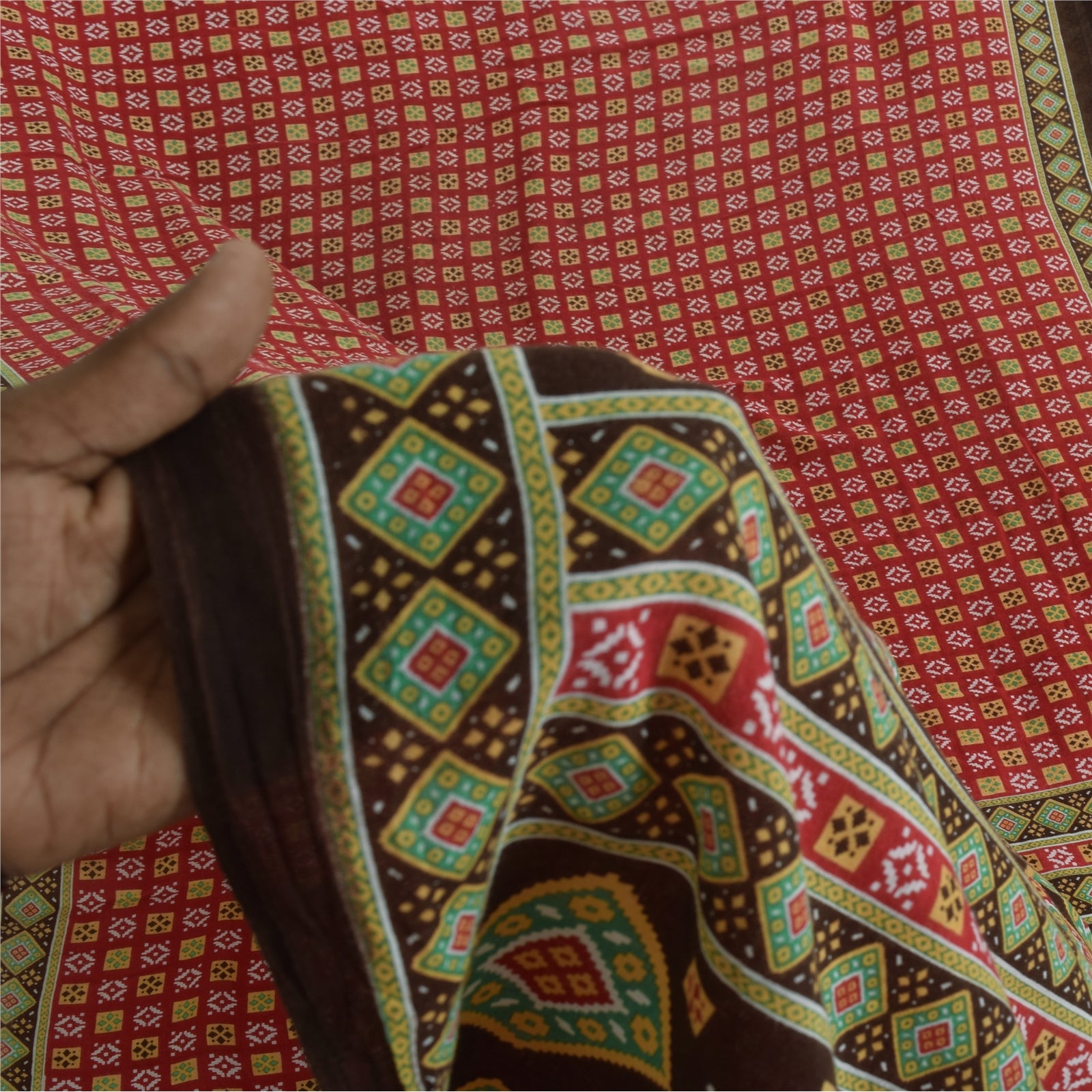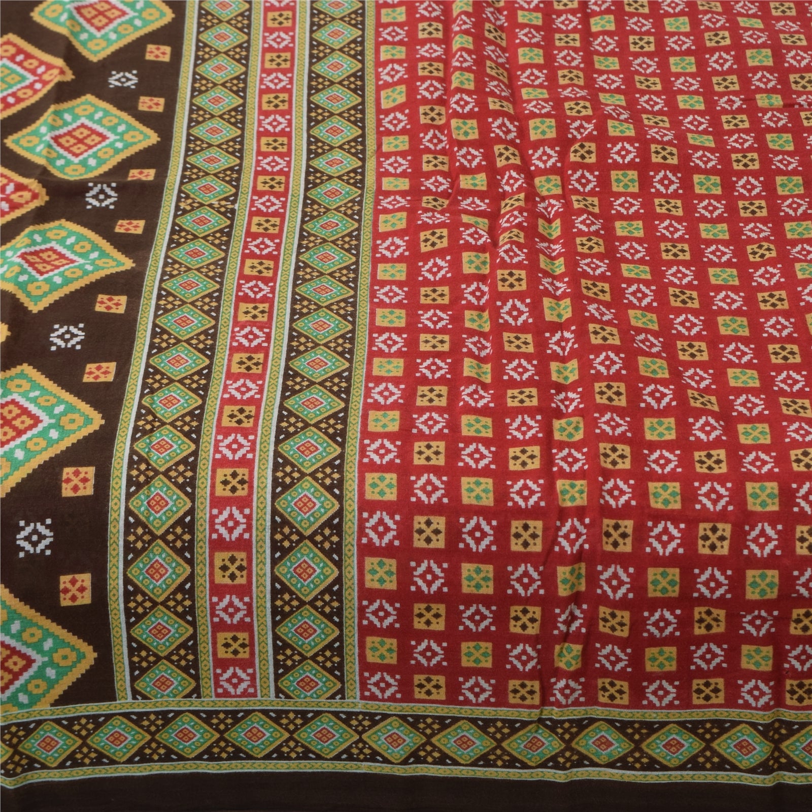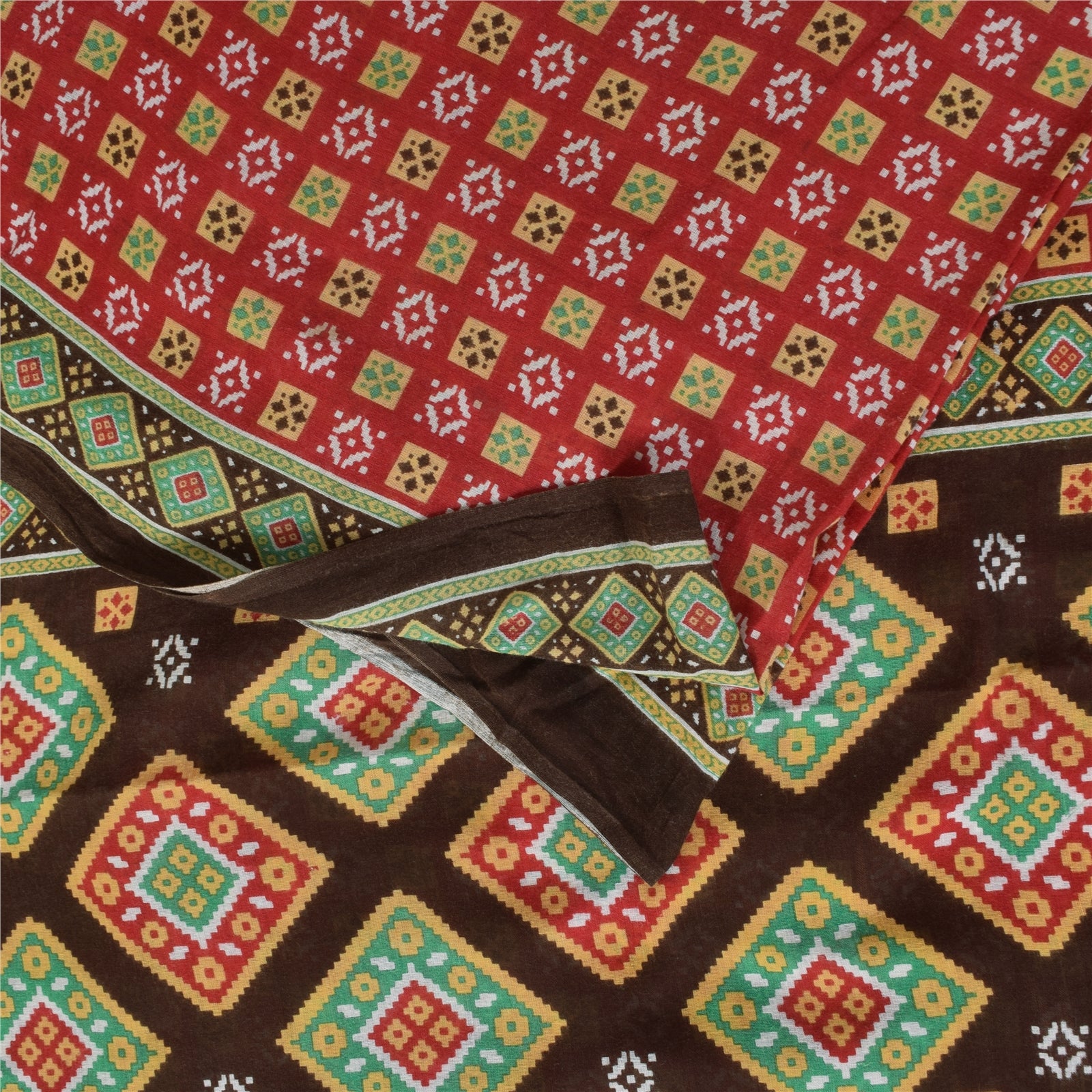 THE ITEM COLOR OR SHADE MAY BE DARKER OR LIGHTER THAN THE PICTURE. Attractive red colored pure cotton printed sari. Pallu & Border has printed geometric design. Similar design in center part of saree.. This unique vintage saree can be used for various crafting ideas even if you don't want to use it as a sari. Design a dress, use it as a as window dressing, upholstery, sarongs, throw, dress making and table linen much more. Let your creative juices flow and use this decorated Sustainable Fabric in multiple fashion. Shipping Note: 'International buyers please note: Import duties, taxes, and charges are not included in the item price or postage cost. These charges are the buyer's responsibility. Please check with your country's customs office to determine what these additional costs will be prior to bidding or buying. Buyer will pay custom duty/tax. It is calculated and charged differently by every country. As a seller I do not have any control over it. VAT or sales tax is calculated by the platform at the time of checkout. Customs charge is payable at the time of delivery.' PCS-6717