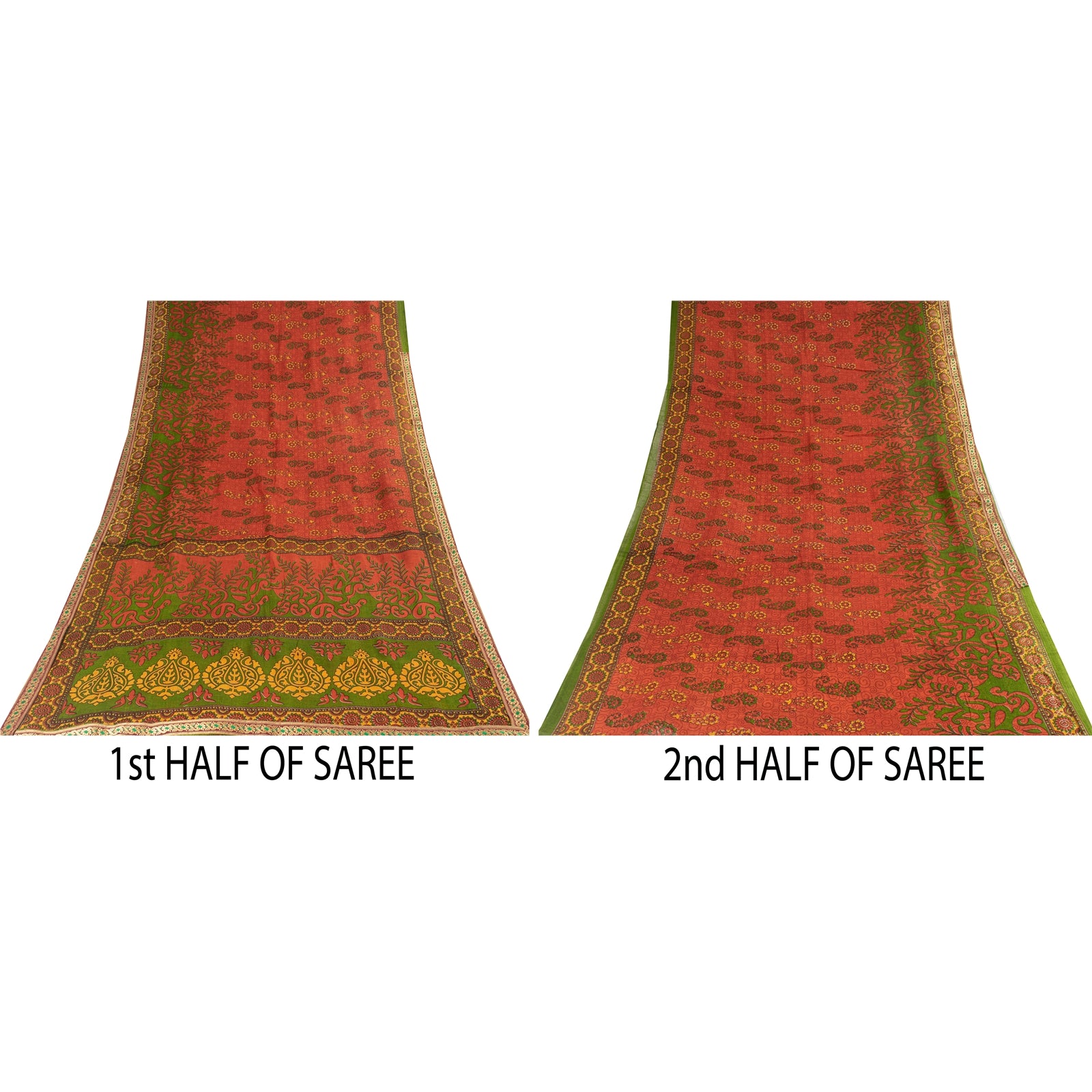 Sanskriti Vintage Sarees Indian Red Pure Cotton Printed Sari 5+yd Craft Fabric