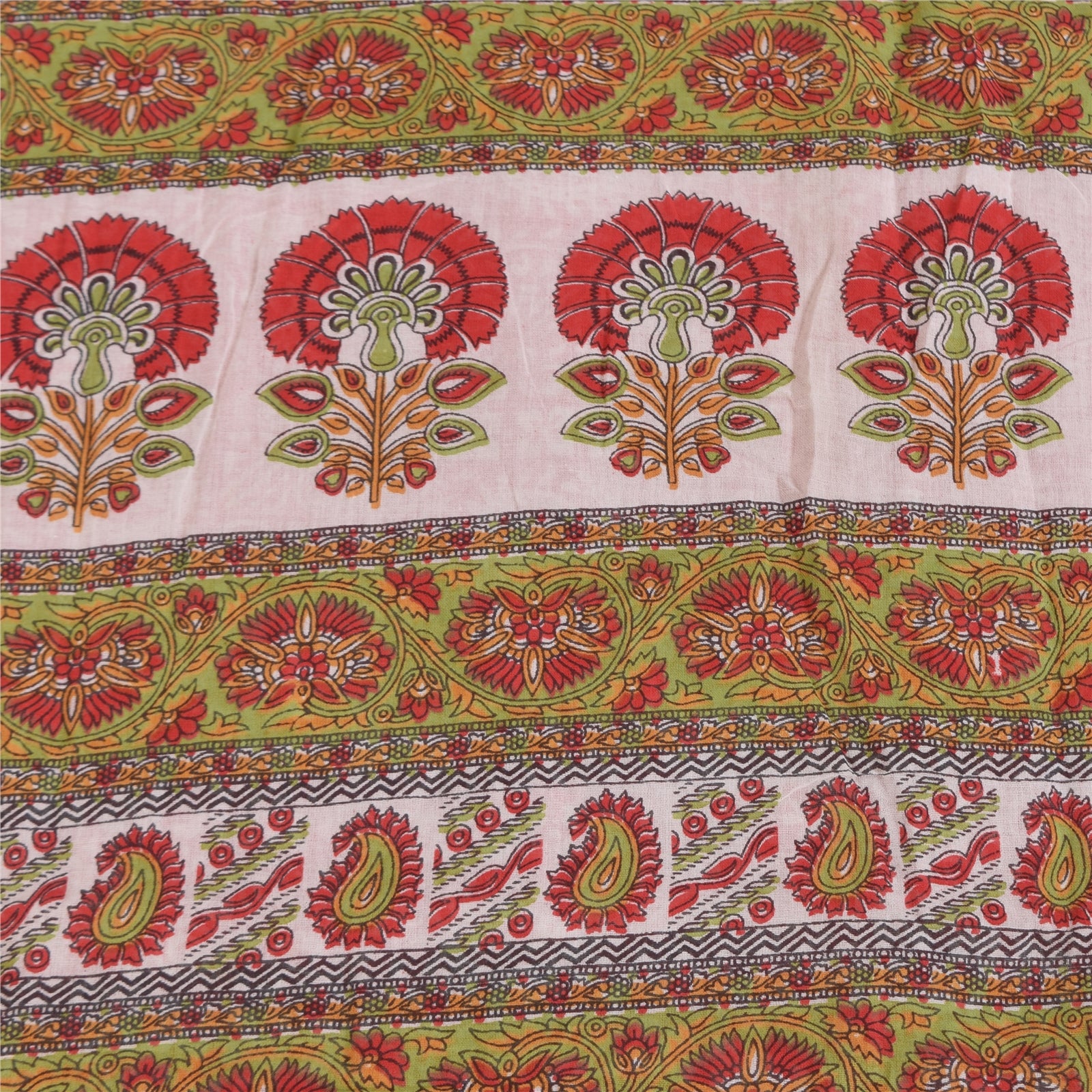 Sanskriti Vintage Sarees Indian Red Pure Cotton Printed Sari 5+yd Craft Sustainable Fabric