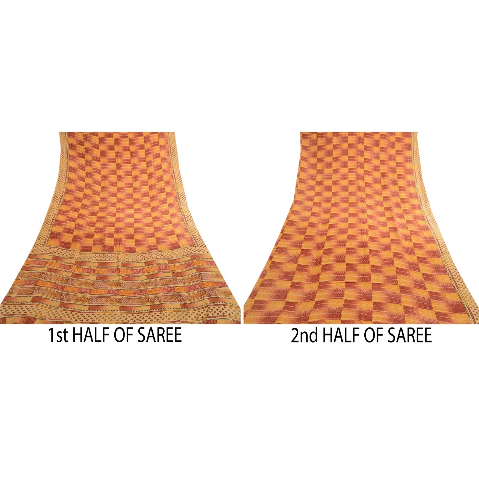 Sanskriti Vintage Sarees Indian Red Pure Crepe Silk Printed Sari Craft Sustainable Fabric