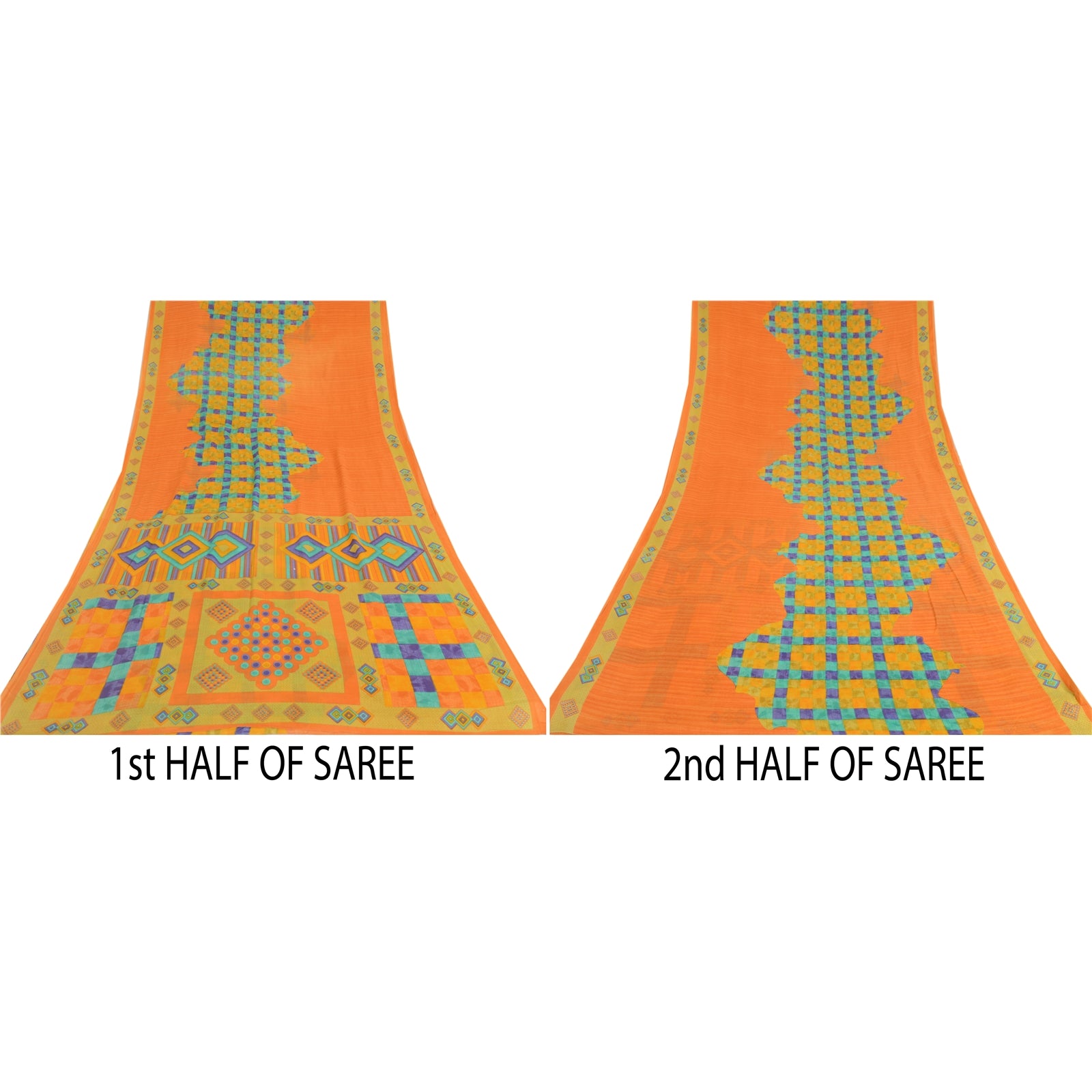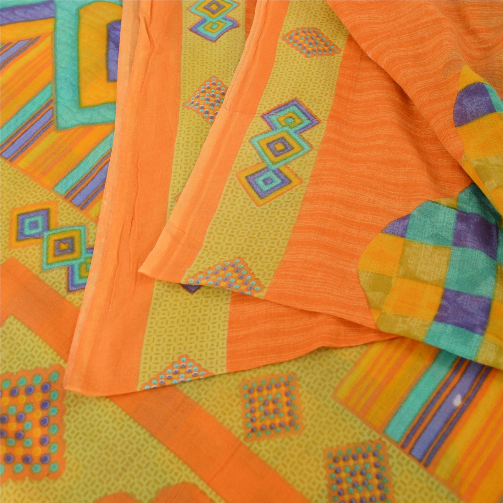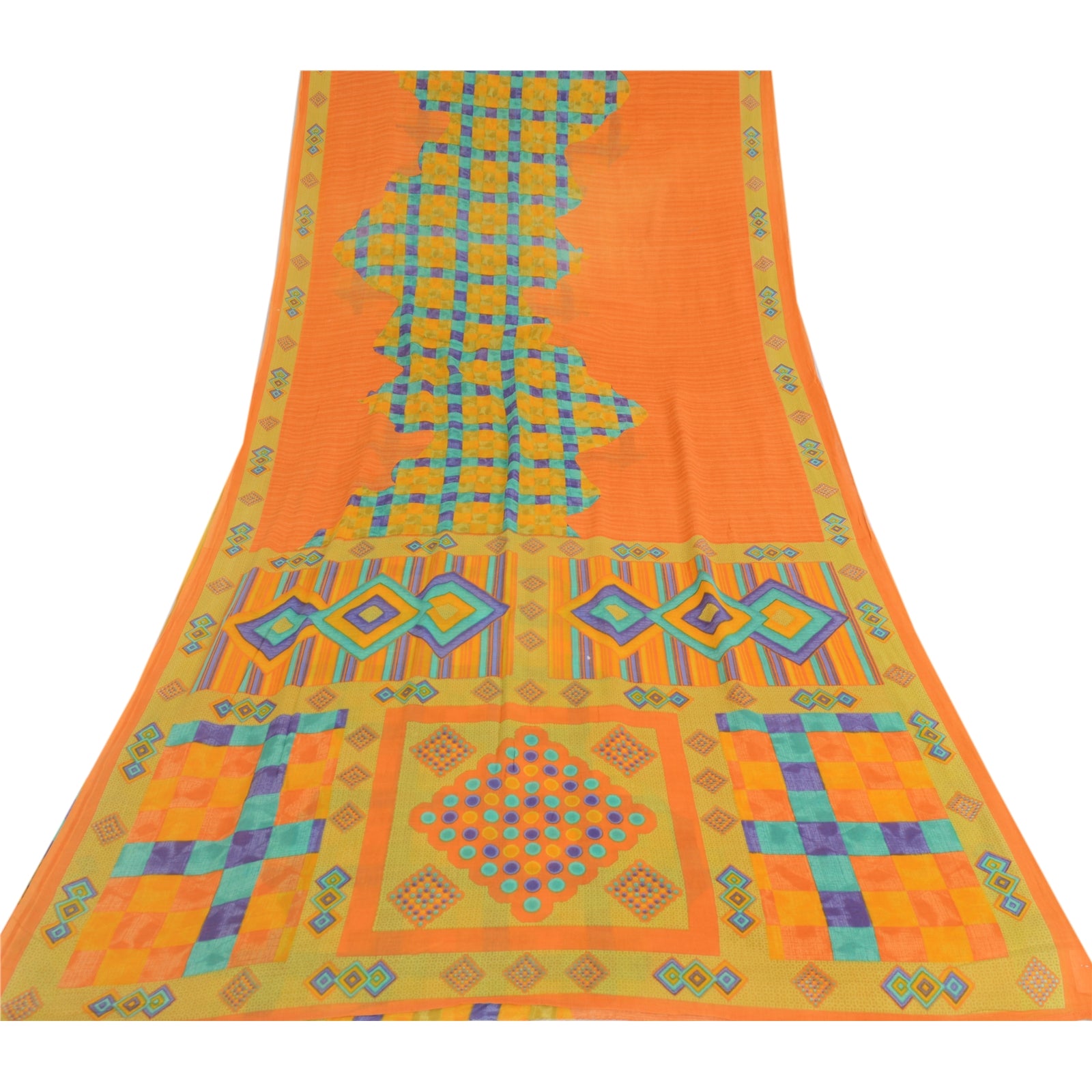 THE ITEM COLOR OR SHADE MAY BE DARKER OR LIGHTER THAN THE PICTURE. Attractive saffron colored pure cotton printed sari. Pallu & Border has printed geometric design. Similar design in center part of saree.. This unique vintage saree can be used for various crafting ideas even if you don't want to use it as a sari. Design a dress, use it as a as window dressing, upholstery, sarongs, throw, dress making and table linen much more. Let your creative juices flow and use this decorated Sustainable Fabric in multiple fashion. Shipping Note: 'International buyers please note: Import duties, taxes, and charges are not included in the item price or postage cost. These charges are the buyer's responsibility. Please check with your country's customs office to determine what these additional costs will be prior to bidding or buying. Buyer will pay custom duty/tax. It is calculated and charged differently by every country. As a seller I do not have any control over it. VAT or sales tax is calculated by the platform at the time of checkout. Customs charge is payable at the time of delivery.'