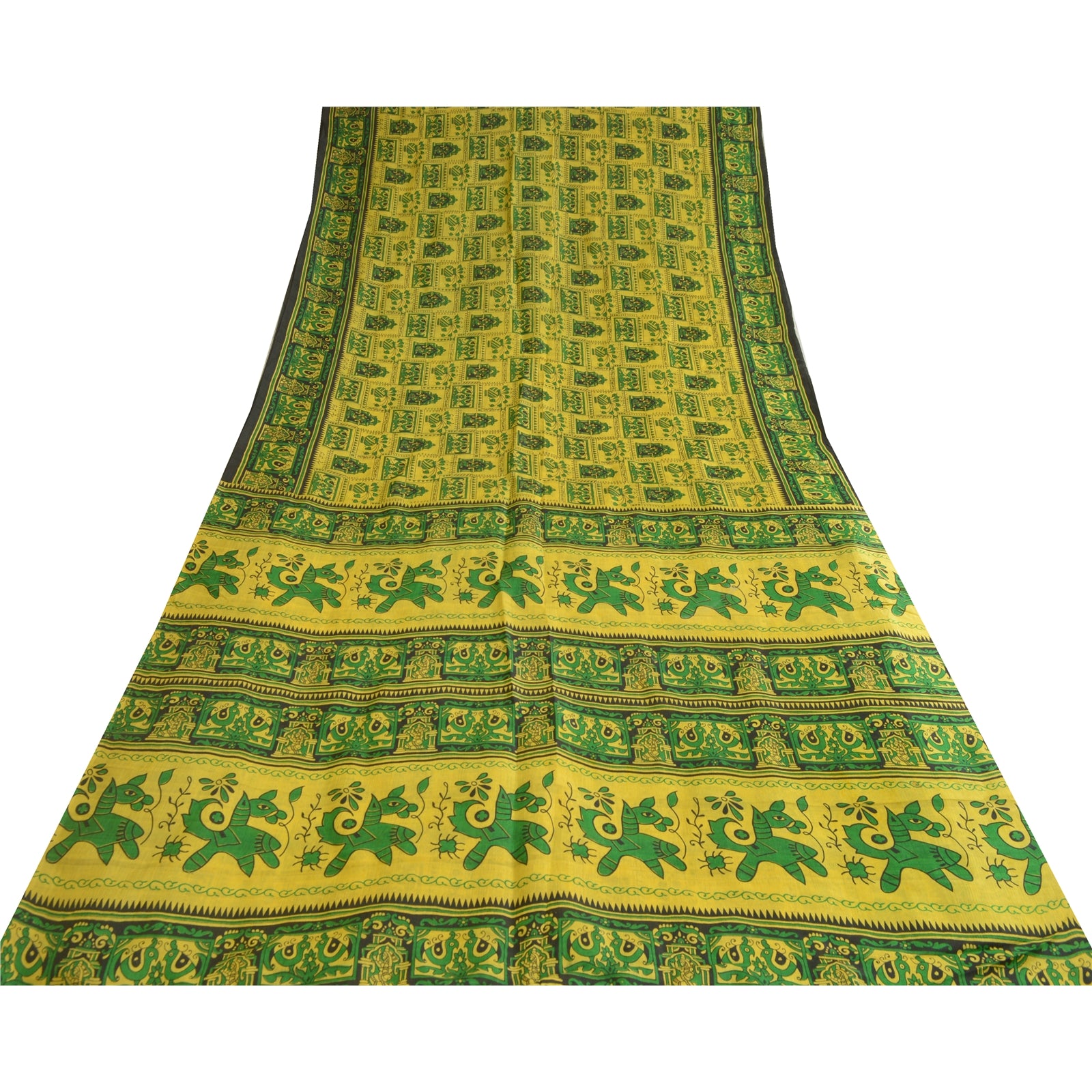 THE ITEM COLOR OR SHADE MAY BE DARKER OR LIGHTER THAN THE PICTURE.' Beautiful yellow & green colored pure silk printed saree. Pallu & border has printed floral, bird, animal & women design. Similar design in center part of saree. What is special about this saree? Fabulous design is really enhancing the beauty of the saree.This unique vintage saree can be used for various crafting ideas even if you don't want to use it as a sari. Design a dress, use it as window, dressing, upholstery, sarongs, throw, dress making and table linen much more. Let your creative juices flow and use this decorated Sustainable Fabric in multiple fashion. International buyers please note: Import duties, taxes, and charges are not included in the item price or postage cost. These charges are the buyer's responsibility. Please check with your country's customs office to determine what these additional costs will be prior to bidding or buying. Buyer will pay custom duty/tax. It is calculated and charged differently by every country. As a seller I do not have any control over it. VAT or sales tax is calculated by the platform at the time of checkout. Customs charge is payable at the time of delivery.'