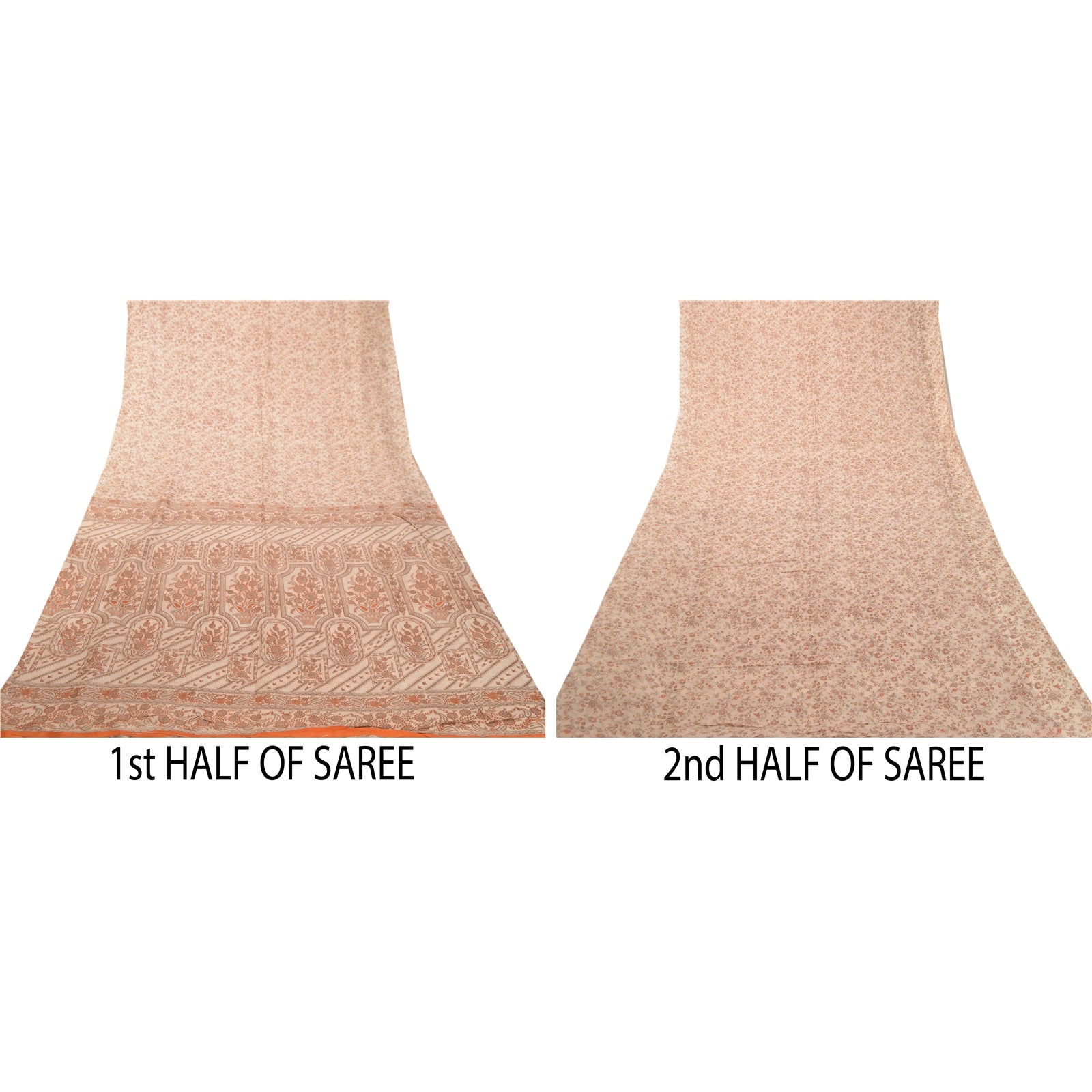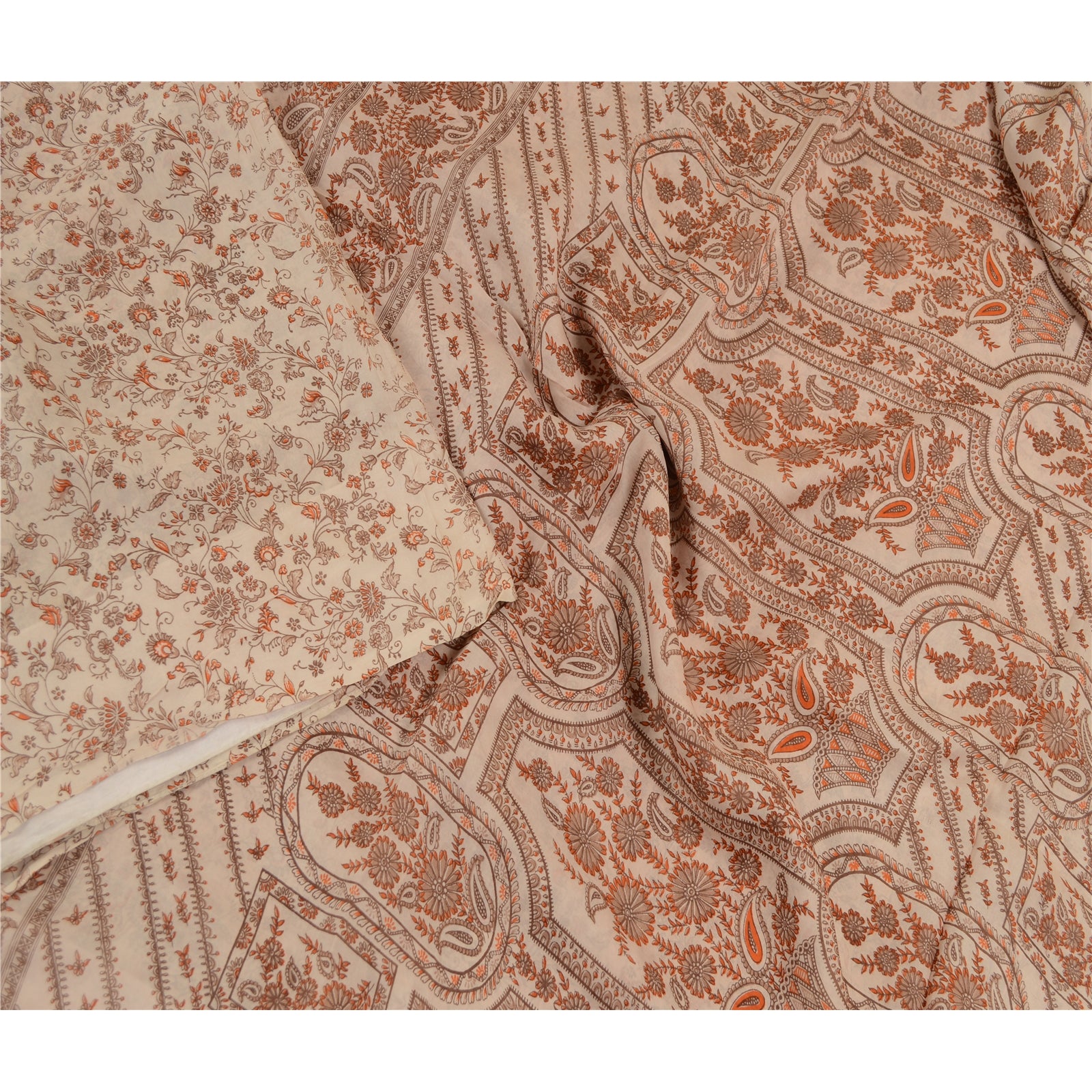 Sanskriti Vintage Sarees Ivory 100% Pure Silk Printed Sari Floral Craft Sustainable Fabric