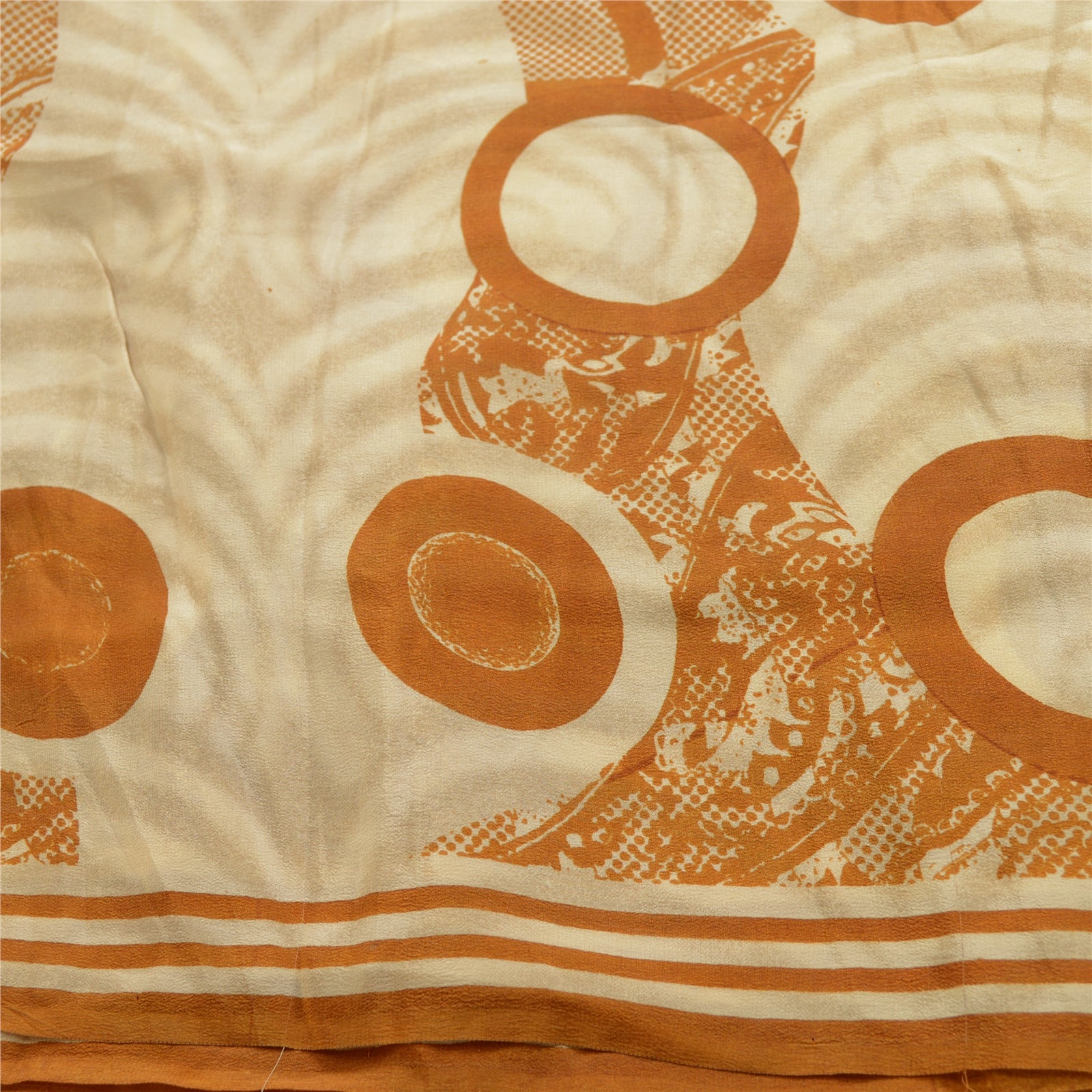 Sanskriti Vintage Sarees Ivory Indian Pure Crepe Silk Printed Sari Craft Sustainable Fabric