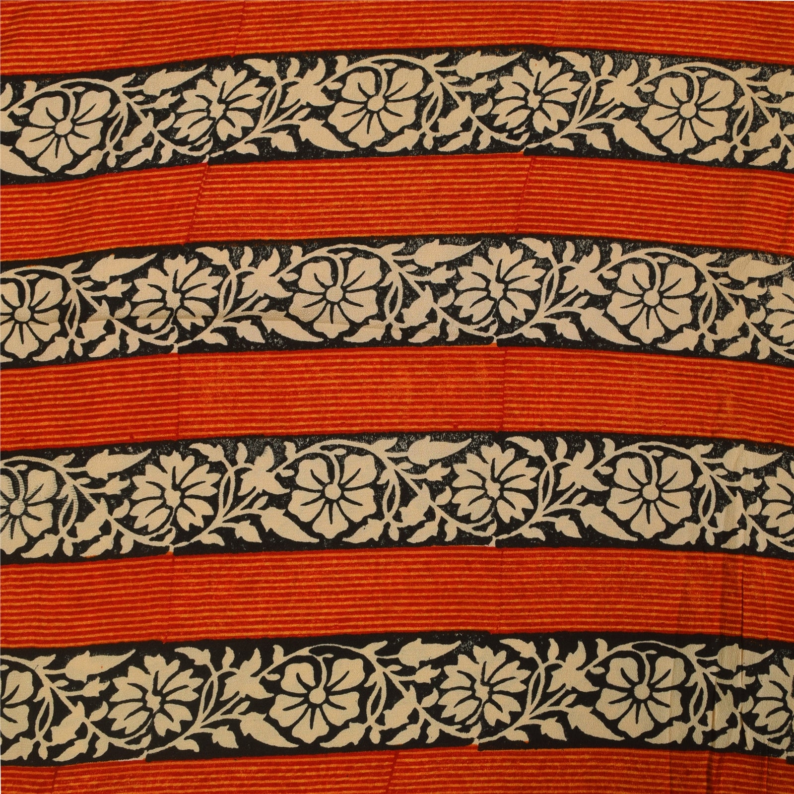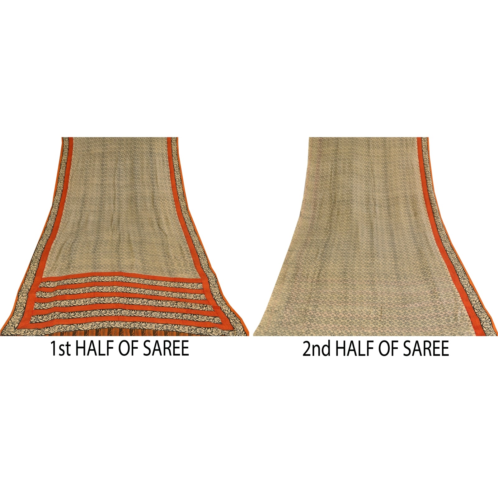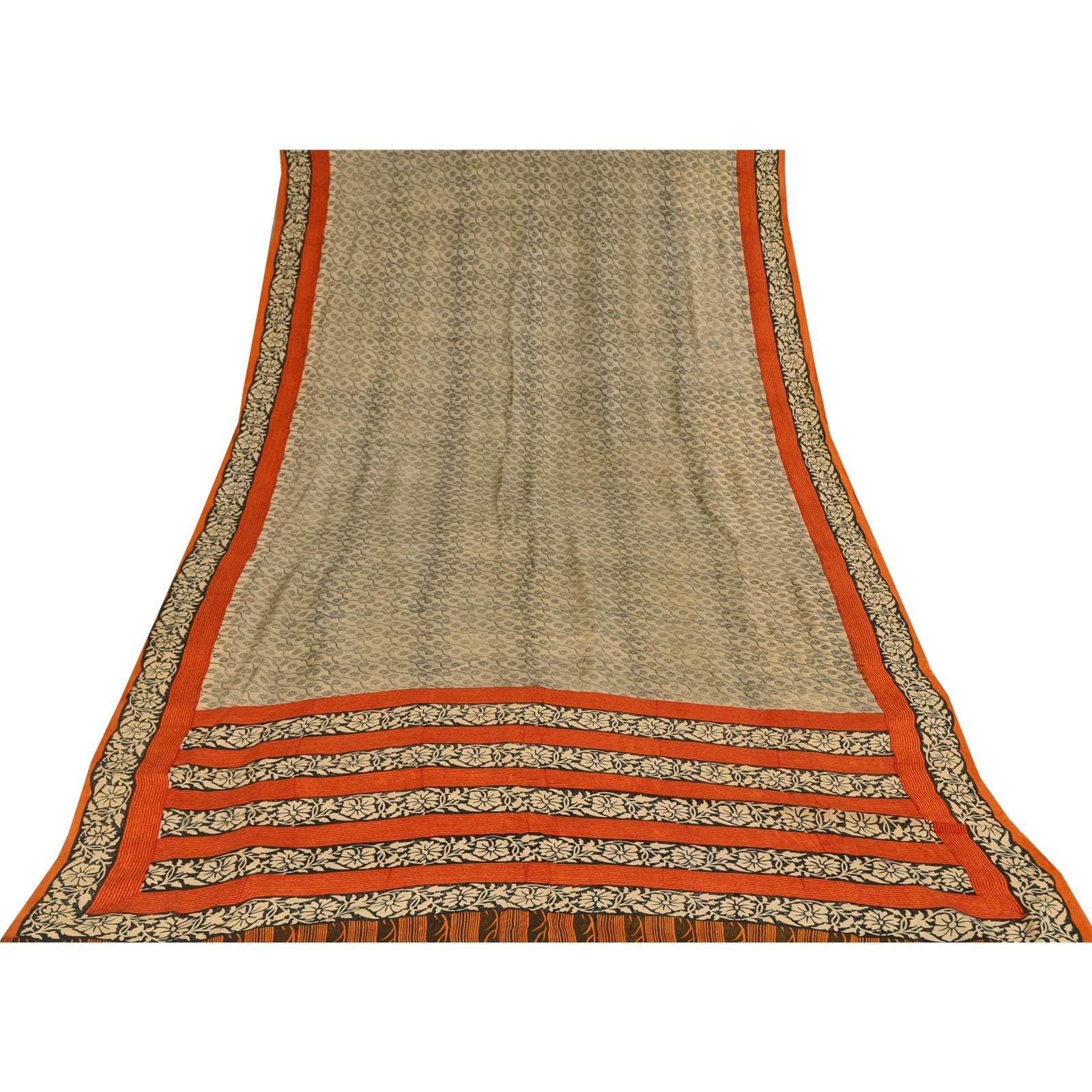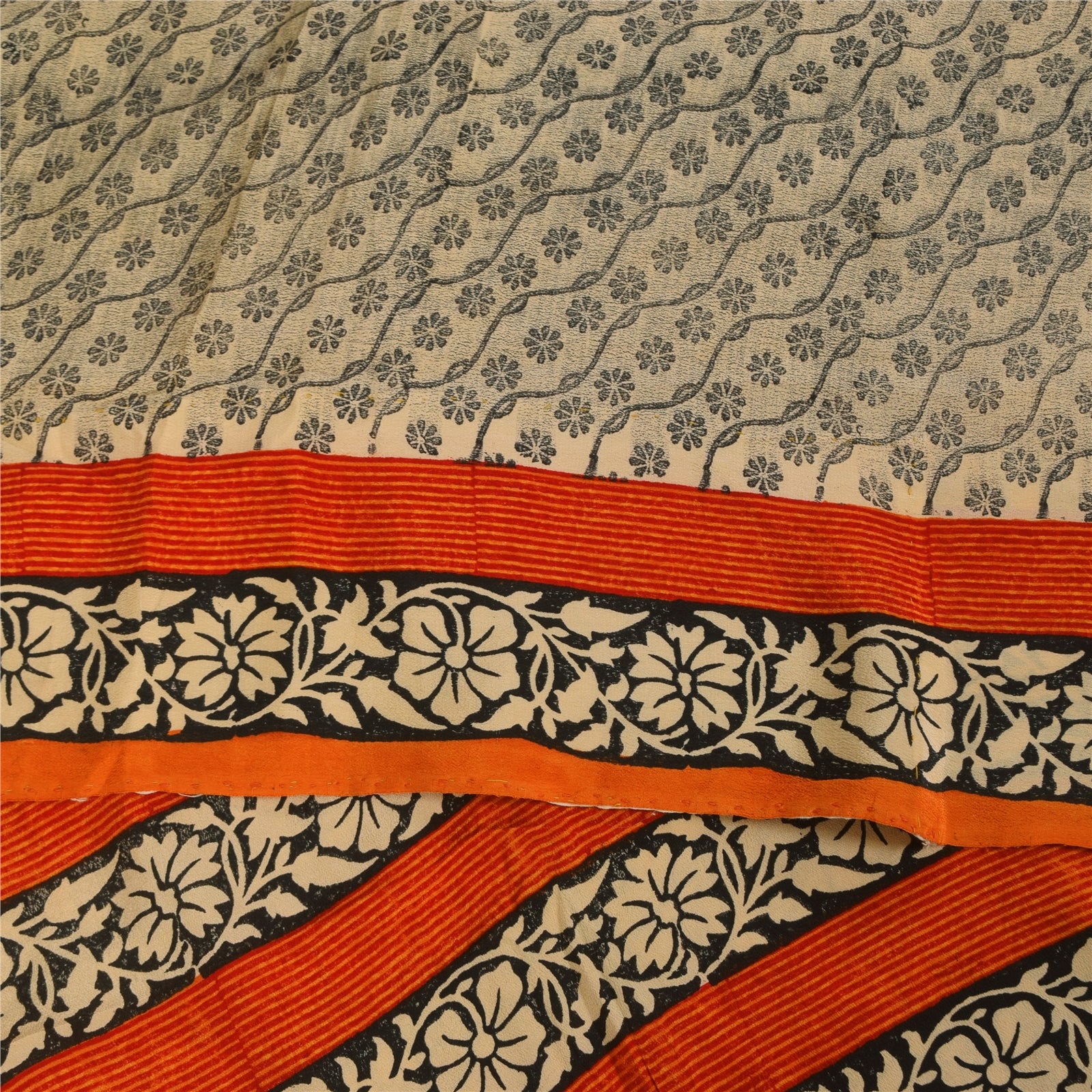 Sanskriti Vintage Sarees Ivory Kalamkari Print Pure Crepe Sari 5+yd Craft Sustainable Fabric