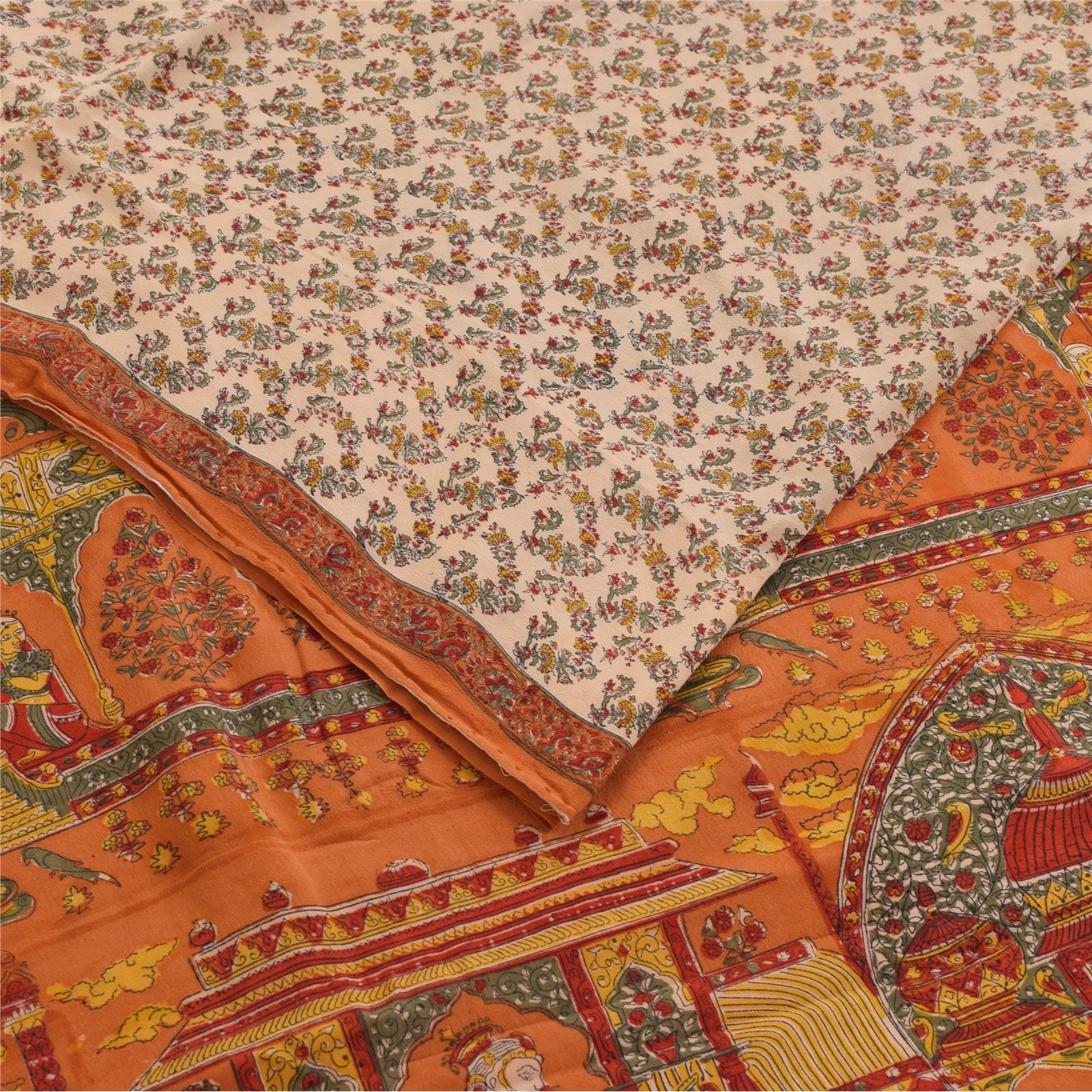 Sanskriti Vintage Sarees Ivory Pure Crepe Human Printed Sari 5+yd Craft Fabric