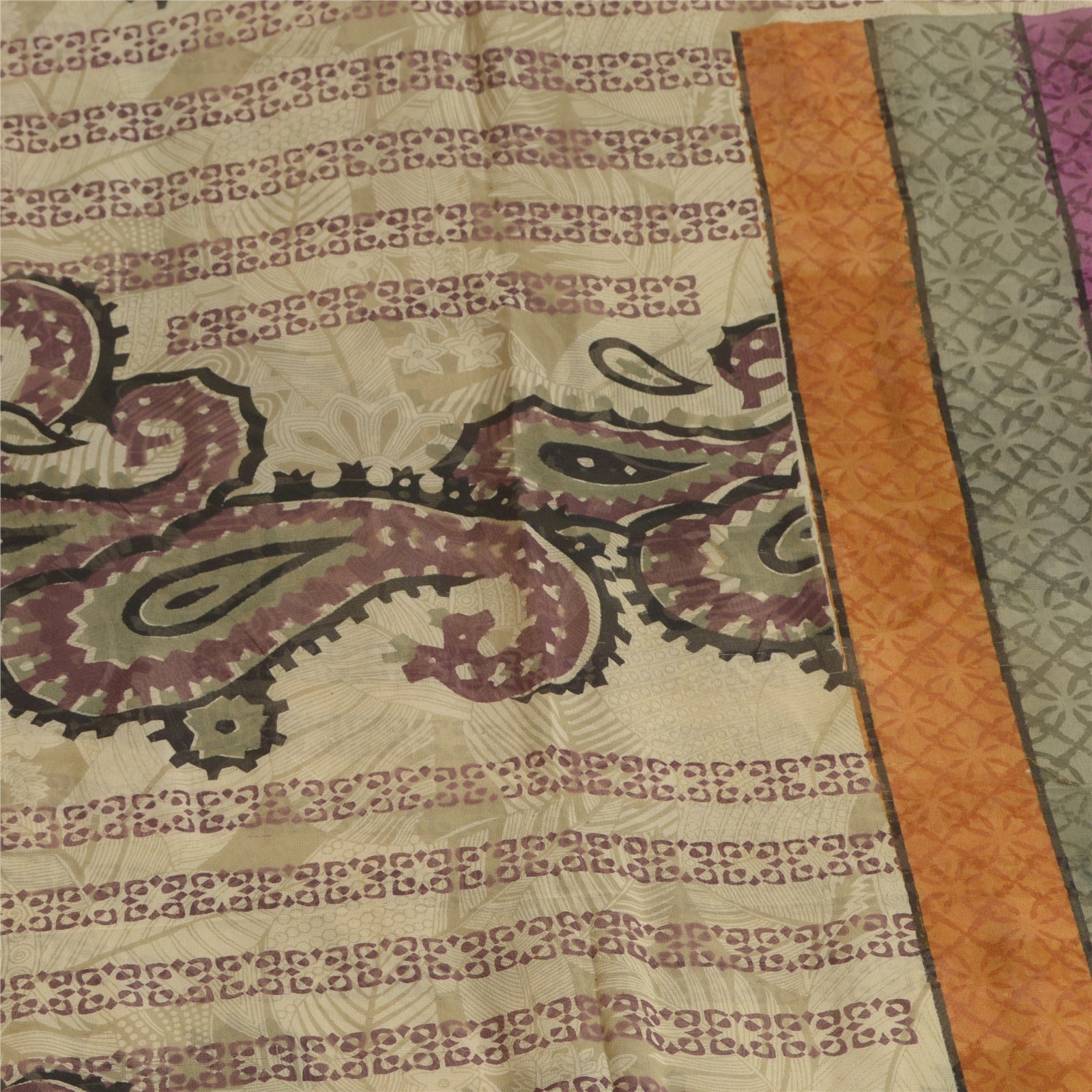 Sanskriti Vintage Sarees Ivory Pure Georgette Silk Printed Sari 5yd Craft Sustainable Fabric