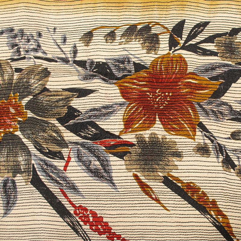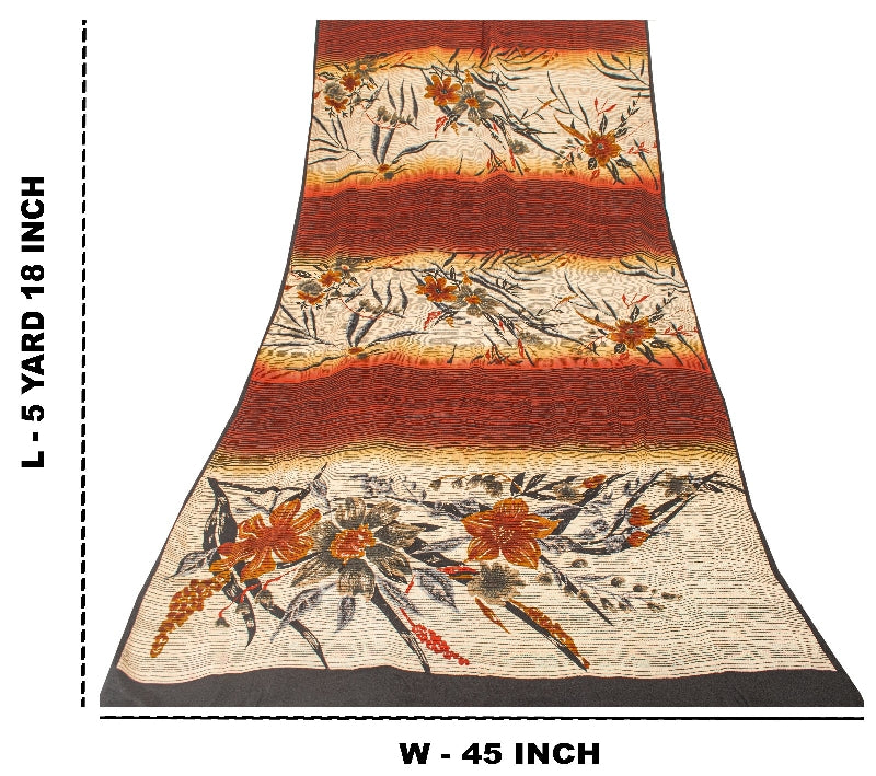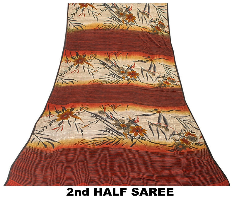 Sanskriti Vintage Sarees Ivory & Red Pure Crepe Floral Print 5+YD Indian Sari