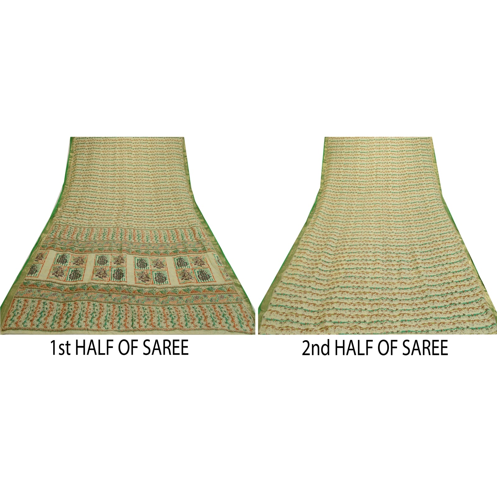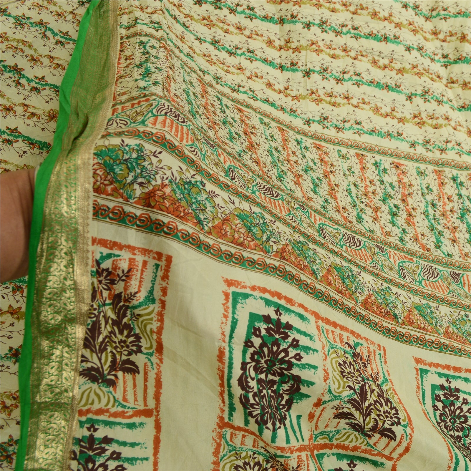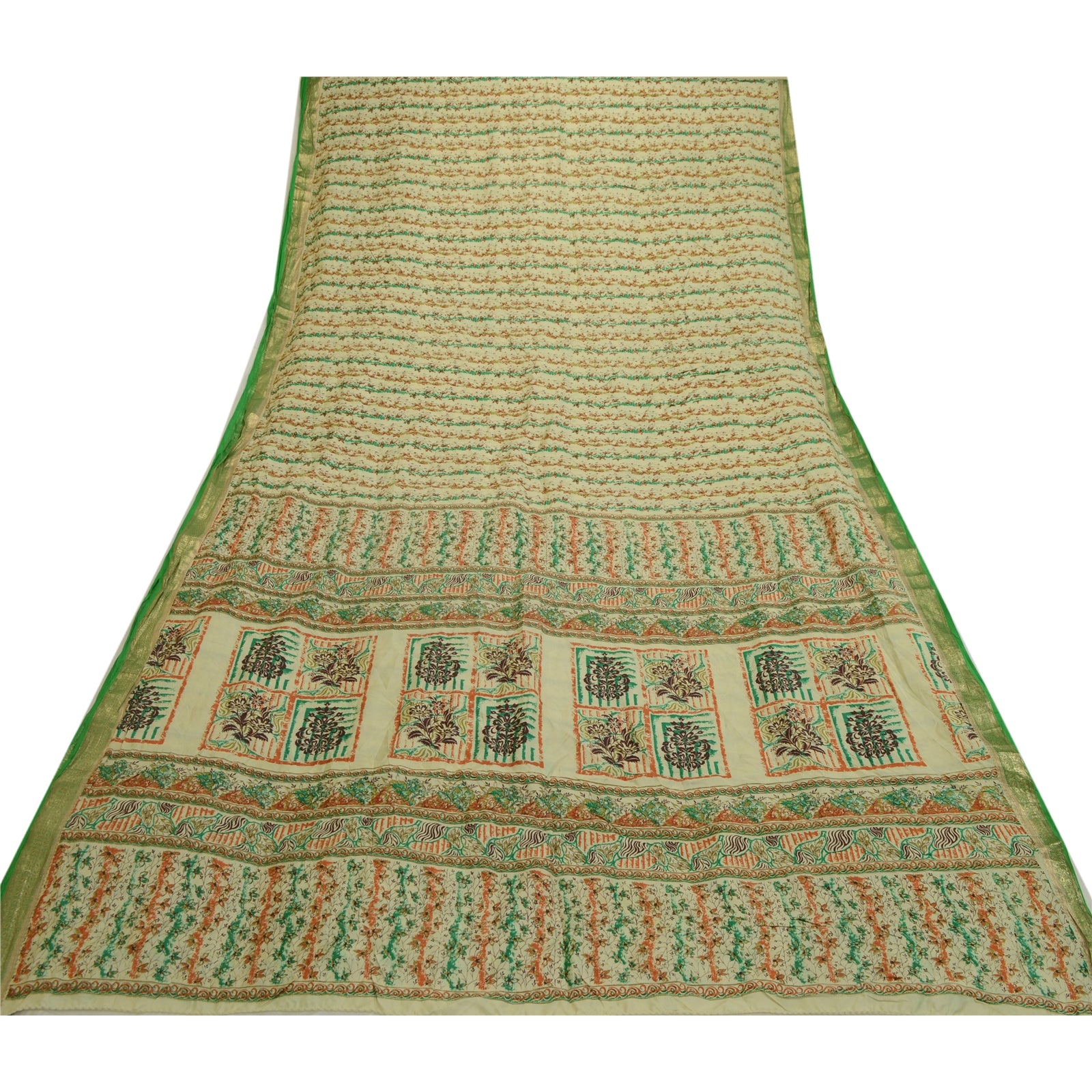 Sanskriti Vintage Sarees Ivory Zari Border Pure Silk Printed Sari Craft Sustainable Fabric