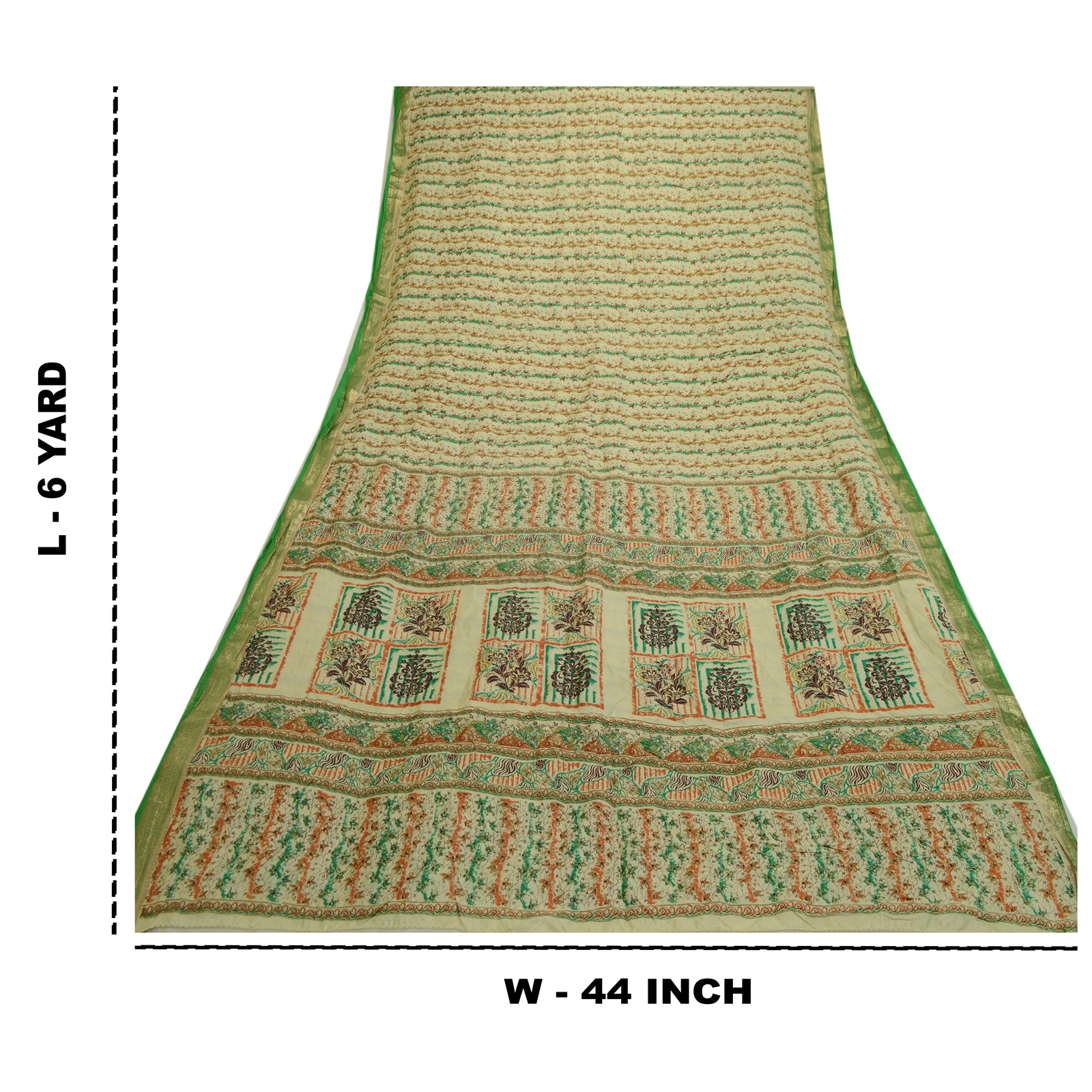 THE ITEM COLOR OR SHADE MAY BE DARKER OR LIGHTER THAN THE PICTURE.' Beautiful ivory colored pure silk printed saree. Pallu & border has printed floral design & golden zari woven work. Similar design in center part of saree. What is special about this saree? Fabulous design is really enhancing the beauty of the saree.This unique vintage saree can be used for various crafting ideas even if you don't want to use it as a sari. Design a dress, use it as window, dressing, upholstery, sarongs, throw, dress making and table linen much more. Let your creative juices flow and use this decorated Sustainable Fabric in multiple fashion. International buyers please note: Import duties, taxes, and charges are not included in the item price or postage cost. These charges are the buyer's responsibility. Please check with your country's customs office to determine what these additional costs will be prior to bidding or buying. Buyer will pay custom duty/tax. It is calculated and charged differently by every country. As a seller I do not have any control over it. VAT or sales tax is calculated by the platform at the time of checkout. Customs charge is payable at the time of delivery.'