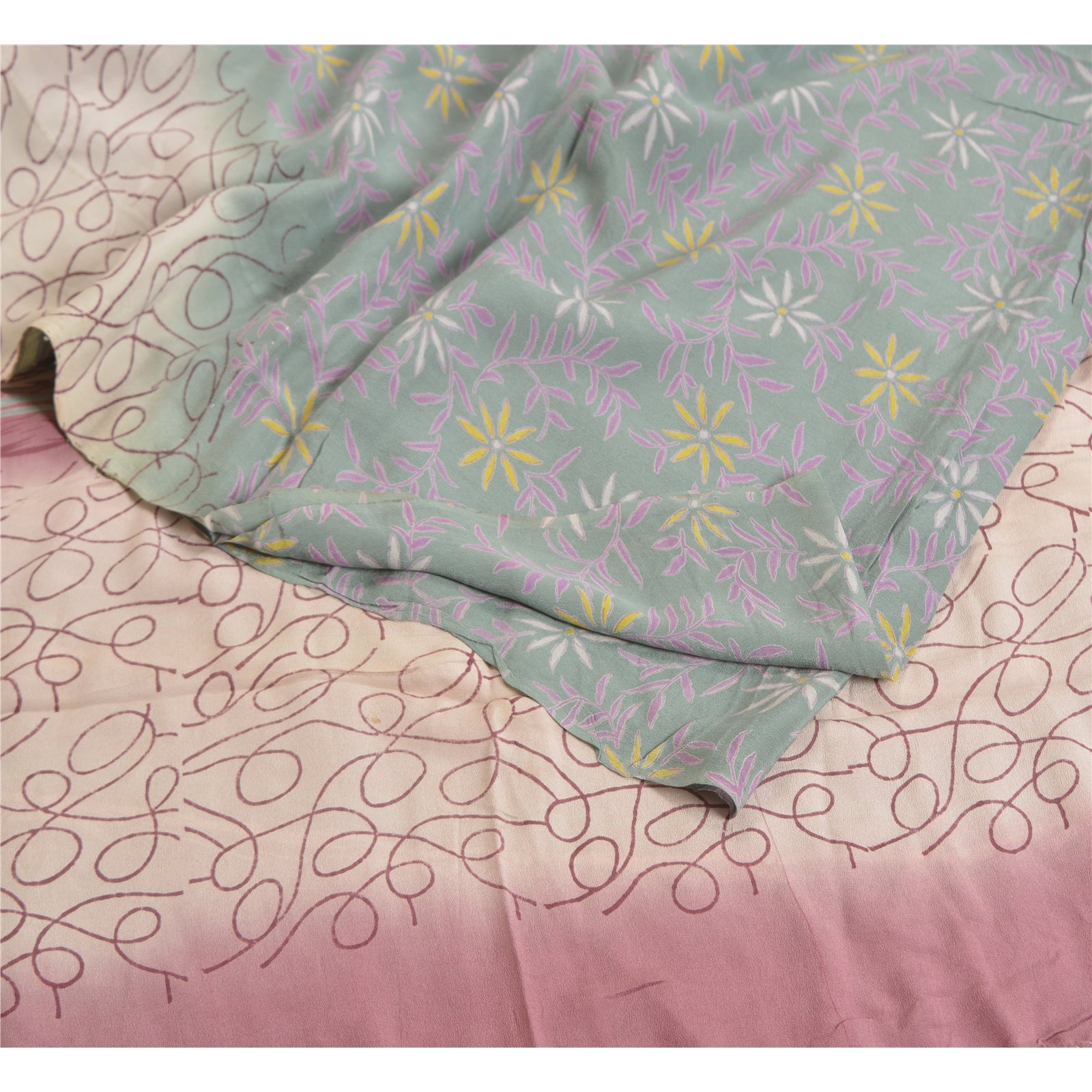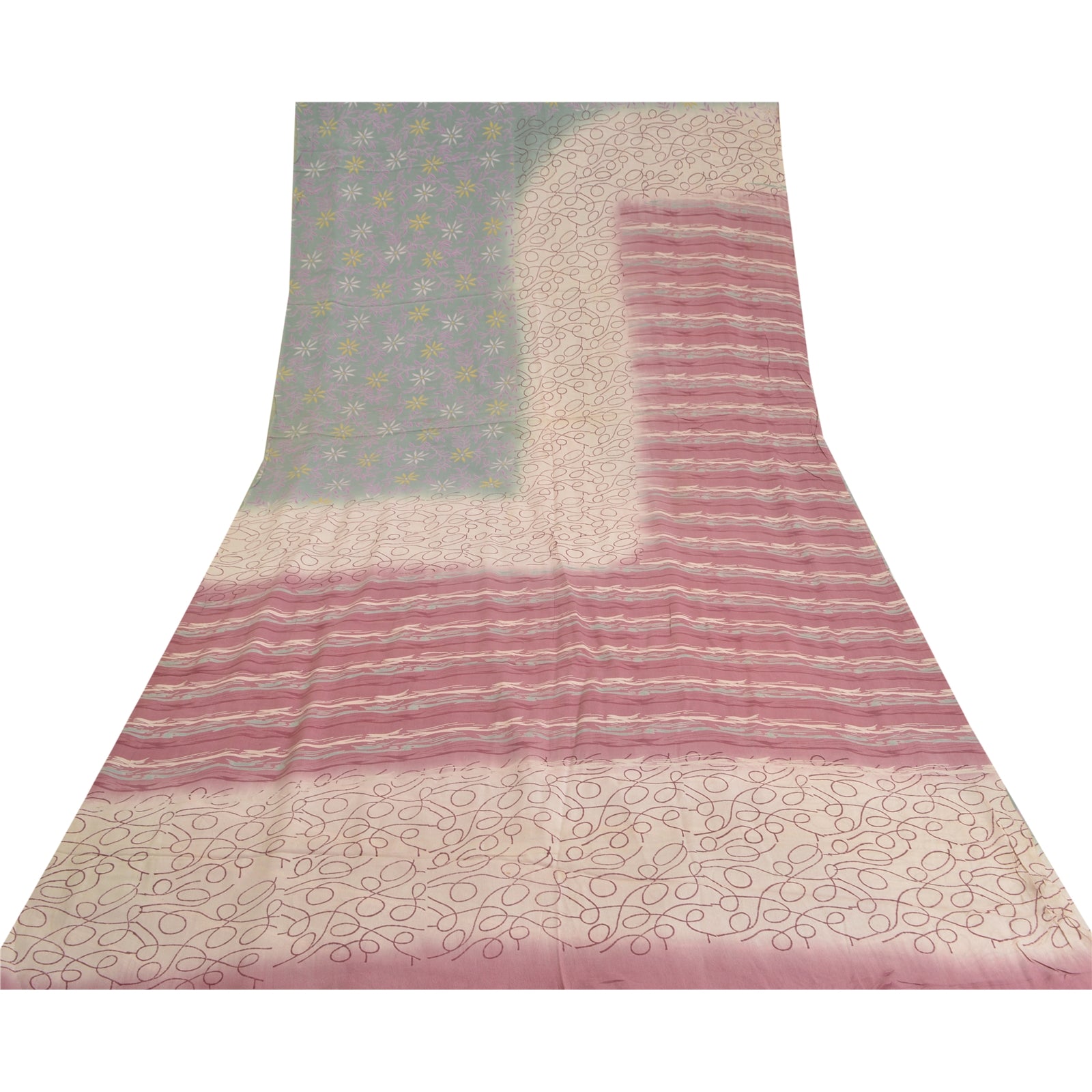 Sanskriti Vintage Sarees Multi 100% Pure Crepe Silk Printed Sari Craft Sustainable Fabric