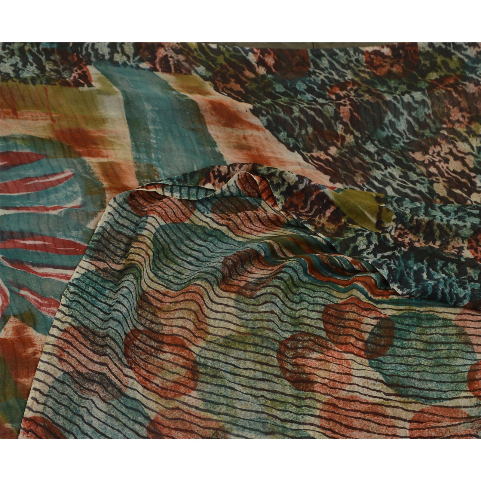 Sanskriti Vintage Sarees Multi 100% Pure Georgette Silk Print Sari Craft Sustainable Fabric