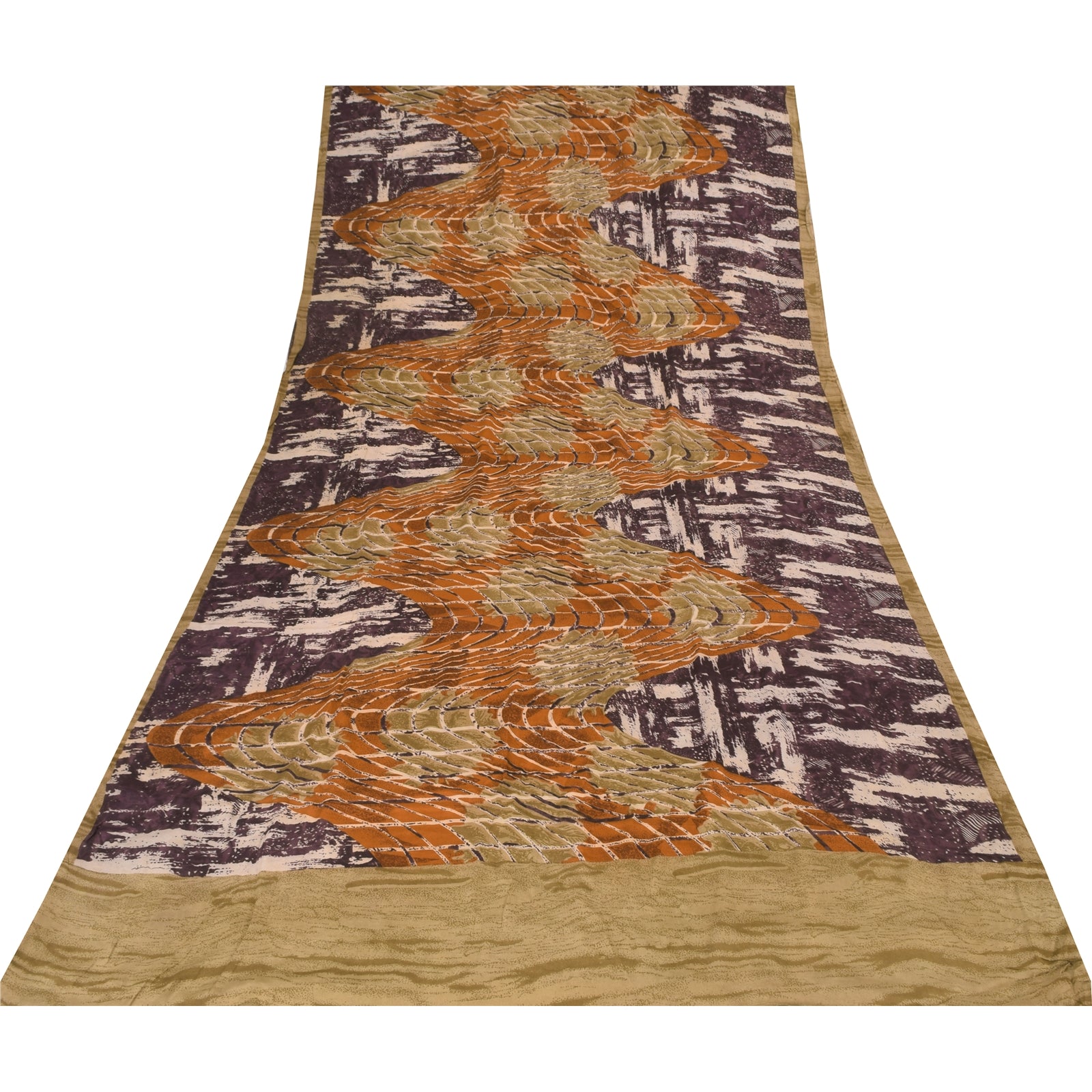 Sanskriti Vintage Sarees Multi Pure Crepe Silk Printed Sari 5+yd Craft Sustainable Fabric