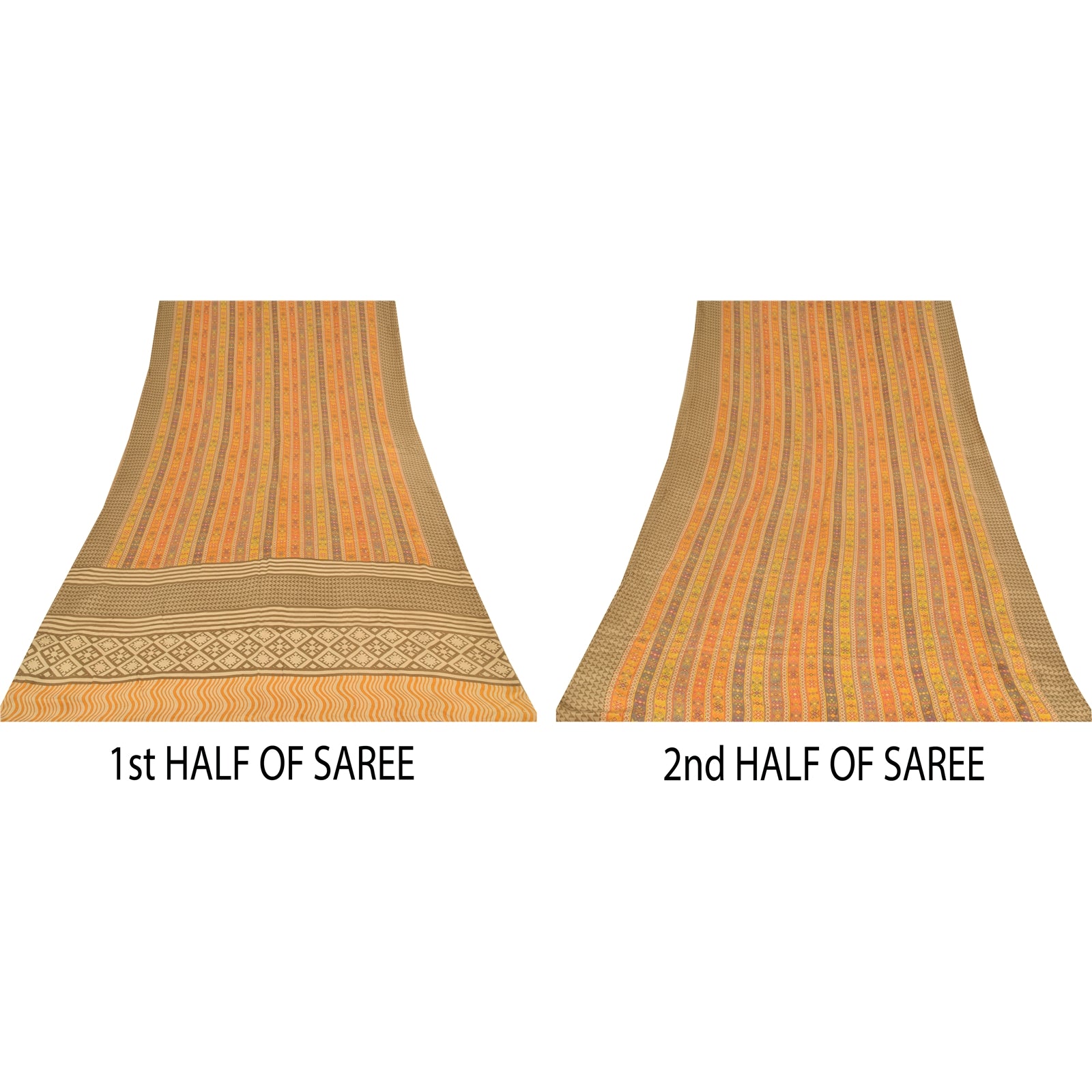 Sanskriti Vintage Sarees Multi Pure Crepe Silk Printed Sari 5+yd Craft Sustainable Fabric